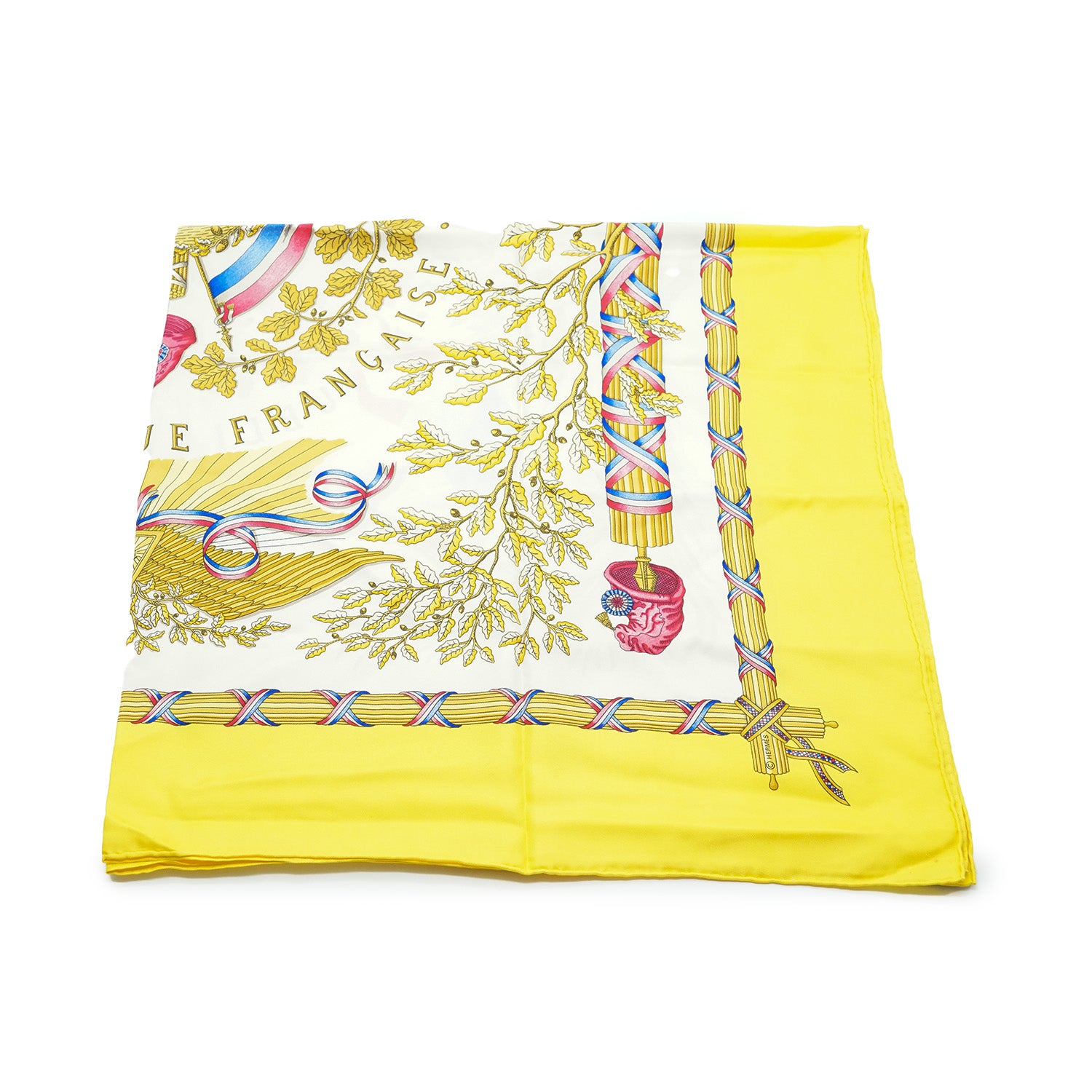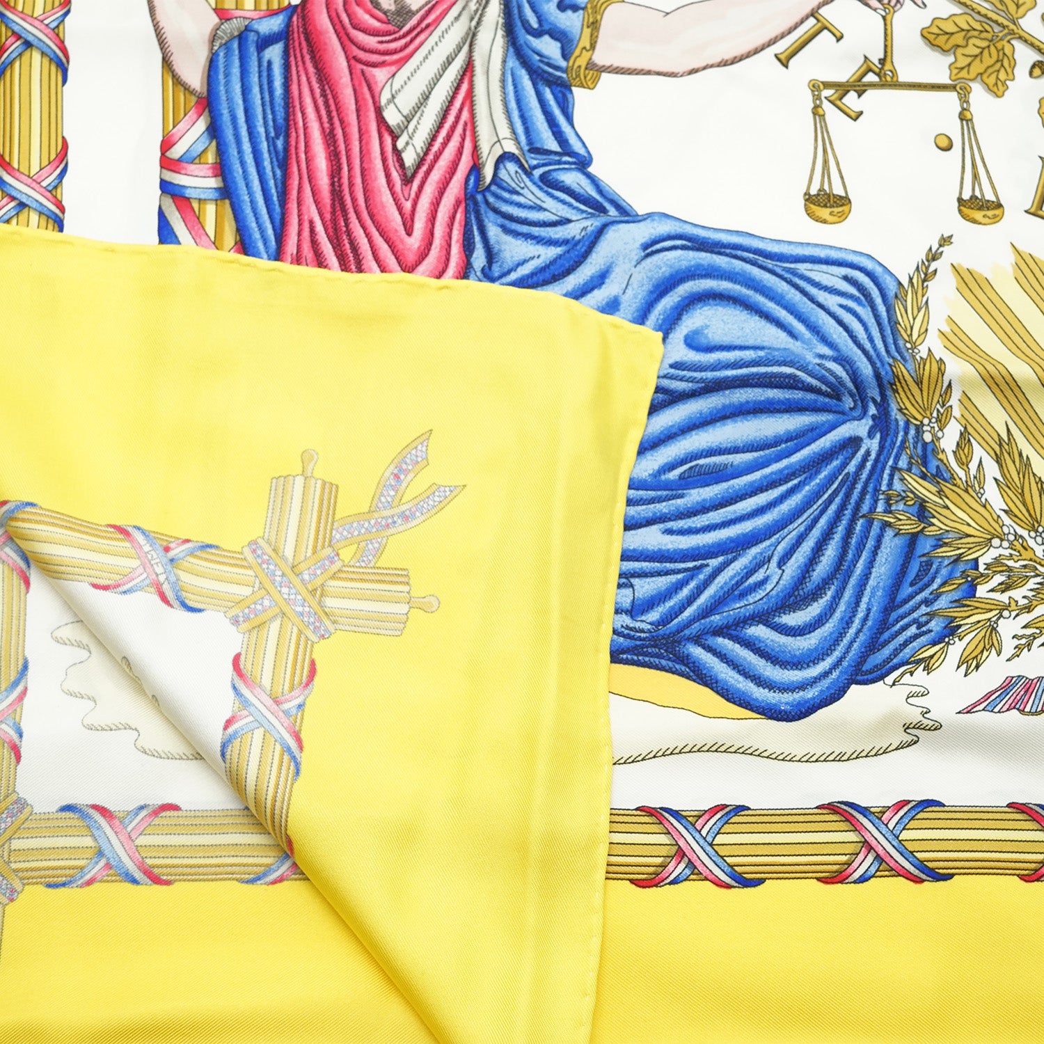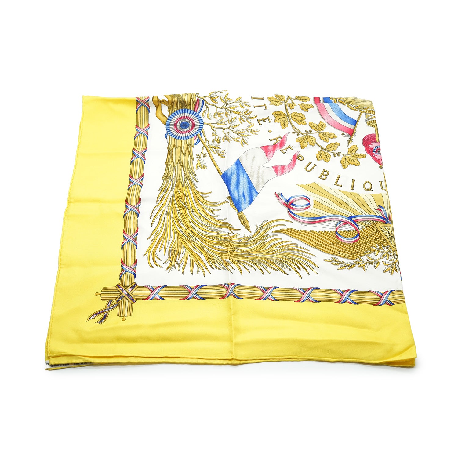 1789 Liberte Egalite Fraternite Republique Francaise Silk Carre 90 Yellow Silk