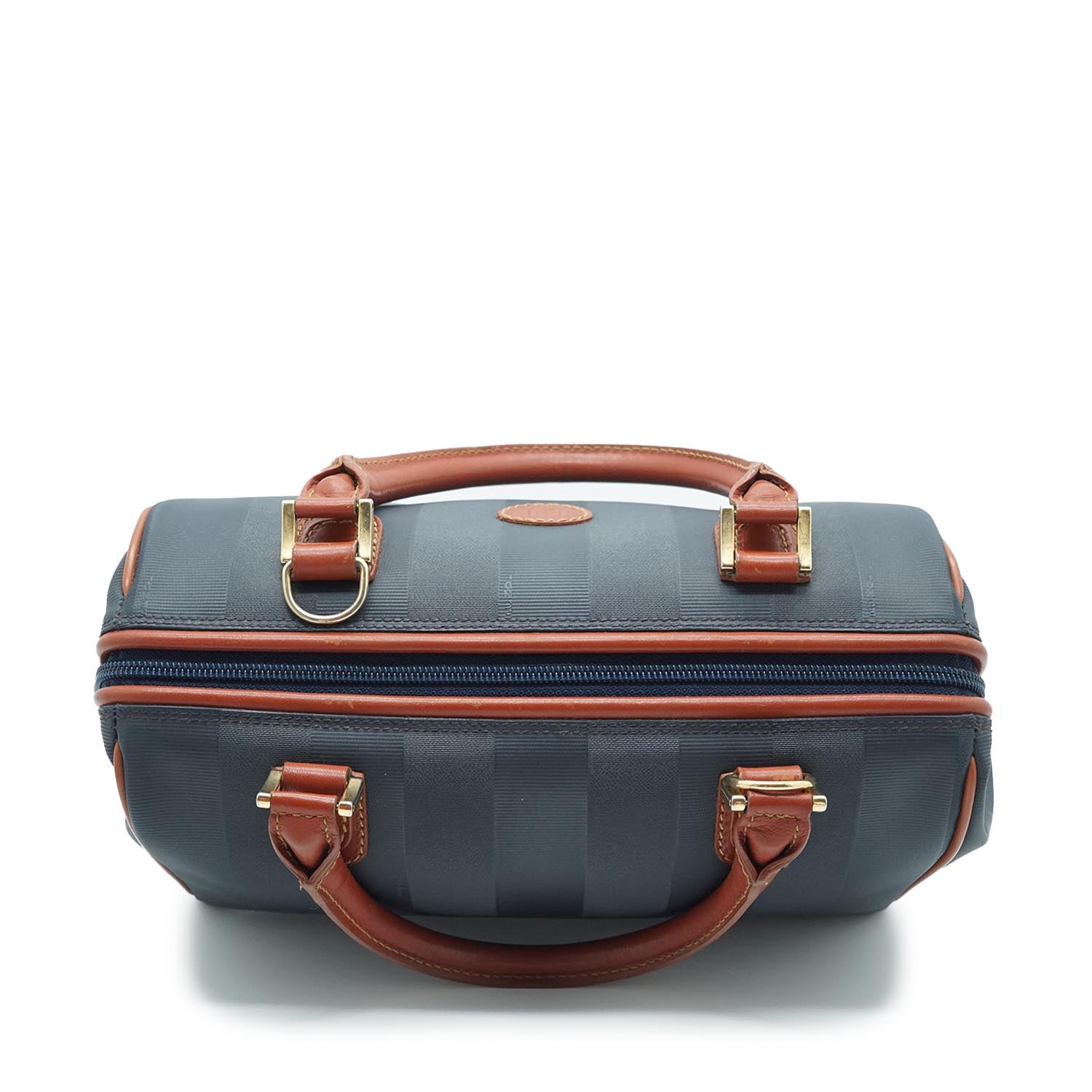 2way Pequin Mini Boston Bag Navy Nylon, Leather