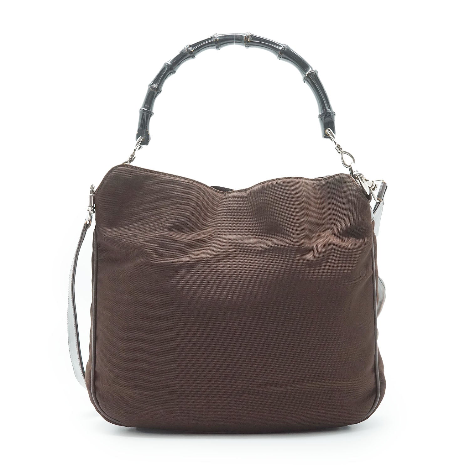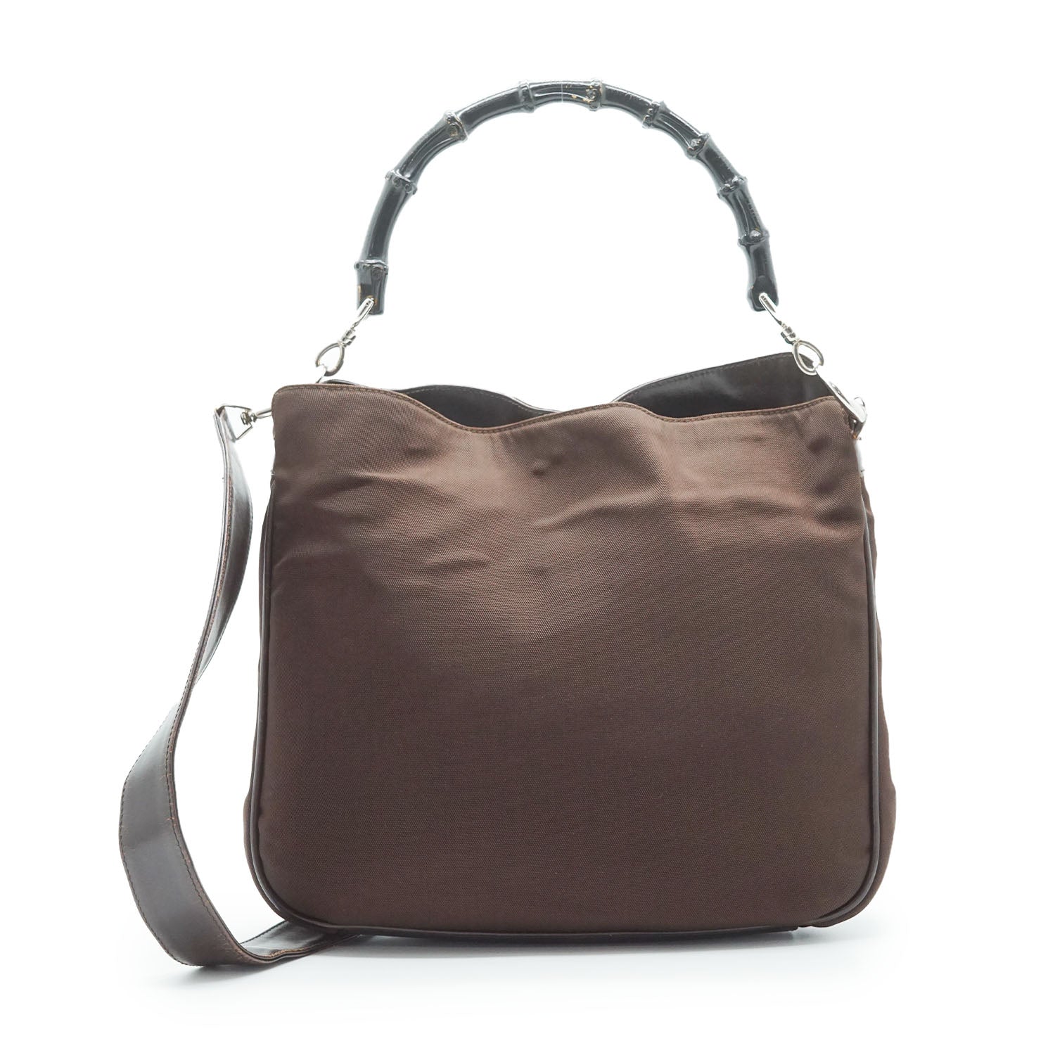 Bamboo 2way Nylon Shoulder Bag Brown Nylon, Leather