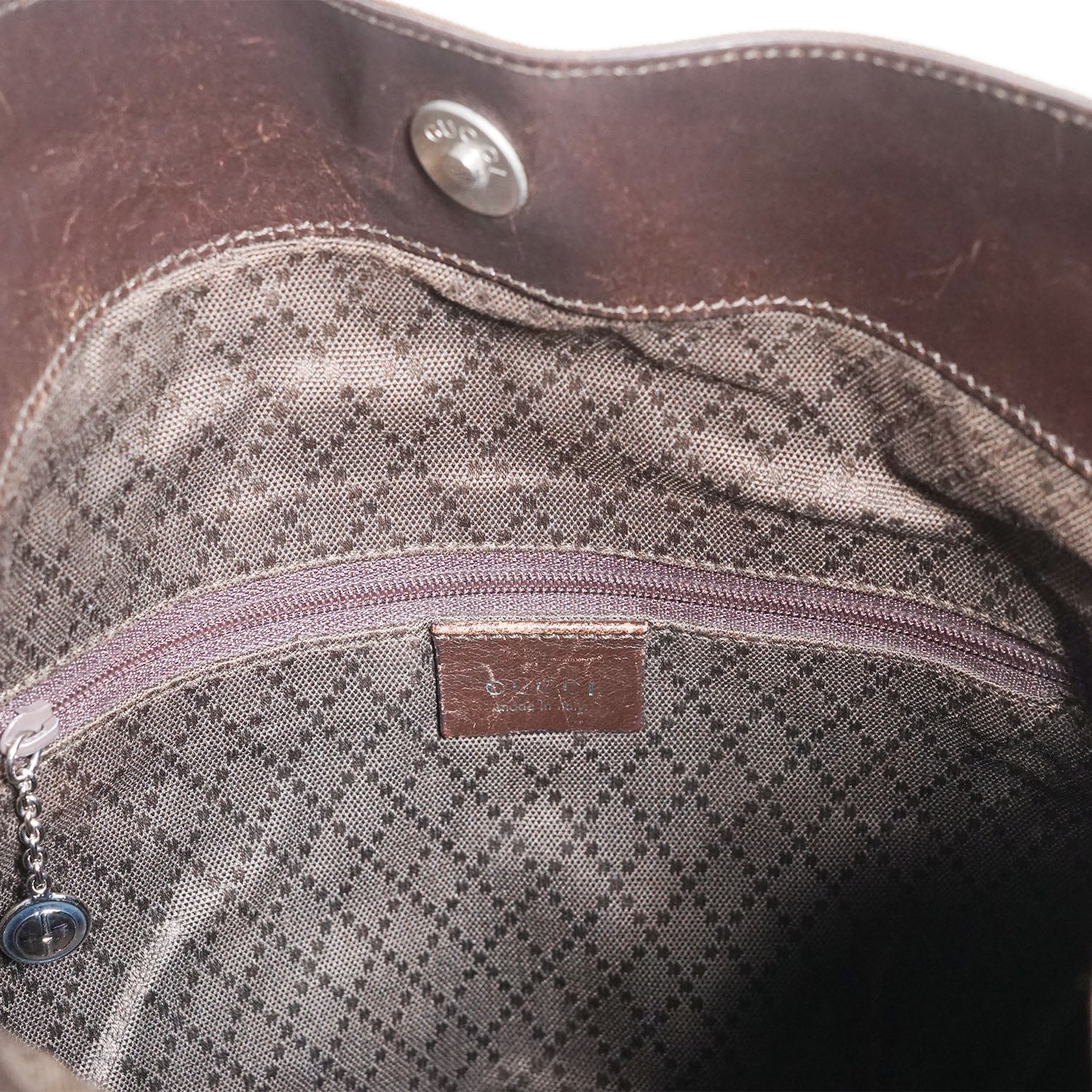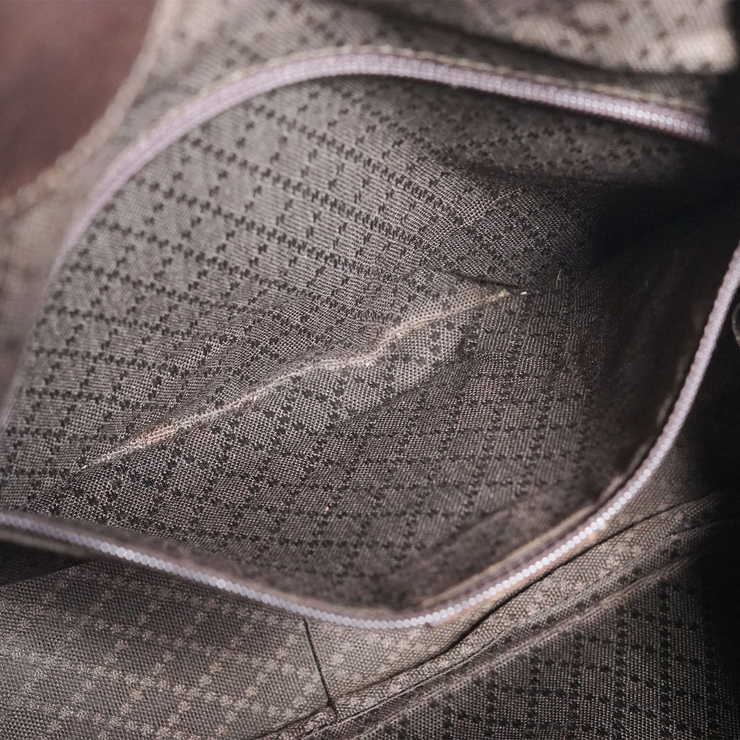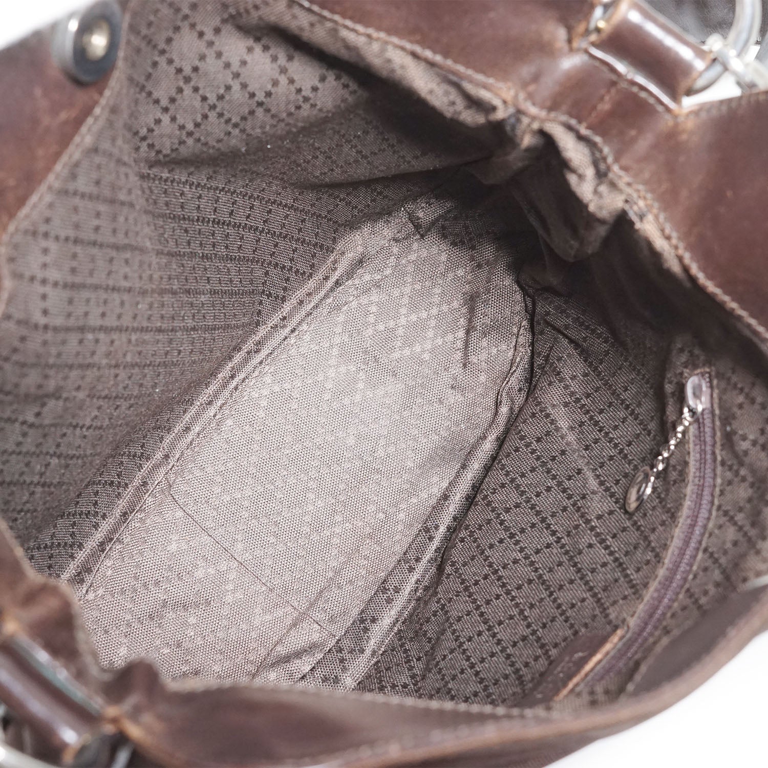 Discoloration: Some discoloration on the leather parts (bottom, shoulder strap), slight hardware tarnish