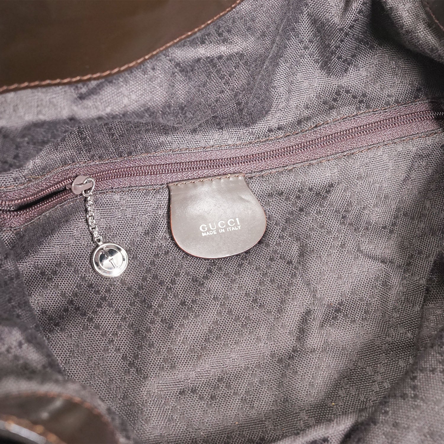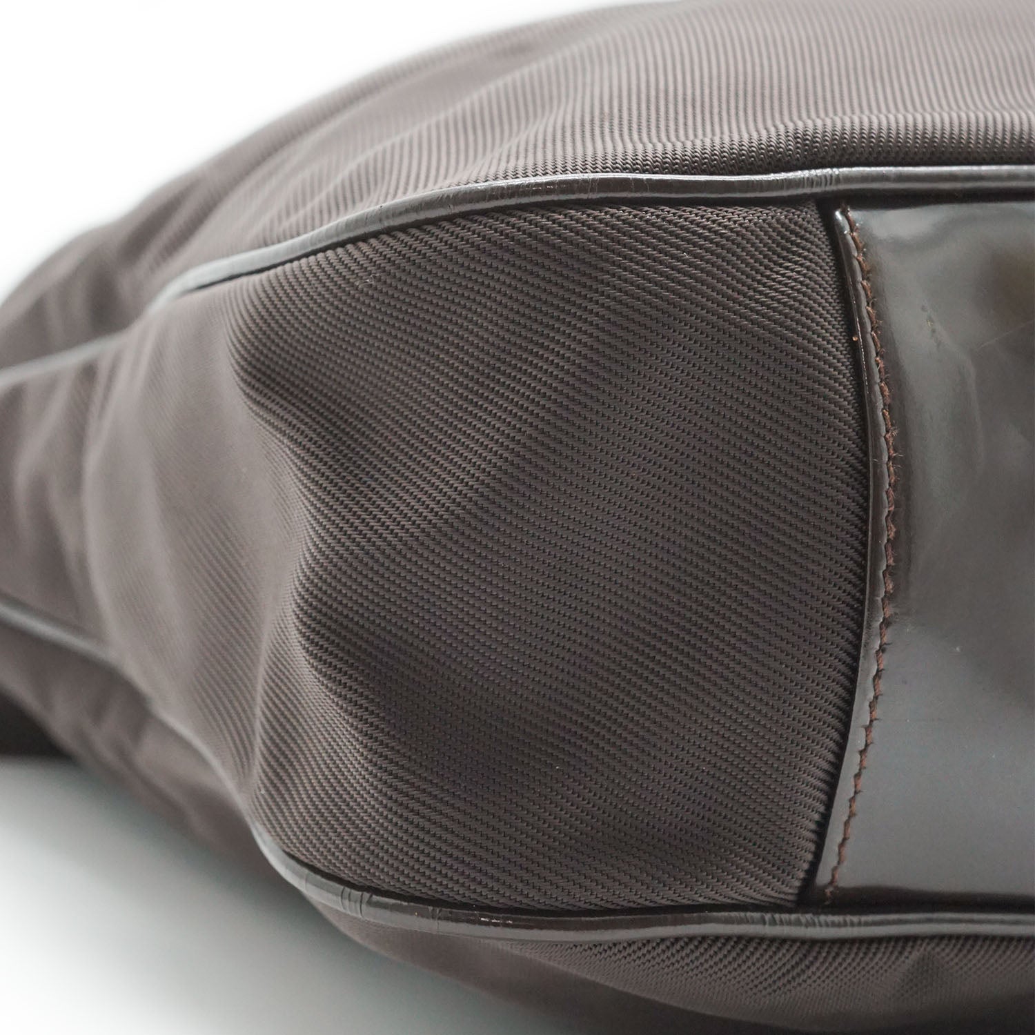 Bamboo Nylon 2way Shoulder Bag Brown Nylon, Patent leather