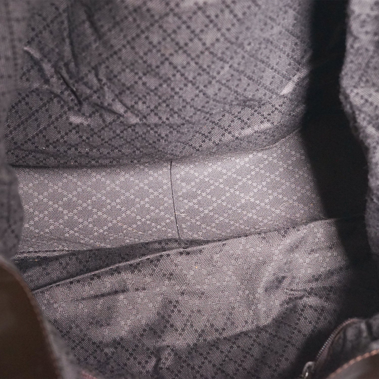Peeling: Some leather cracking on the shoulder strap, some creasing throughout the inside fabric, small leather crack on one side