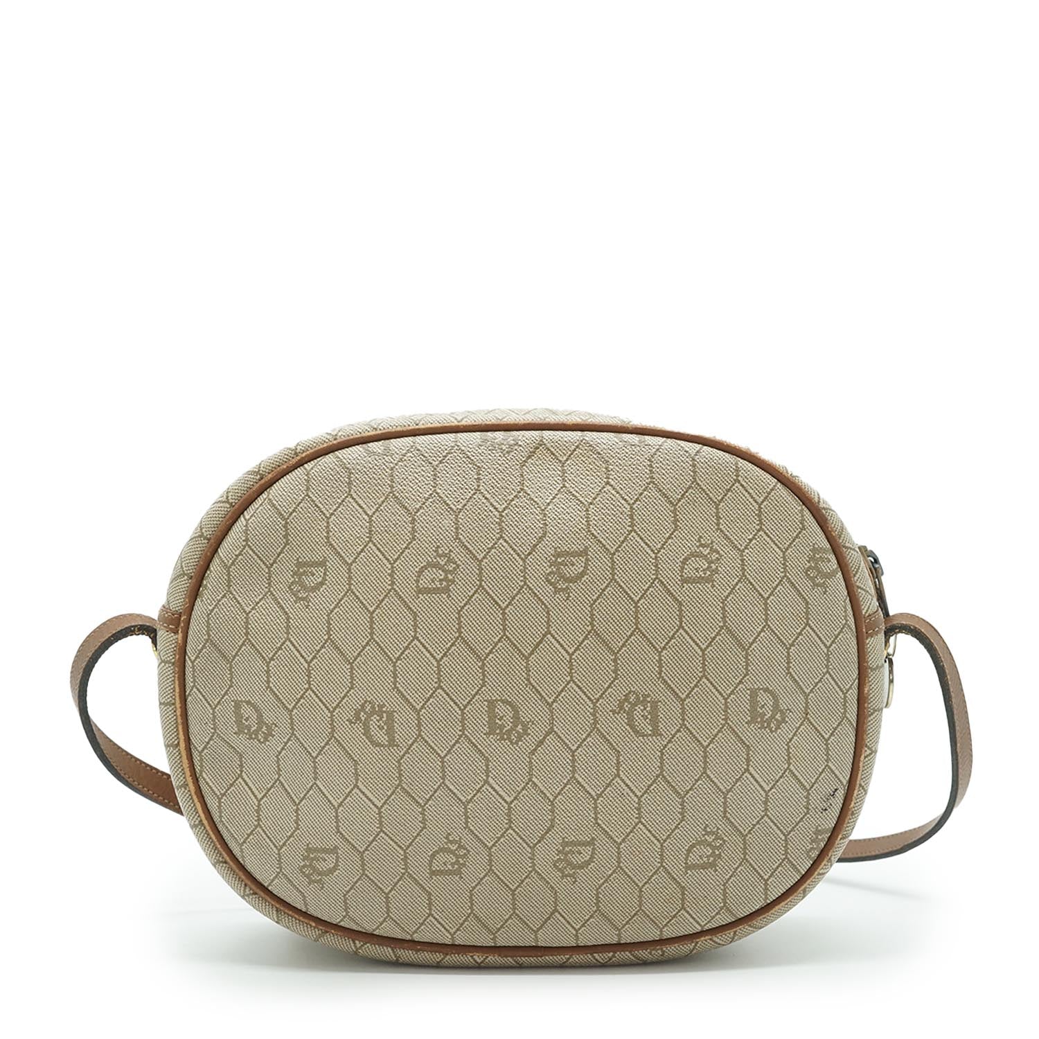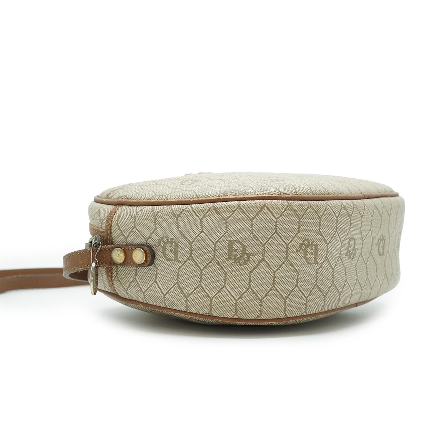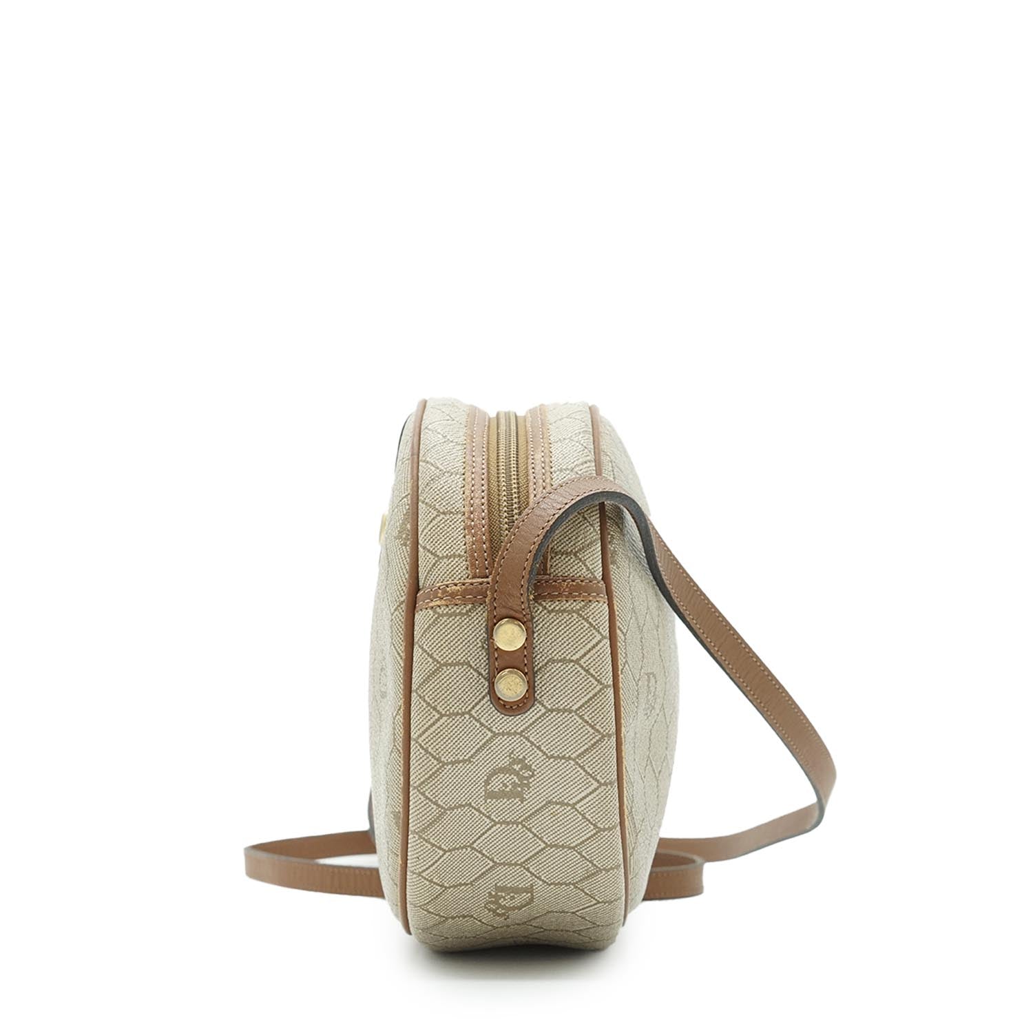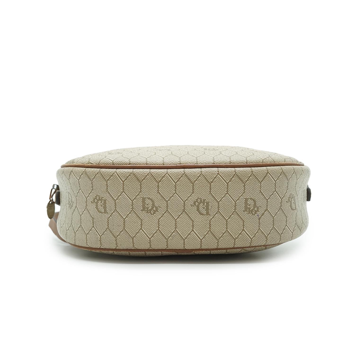 Beige Honeycomb Crossbody Bag Beige Canvas, Leather