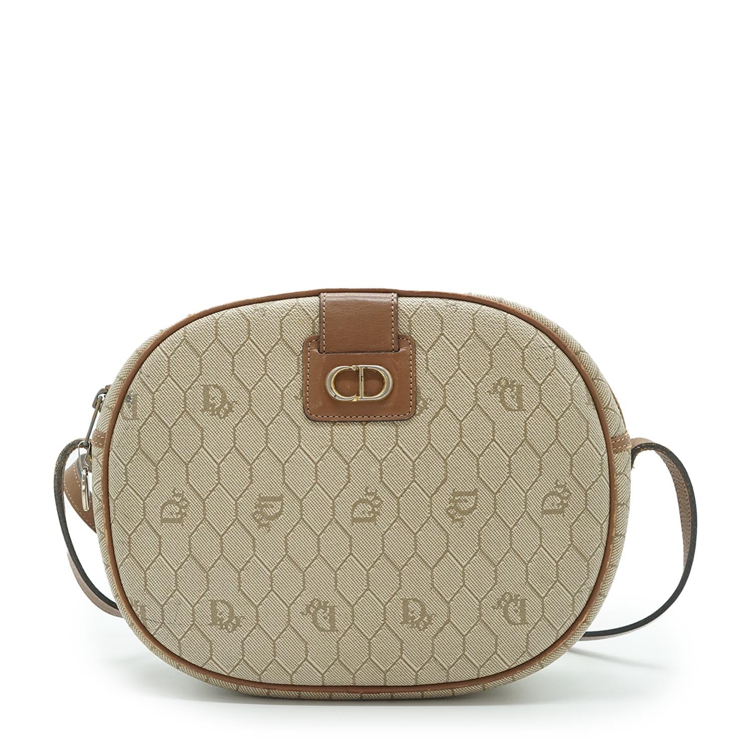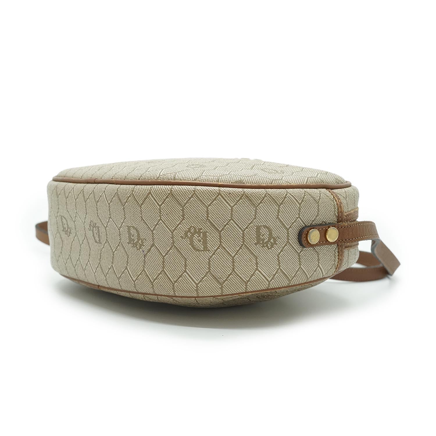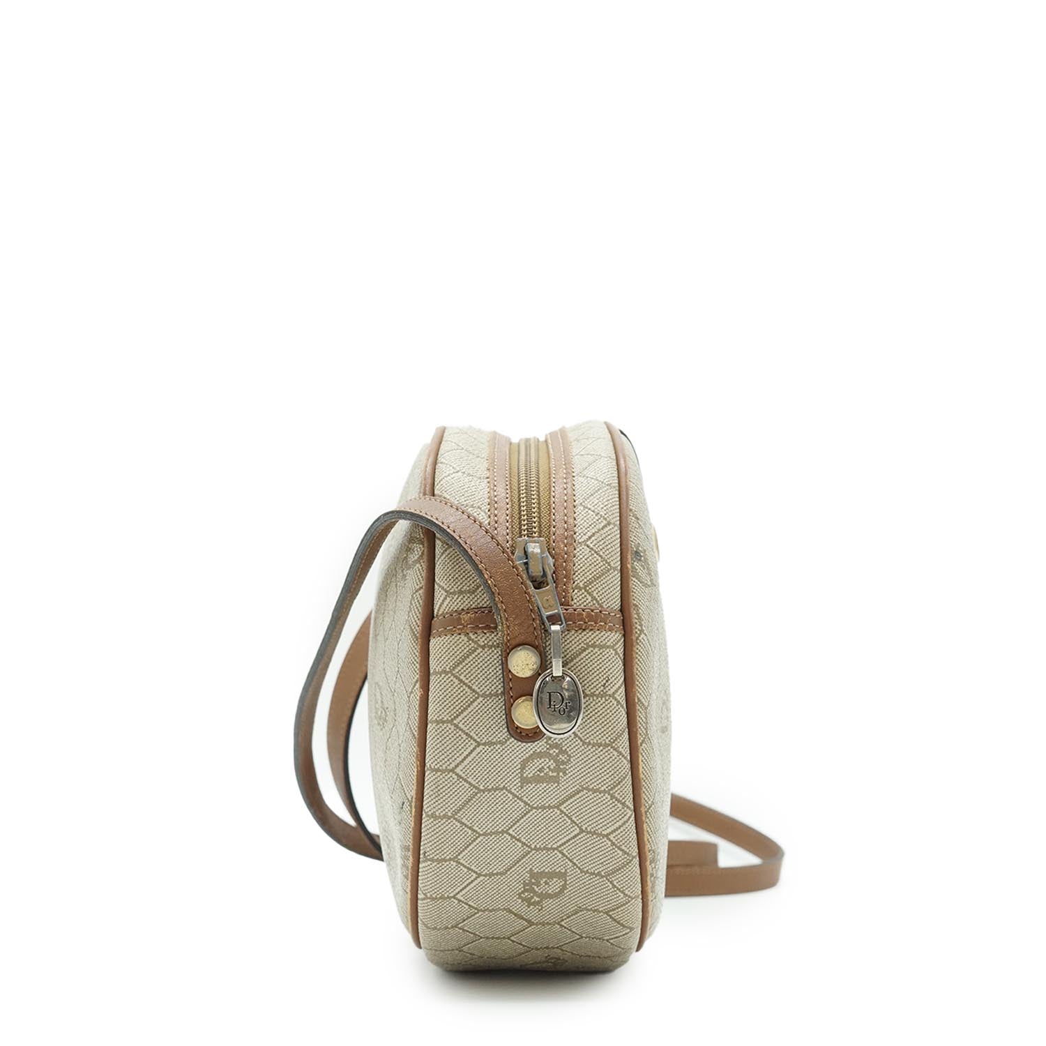 Beige Honeycomb Crossbody Bag Beige Canvas, Leather