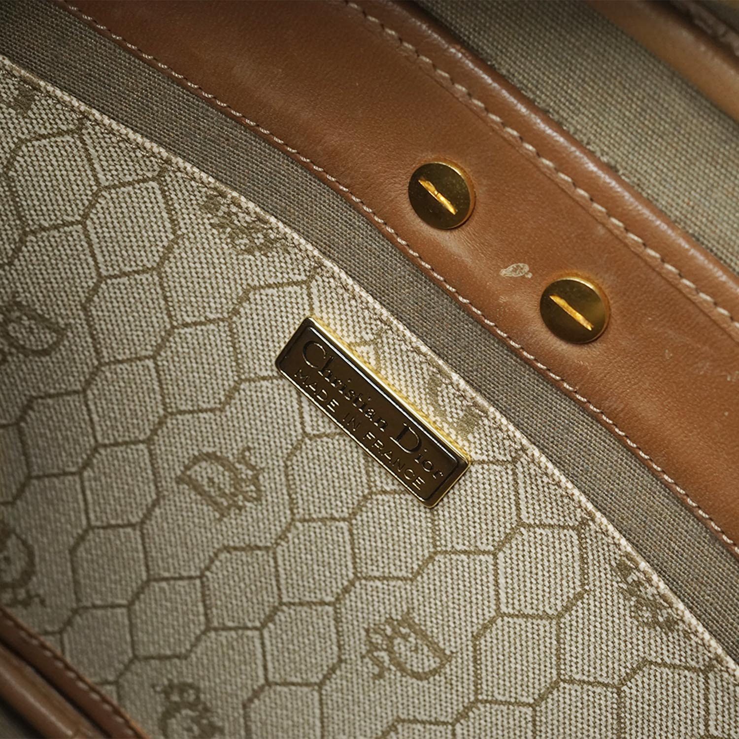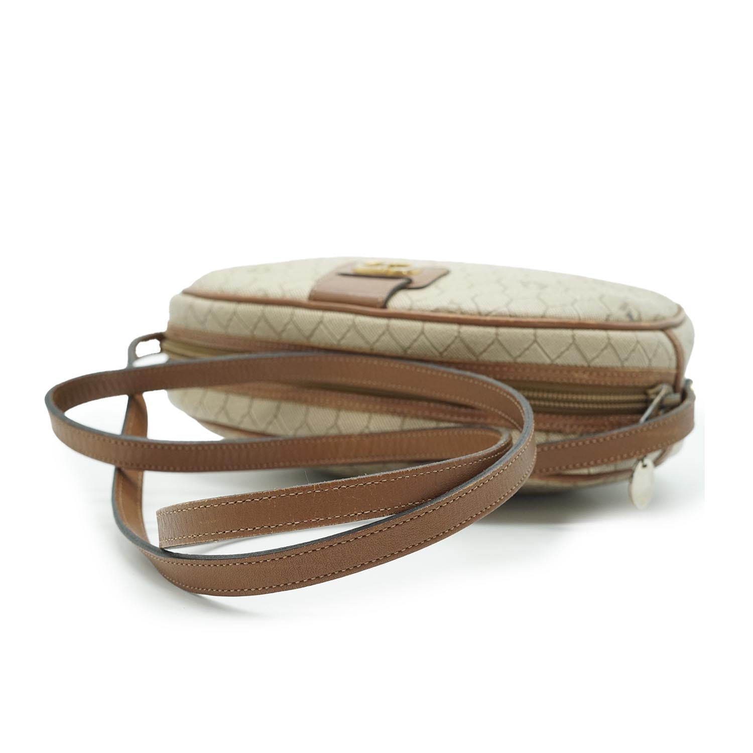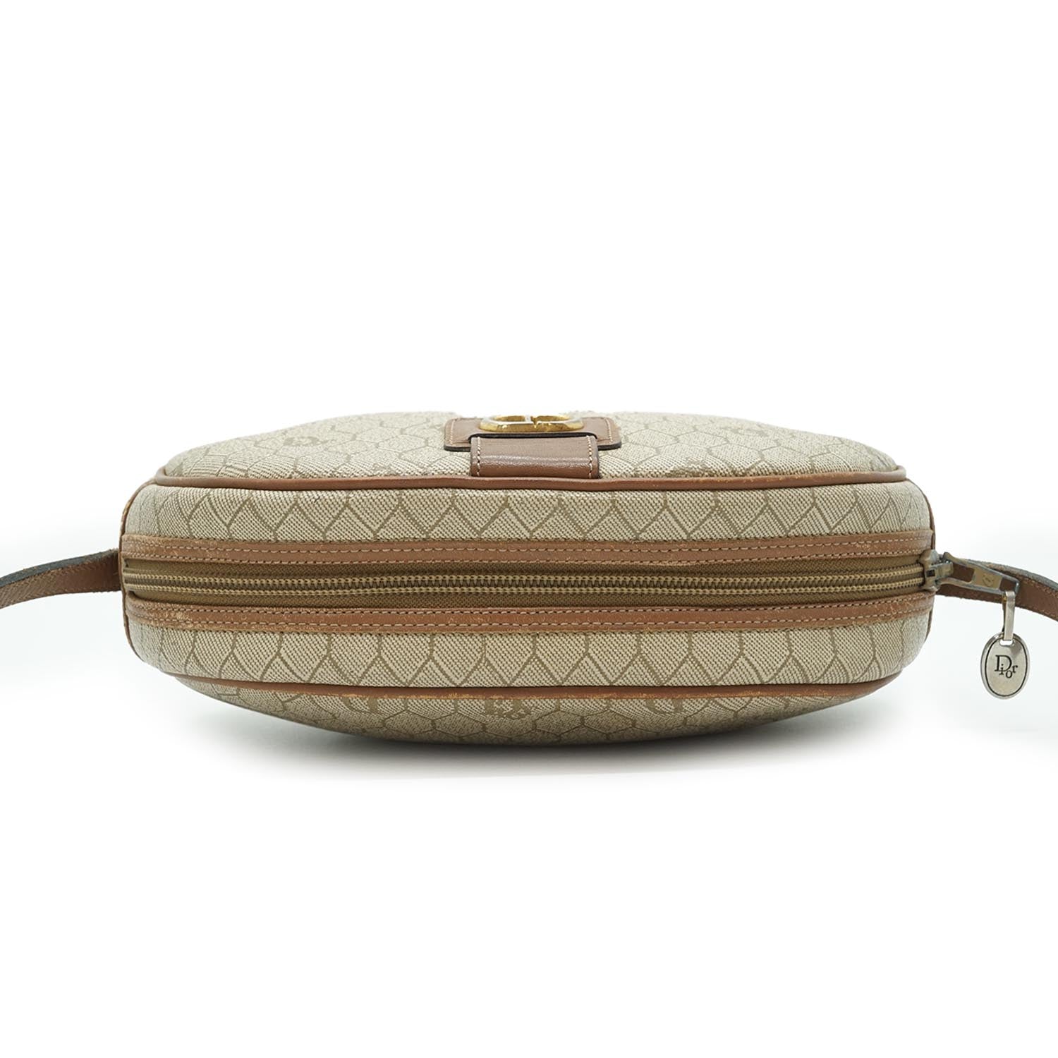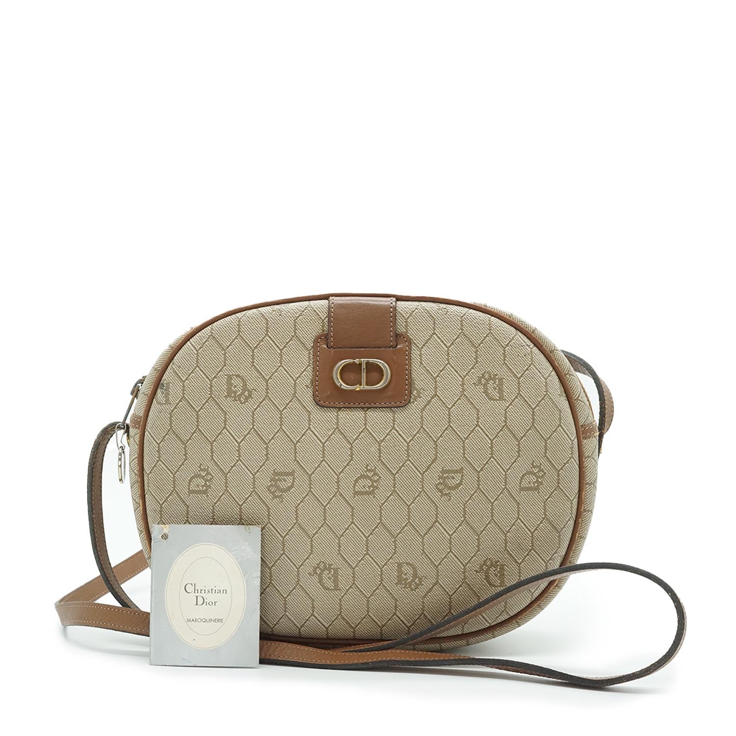 Beige Honeycomb Crossbody Bag Beige Canvas, Leather
