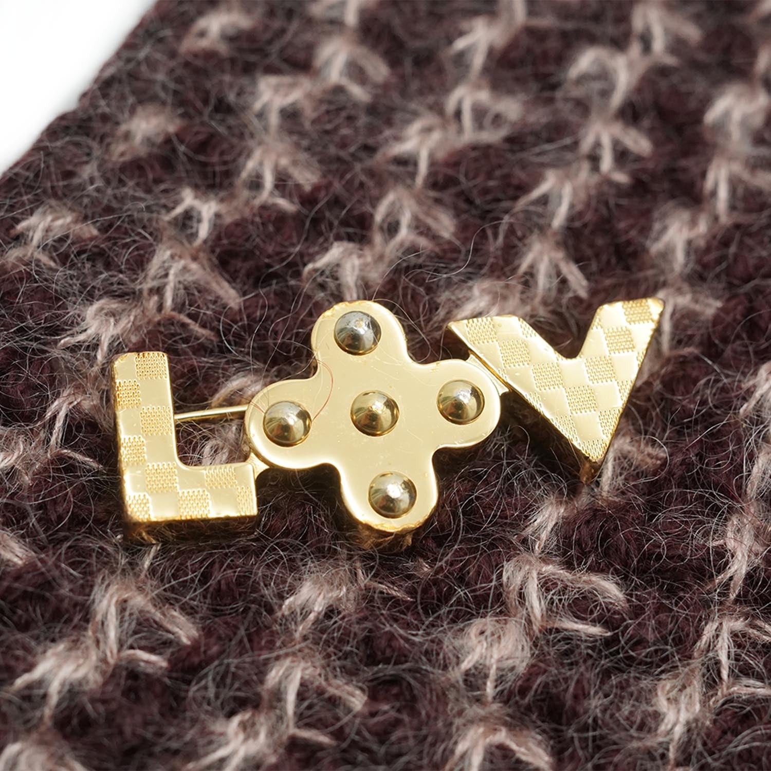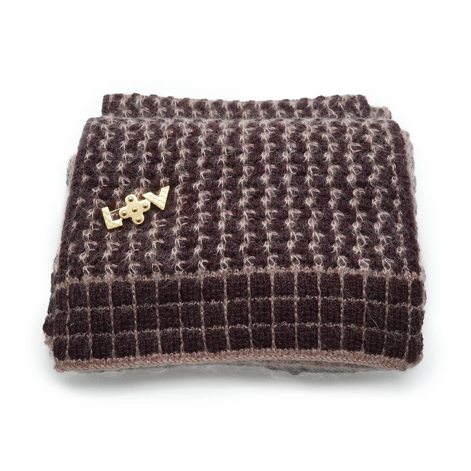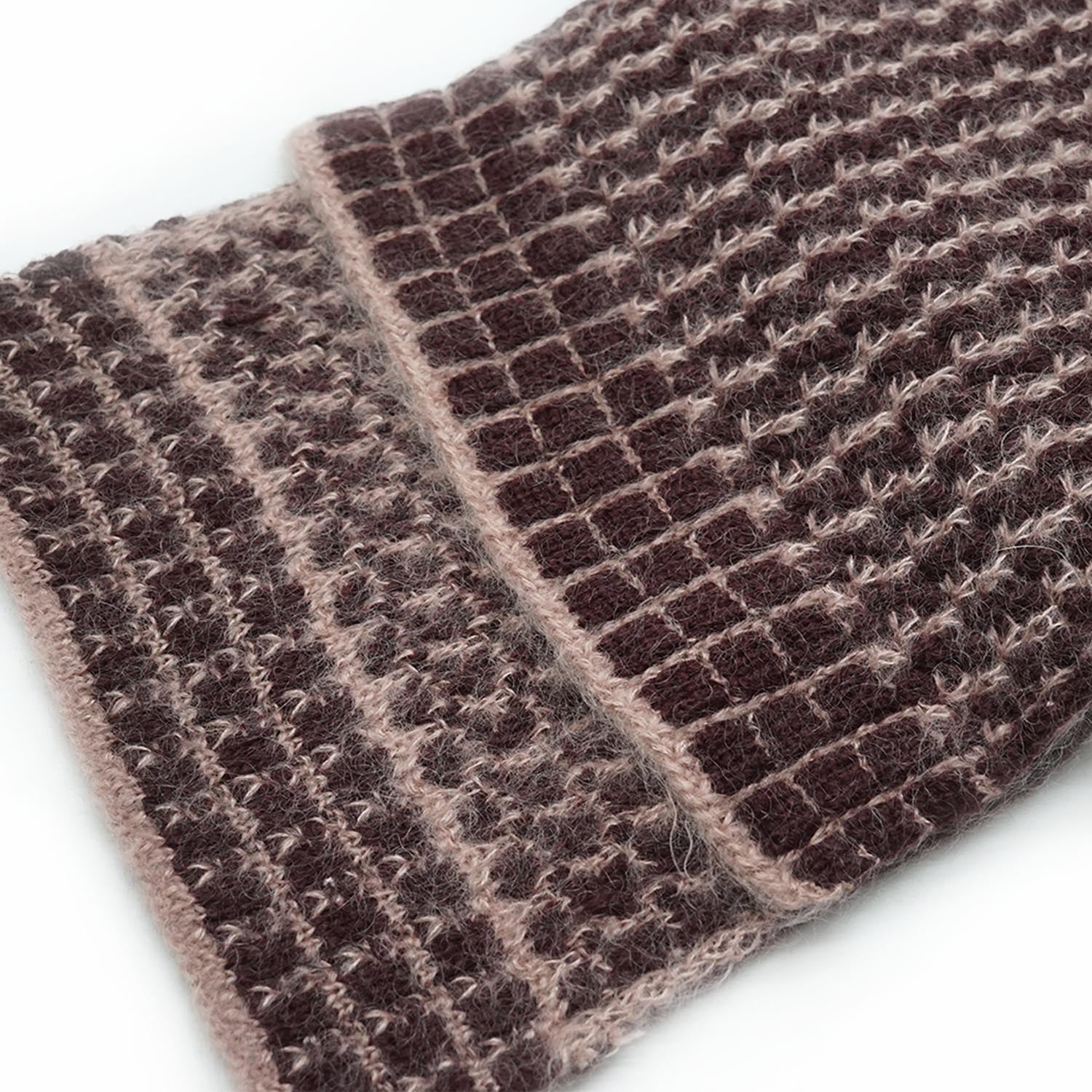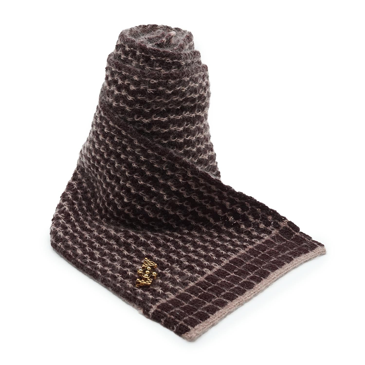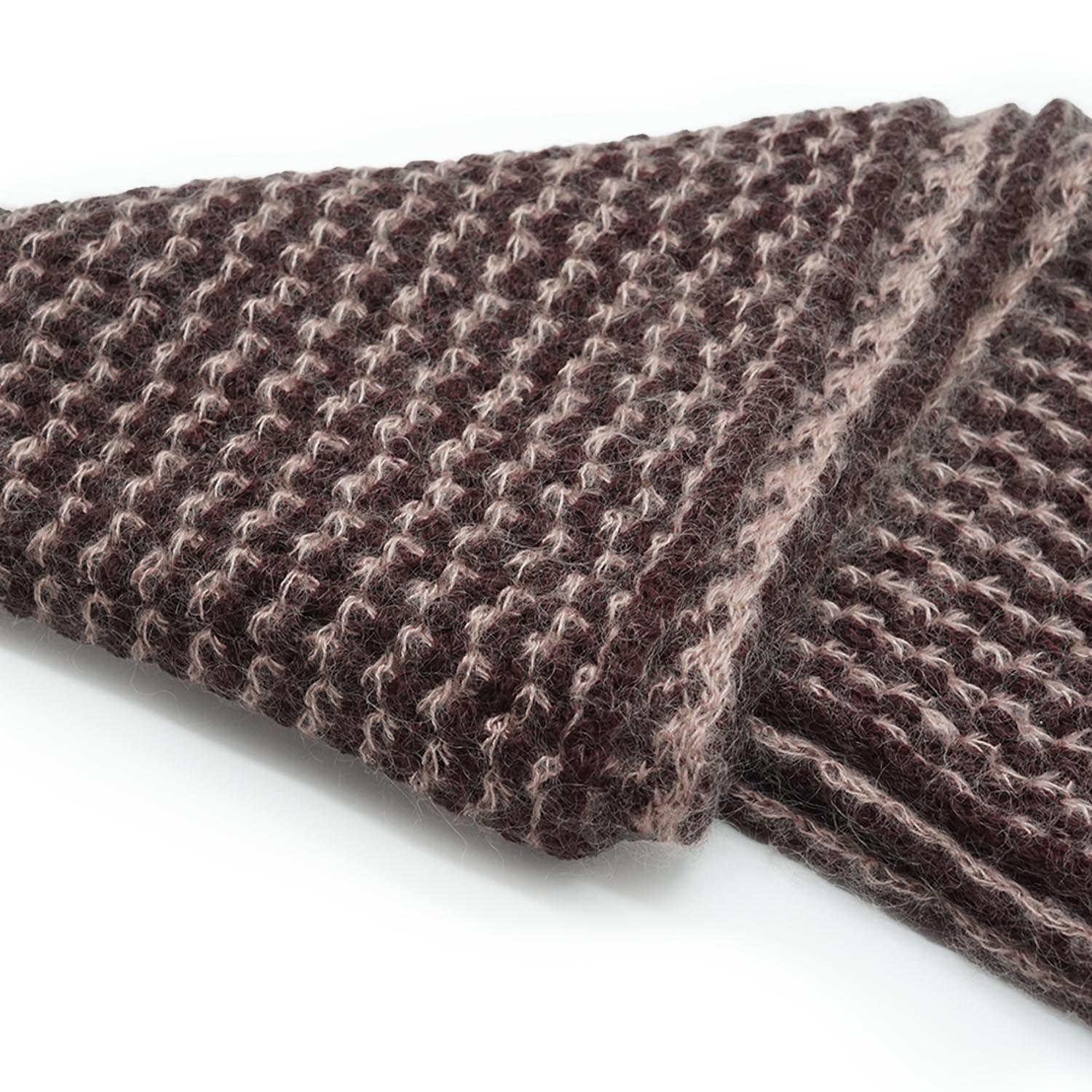 Bicolor Scarf With Gold Brooch Burgundy Mohair, Wool, Polyamide, Silk