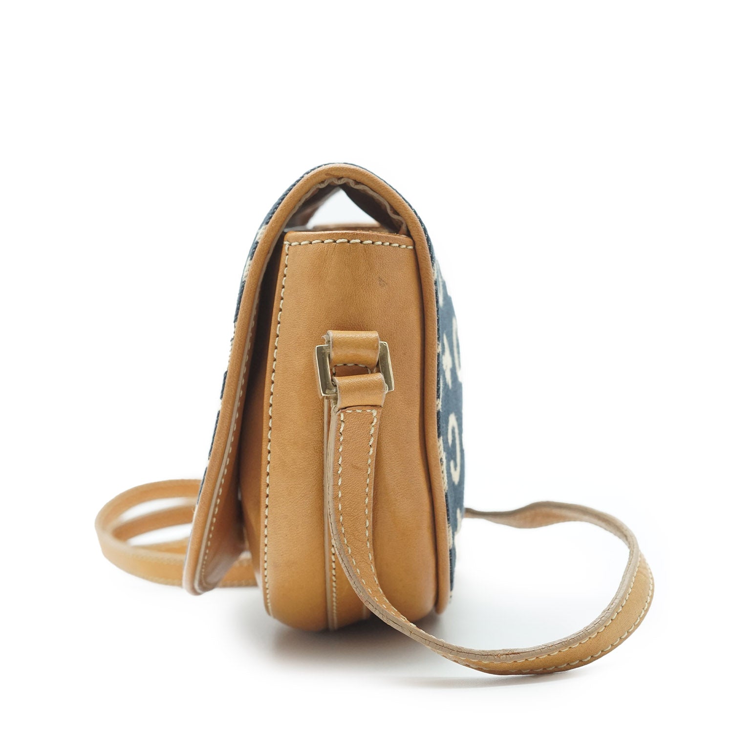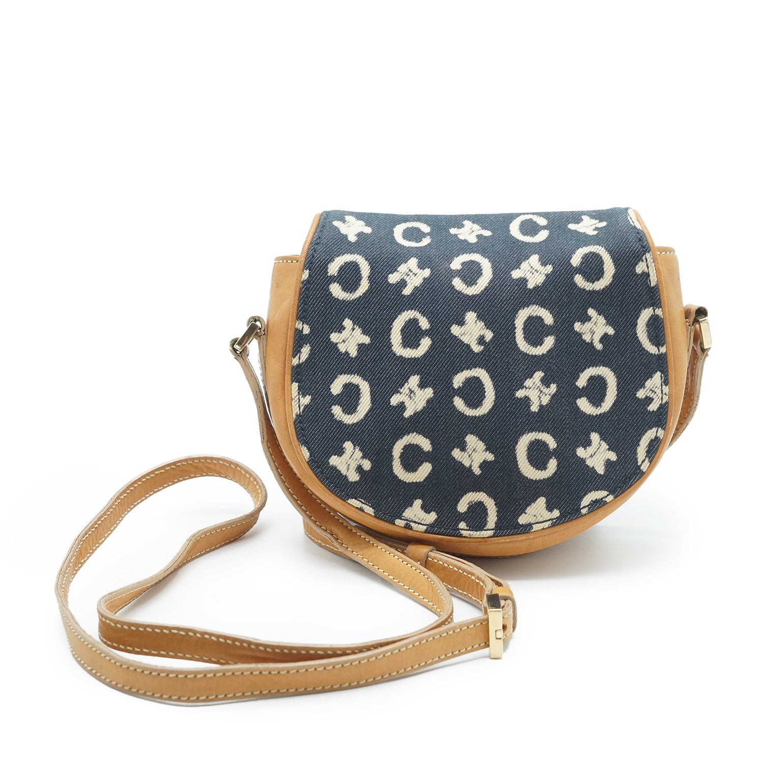C Macadam Mini Rounded Crossbody Bag Navy Canvas, Leather
