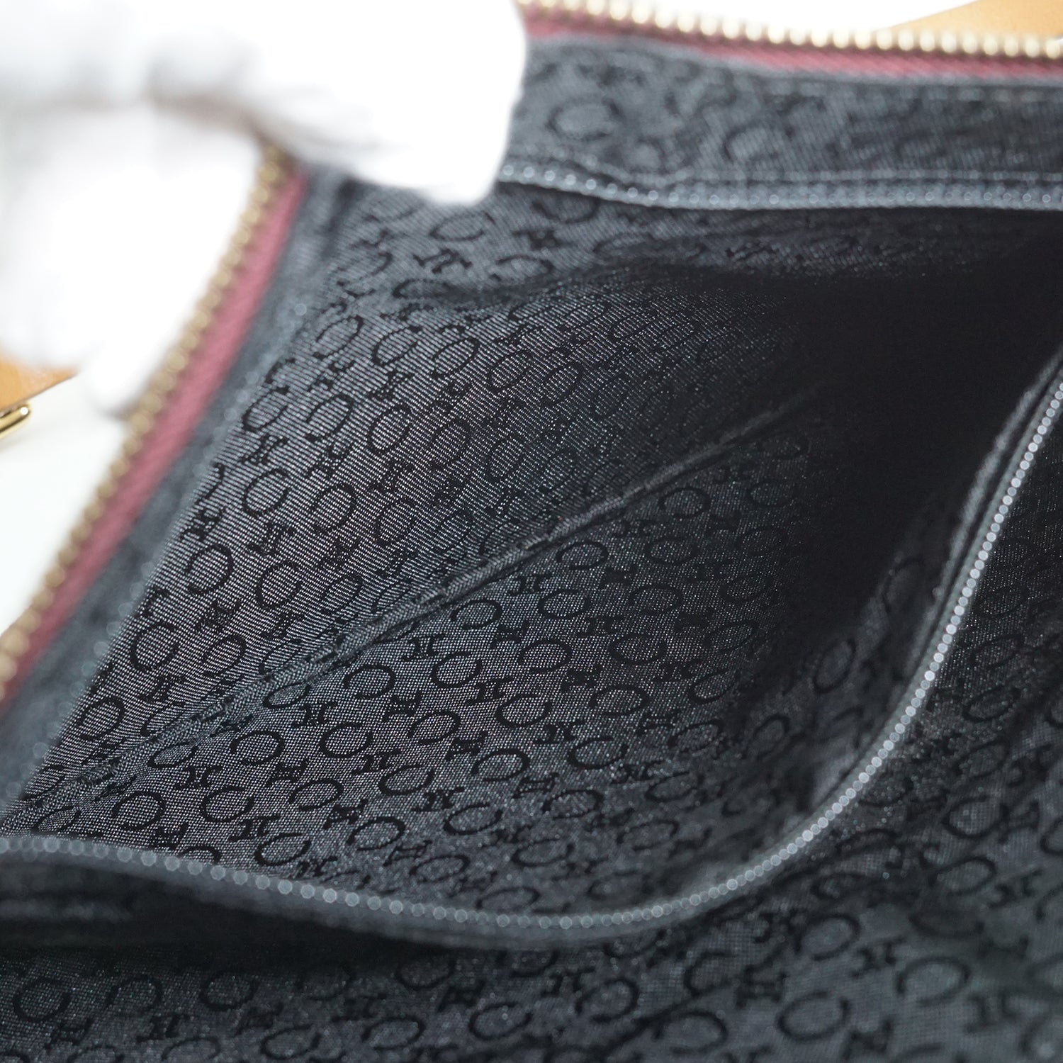 Discoloration: Slight hardware tarnish, slight discoloration of the suede (on the back) and on the inside fabric