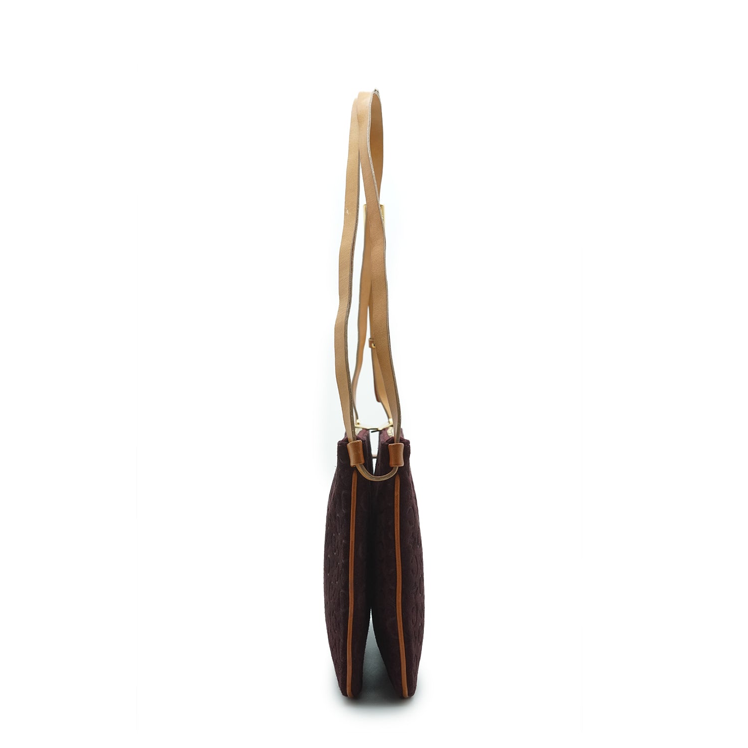 C Macadam Suede Duo Shoulder Pochette Burgundy Suede, Leather