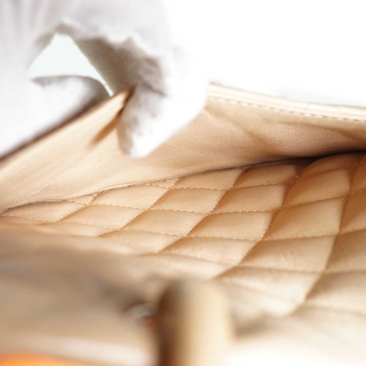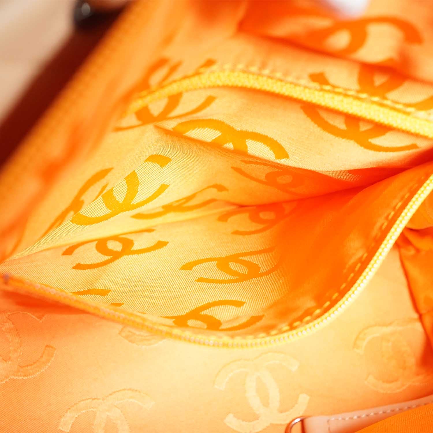 Stain: Some stains on the inside and on the leather tab near the zipper, minor stains on the patent logo