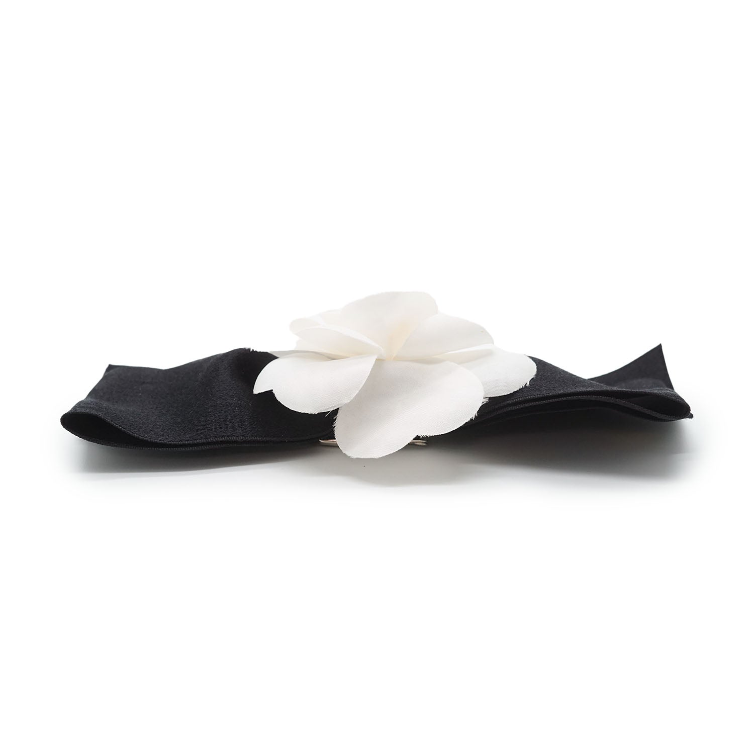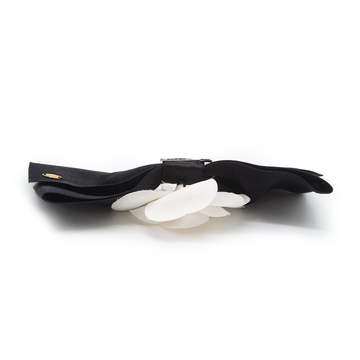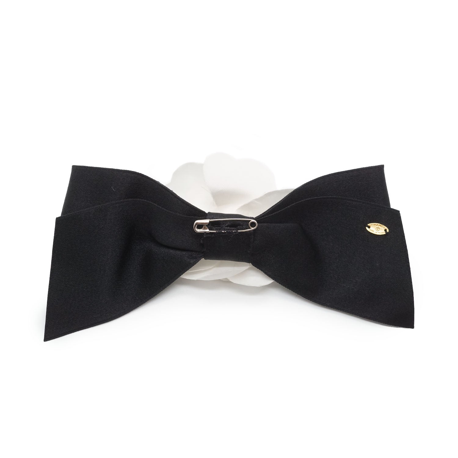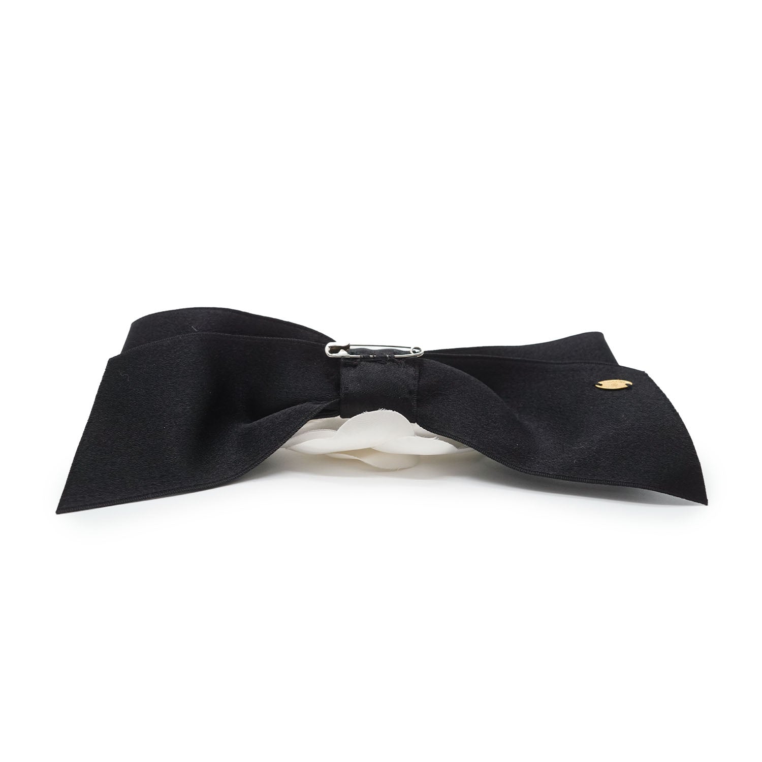 Camellia Corsage Maxi Ribbon Brooch Black Silk, Organza