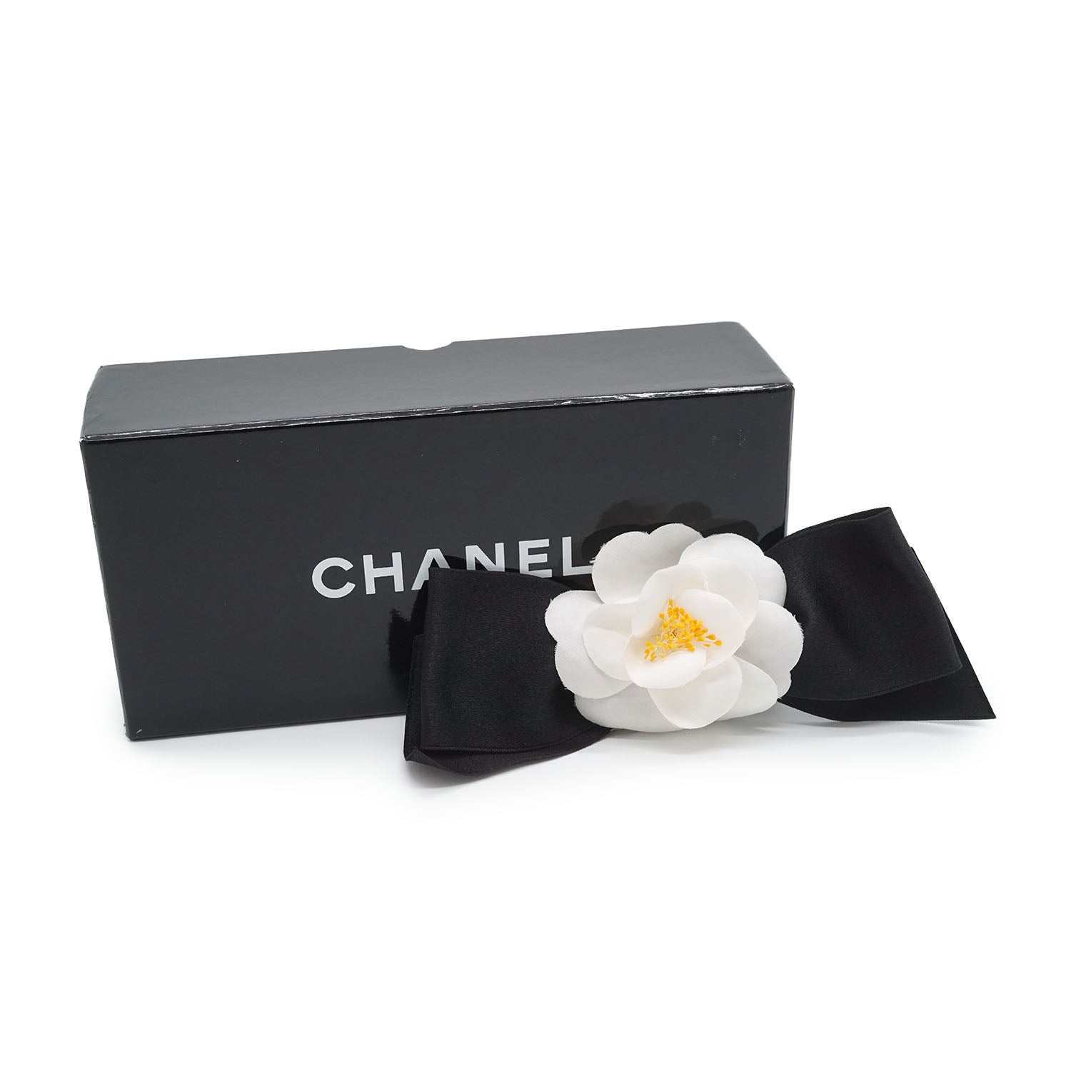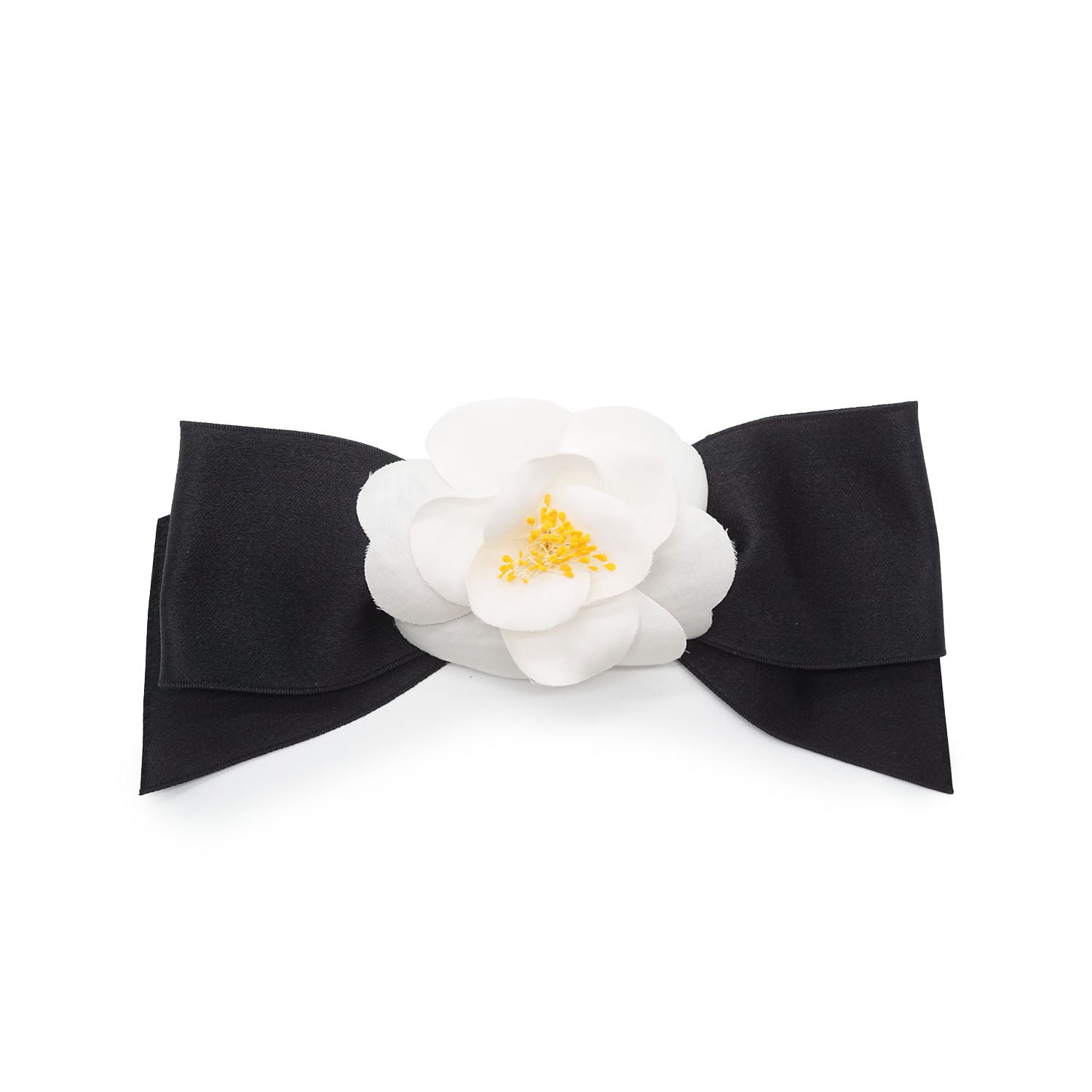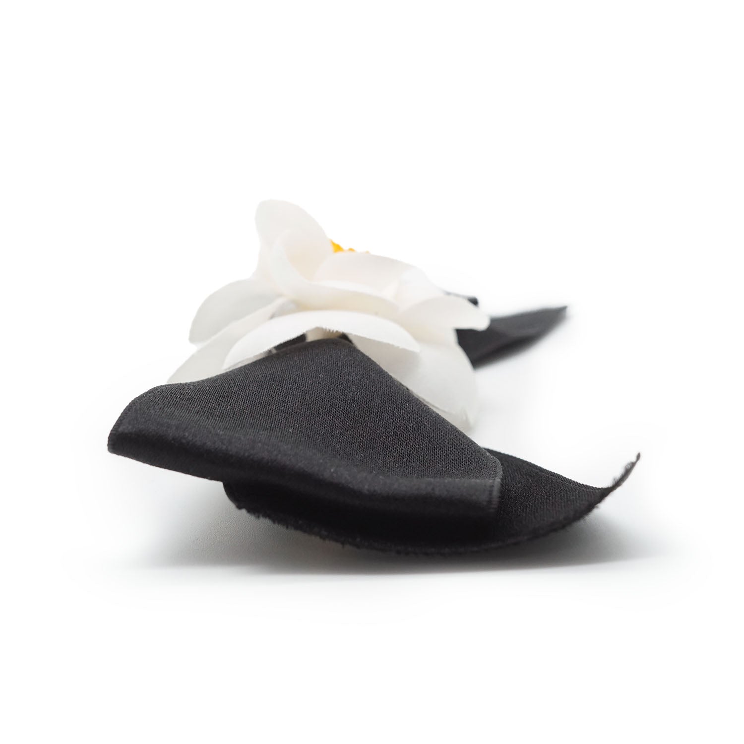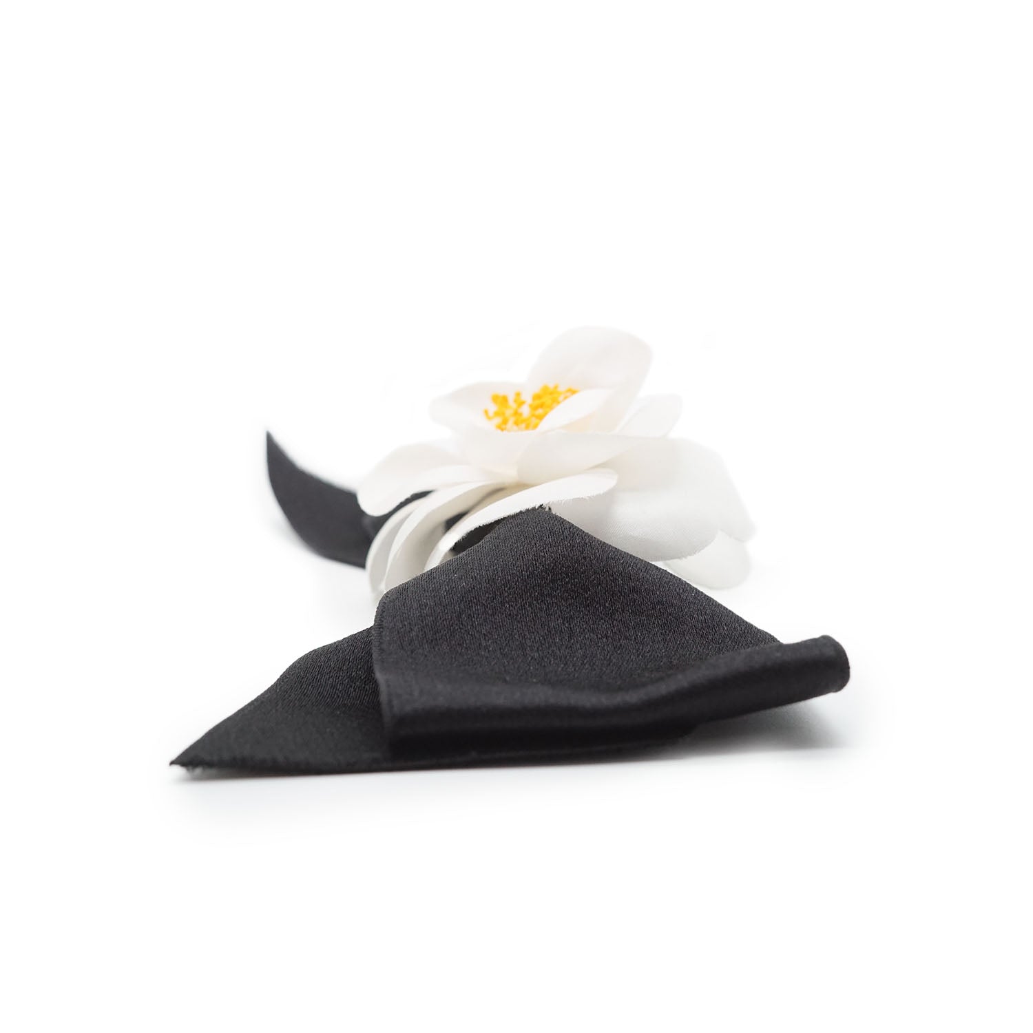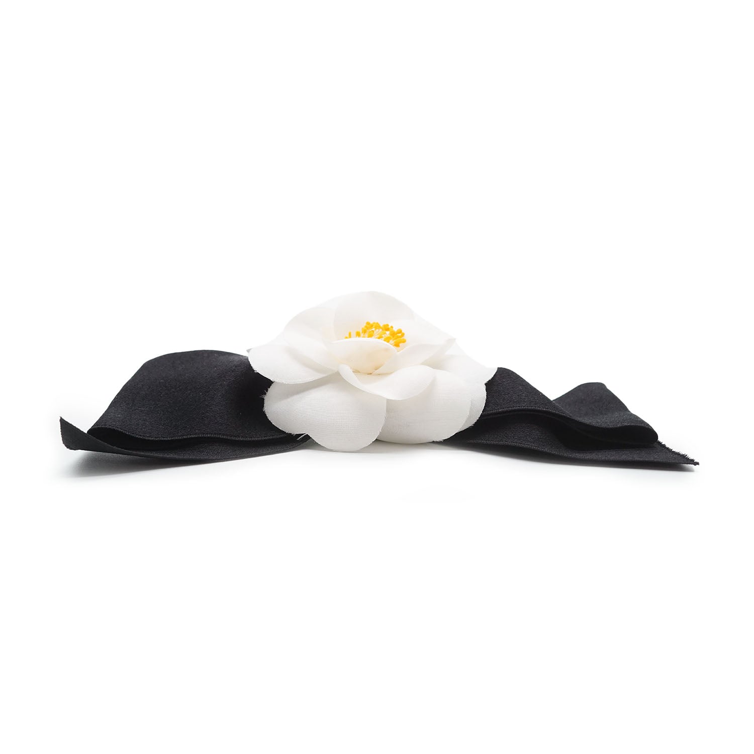 Camellia Corsage Maxi Ribbon Brooch Black Silk, Organza