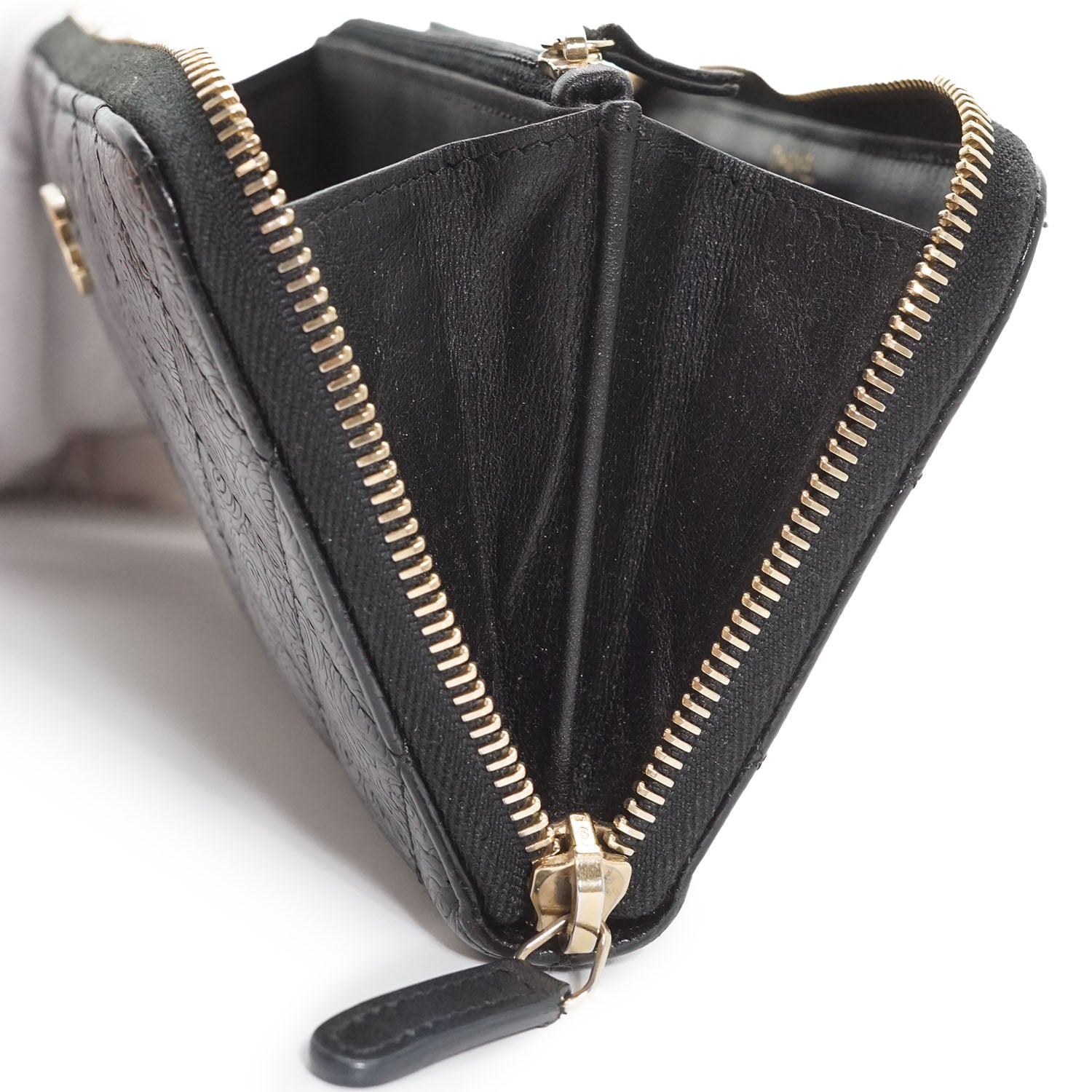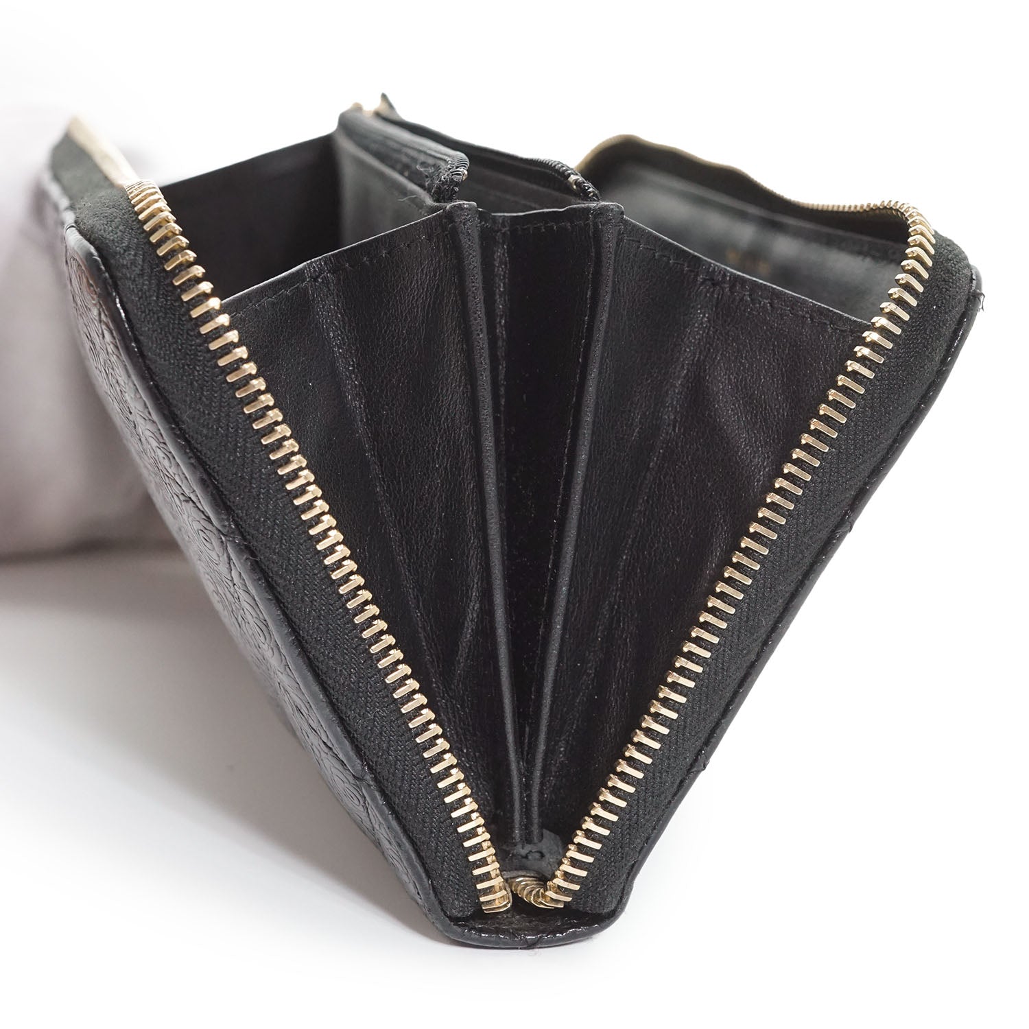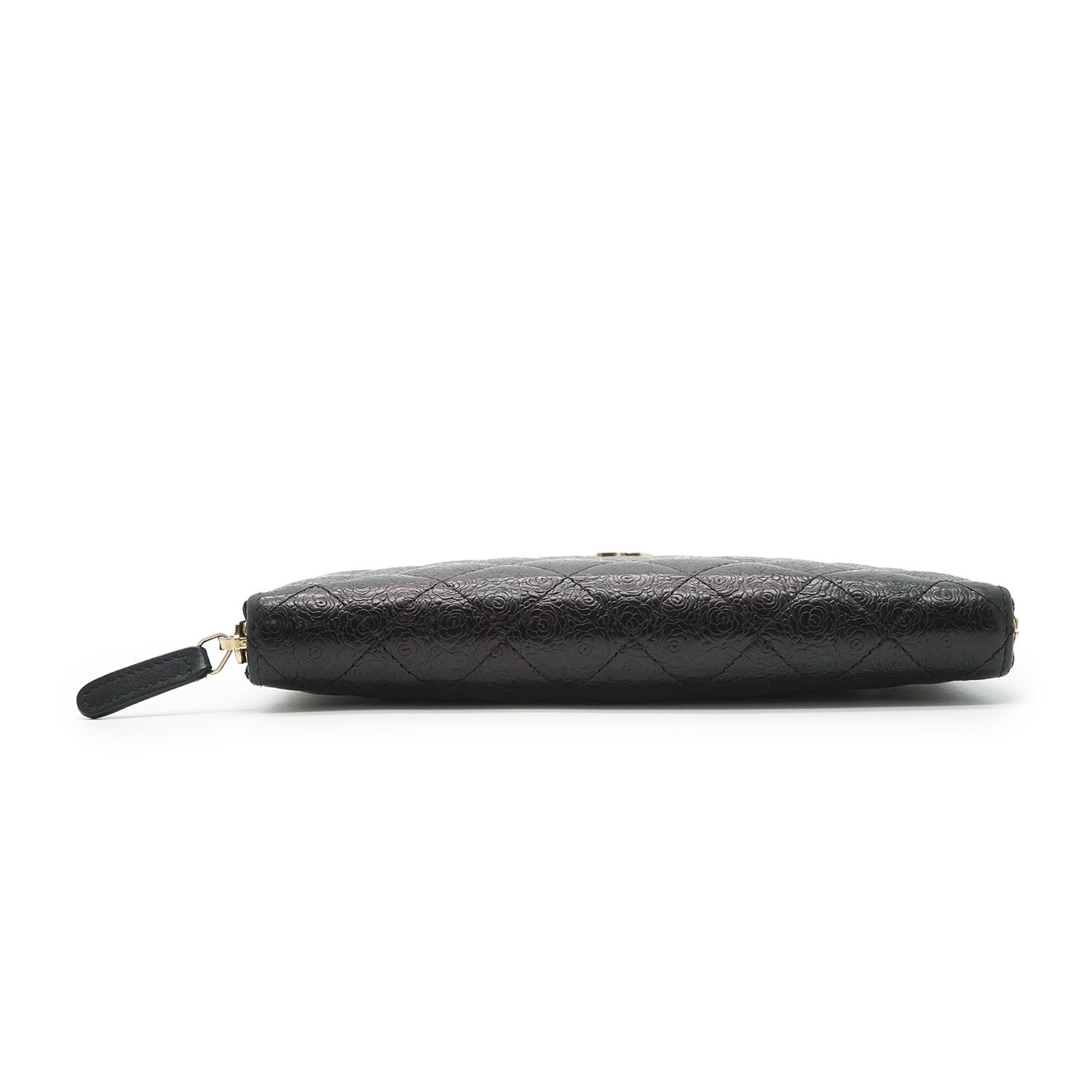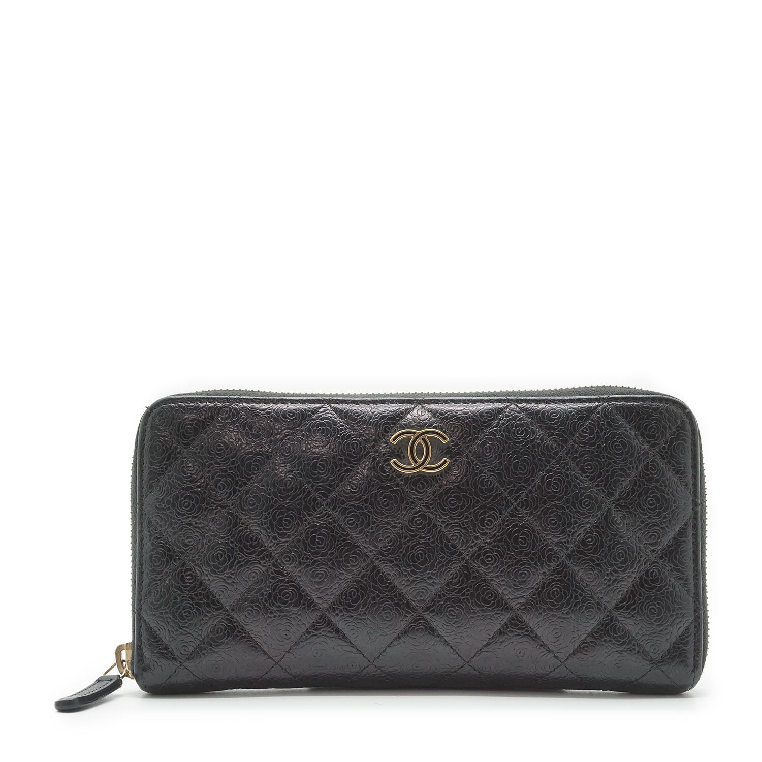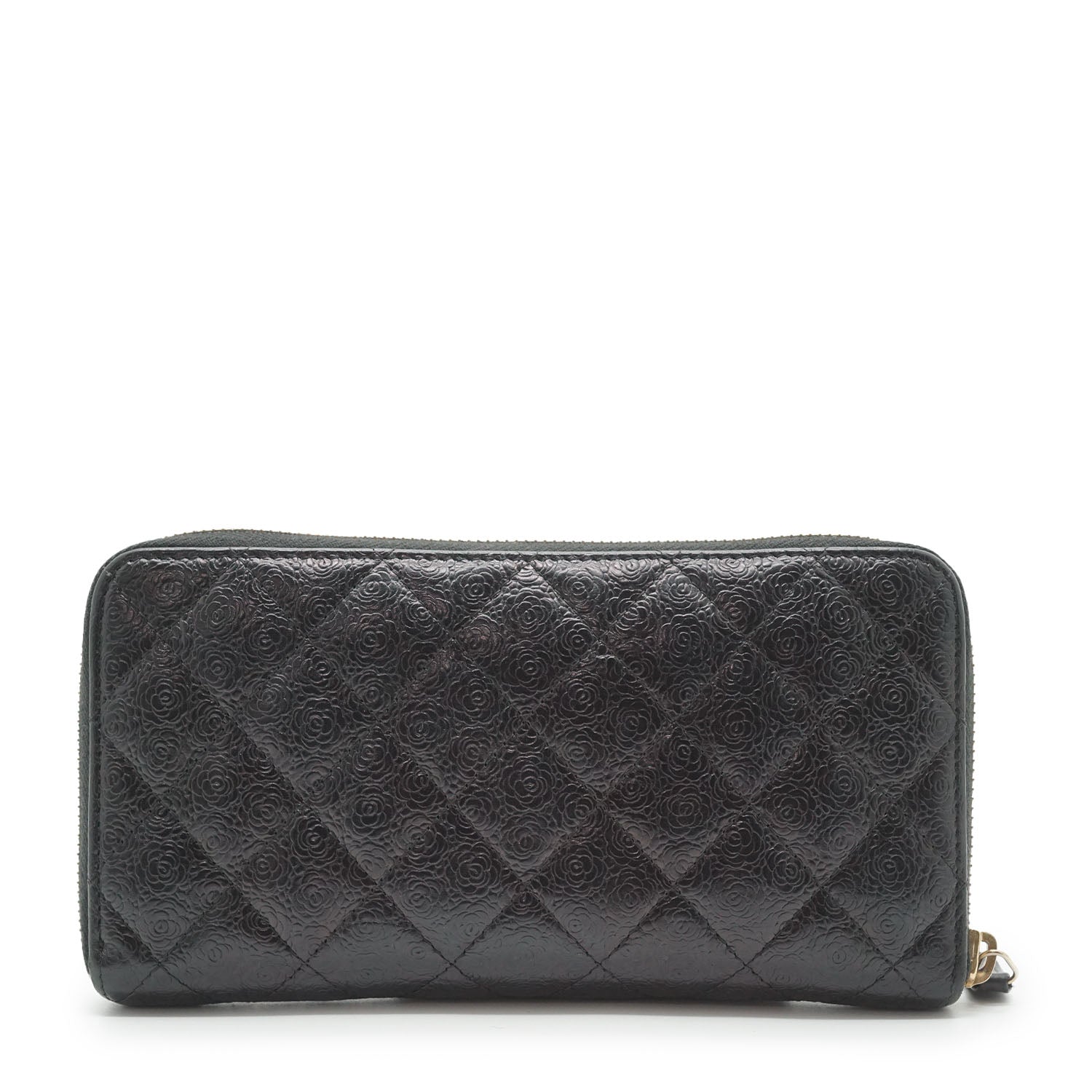 Camellia Zip Around Long Wallet Black Leather