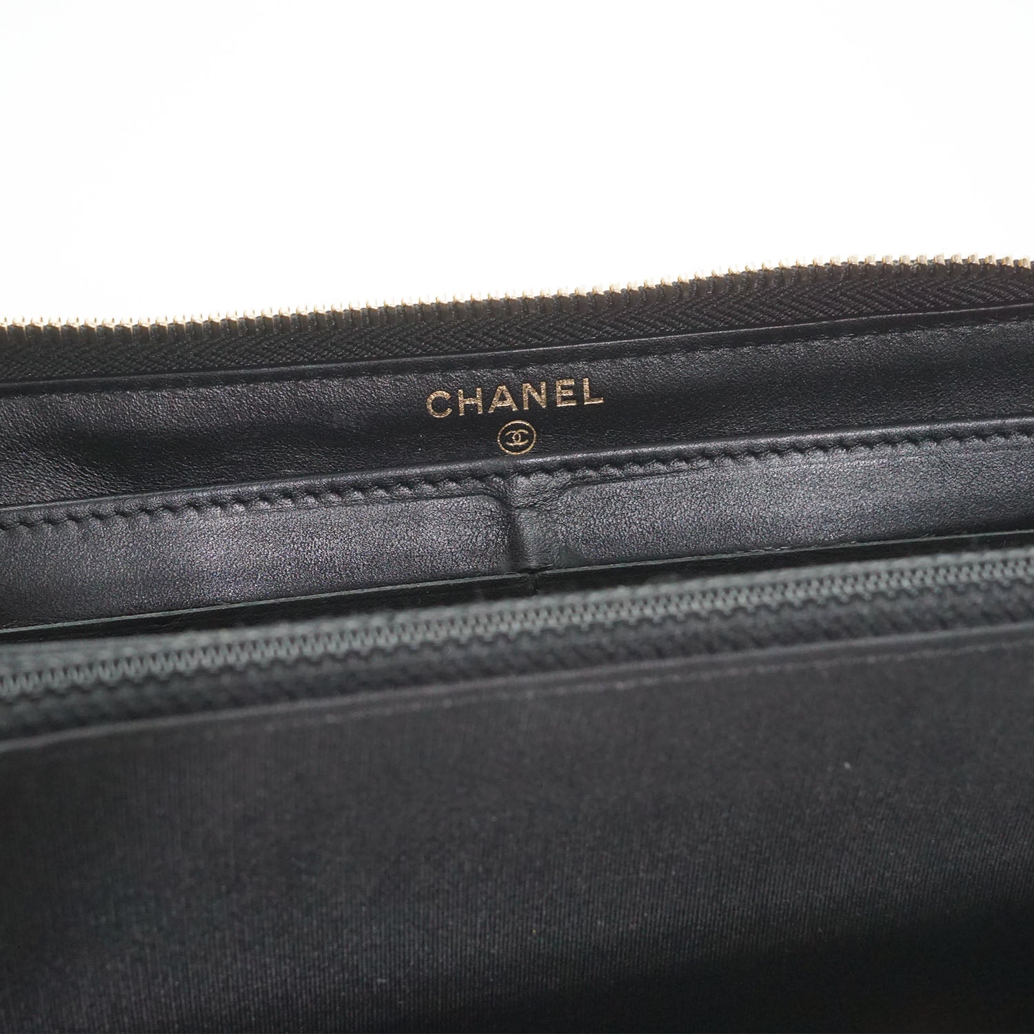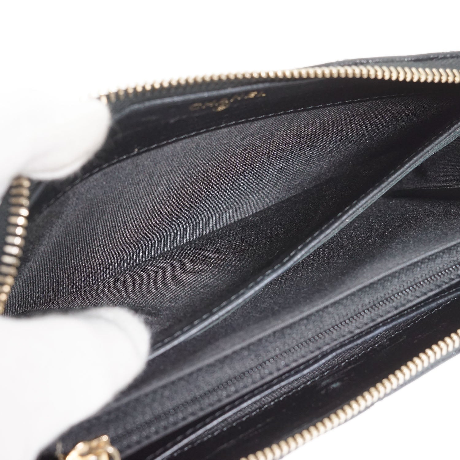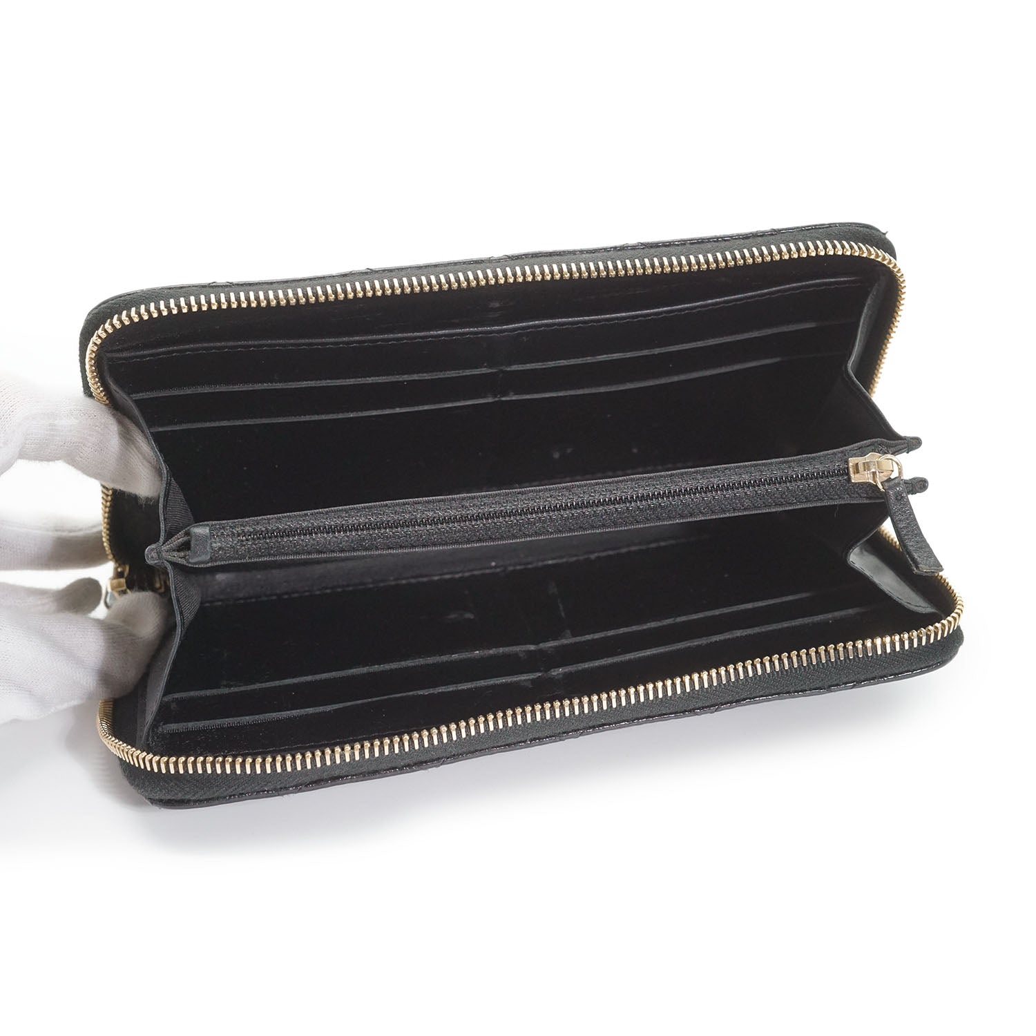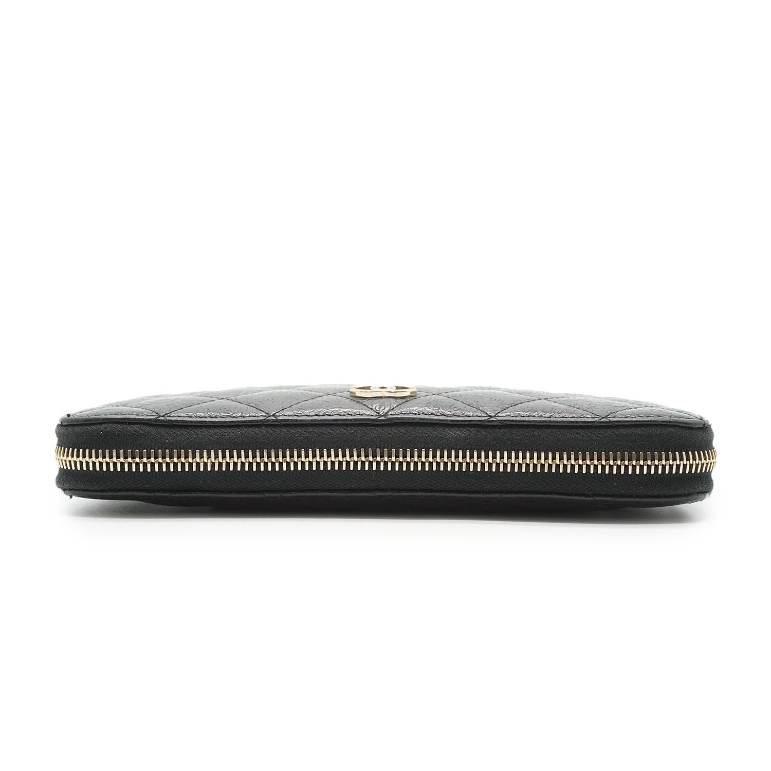 Camellia Zip Around Long Wallet Black Leather