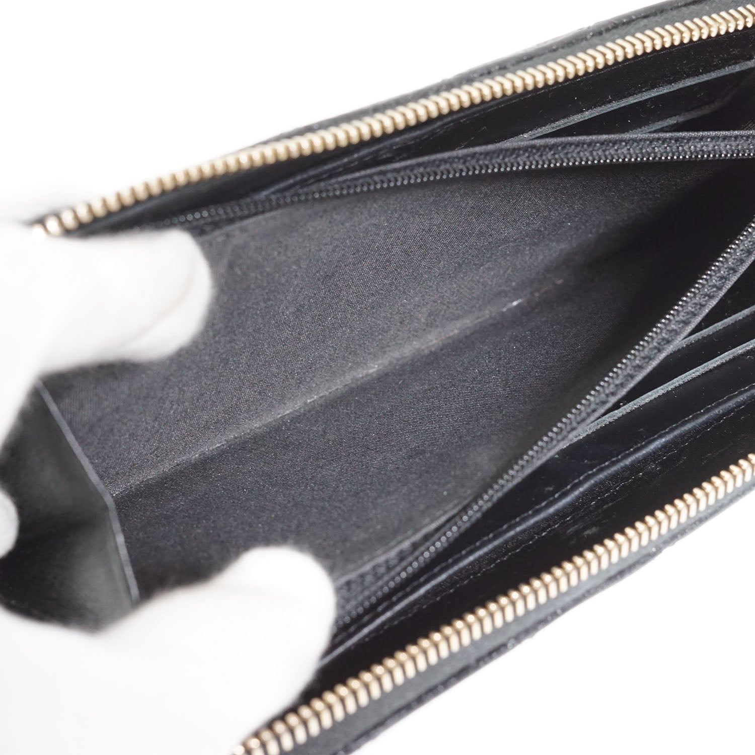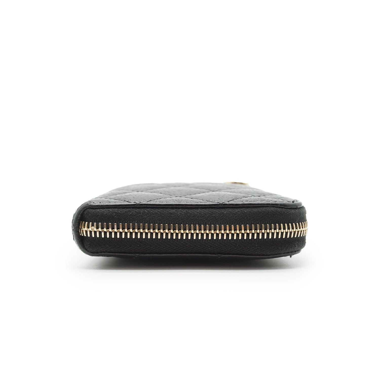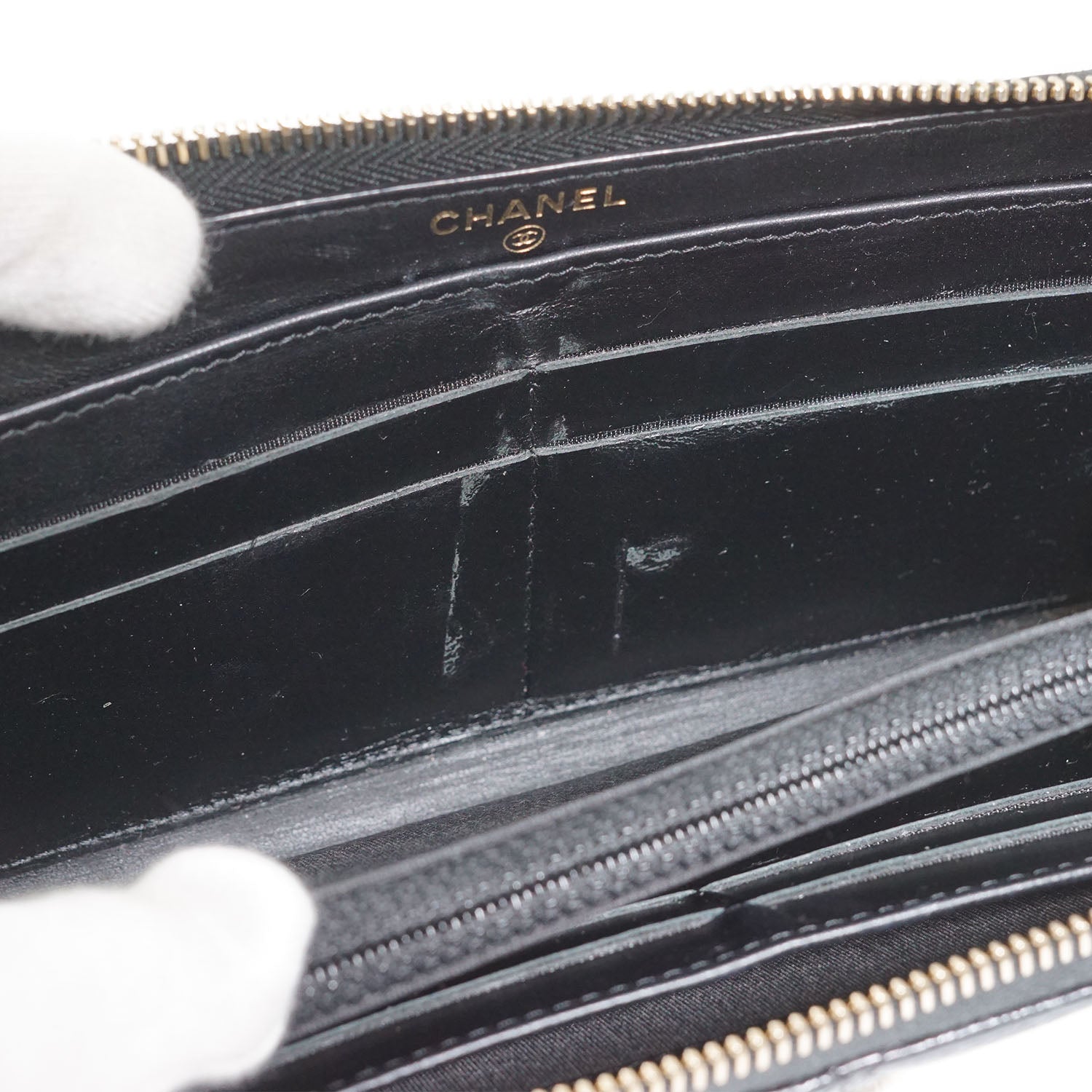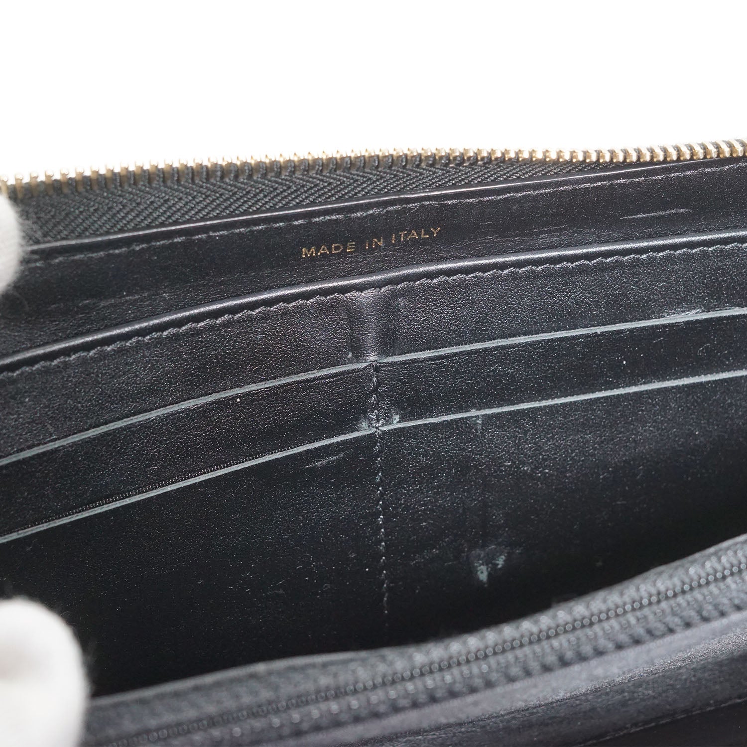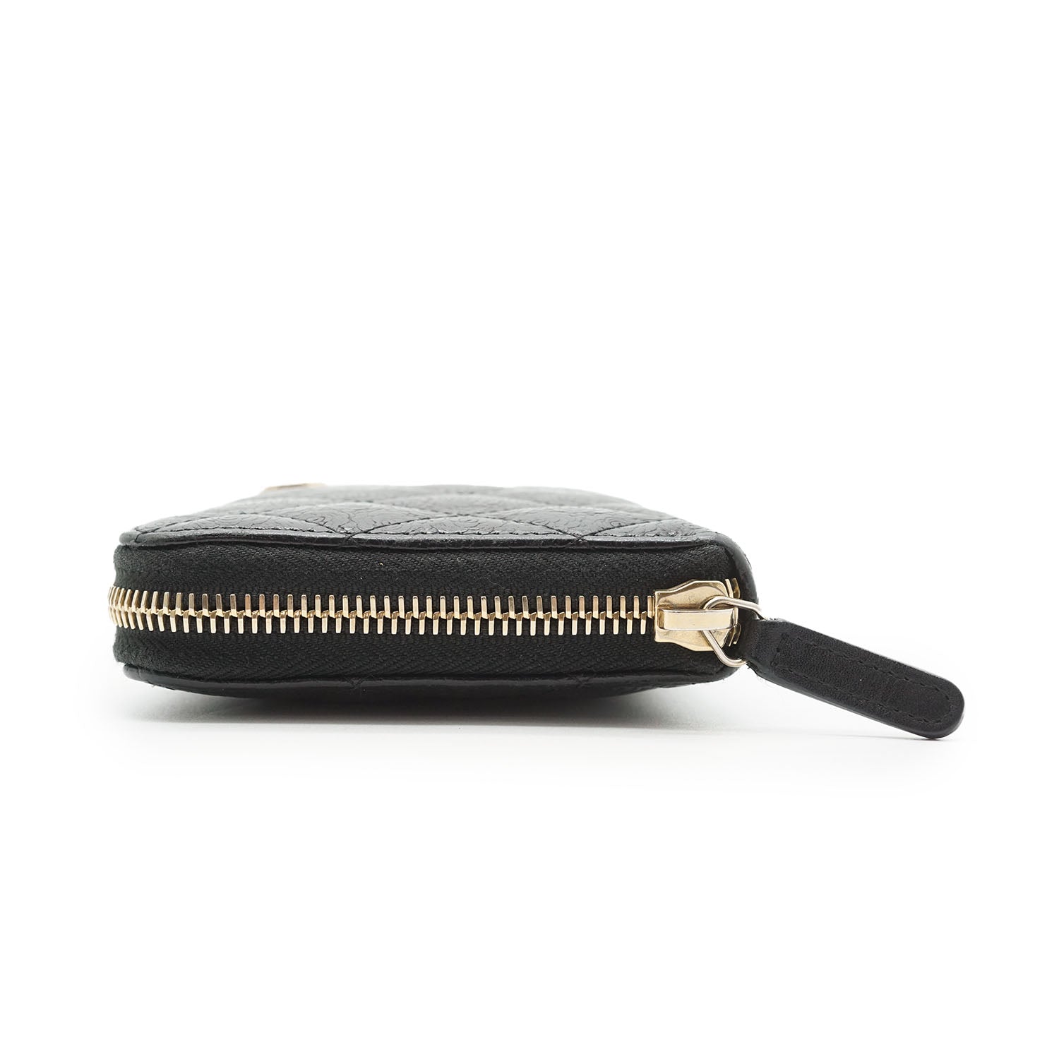 Camellia Zip Around Long Wallet Black Leather