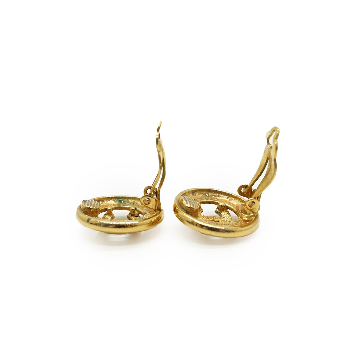 Discoloration: Some tarnish, with some green rust on the back of both earrings