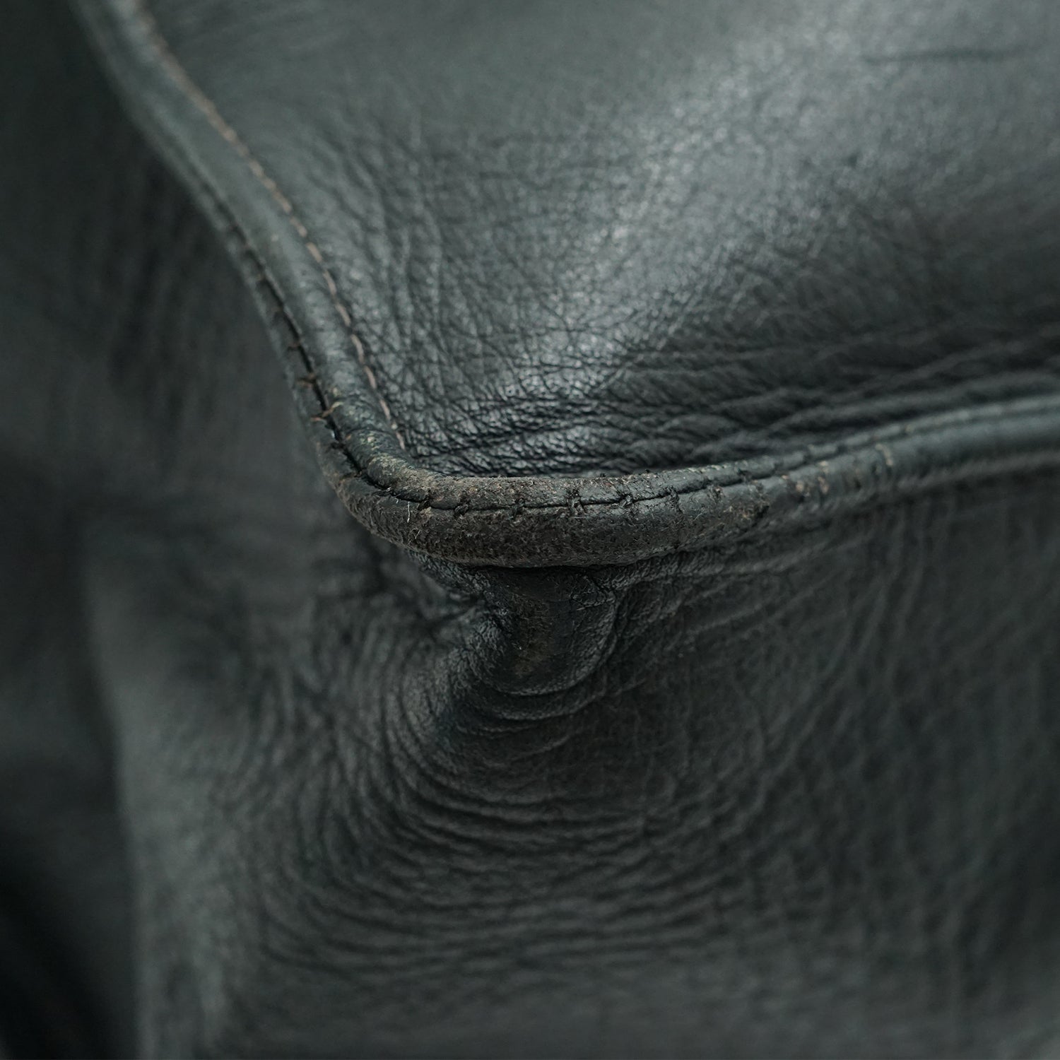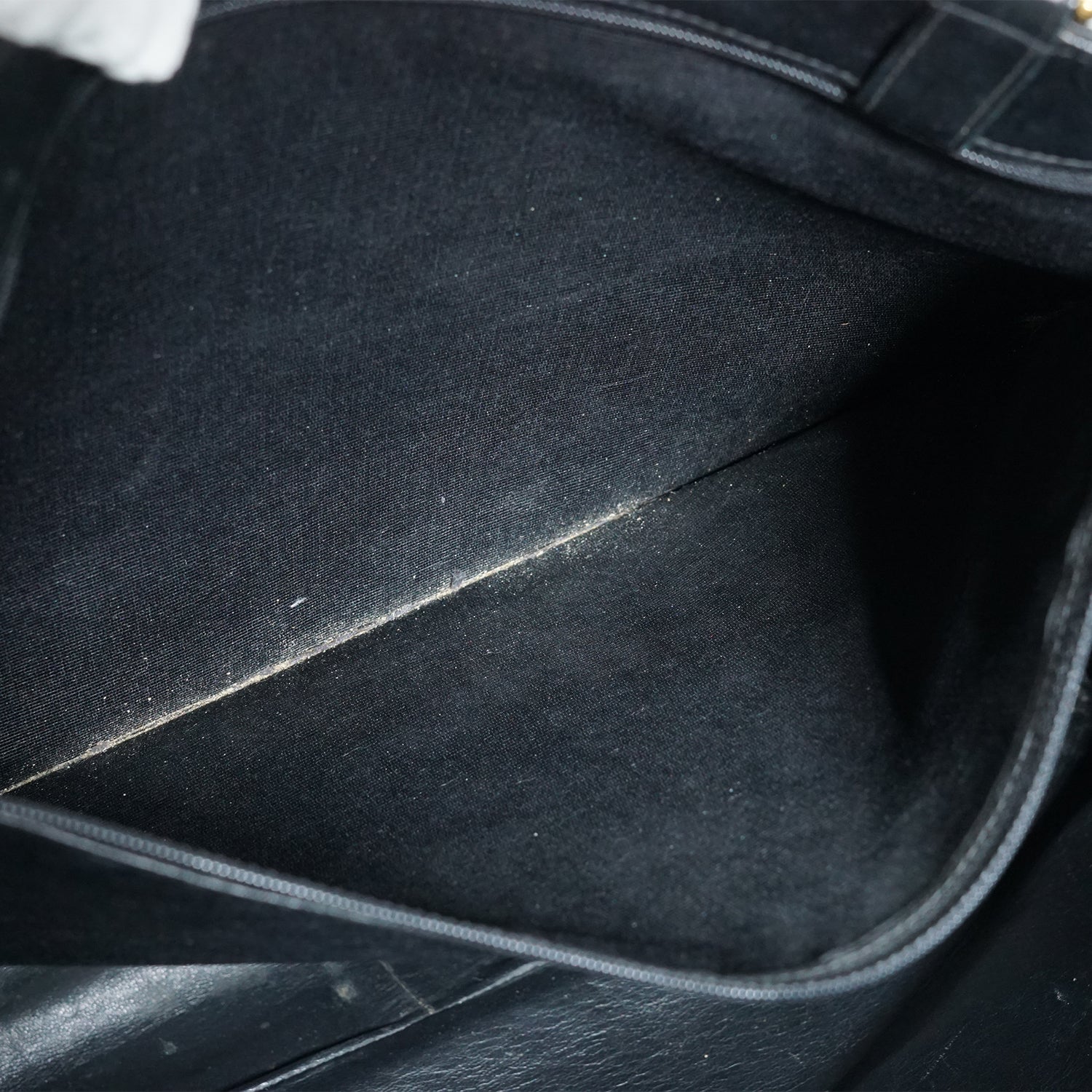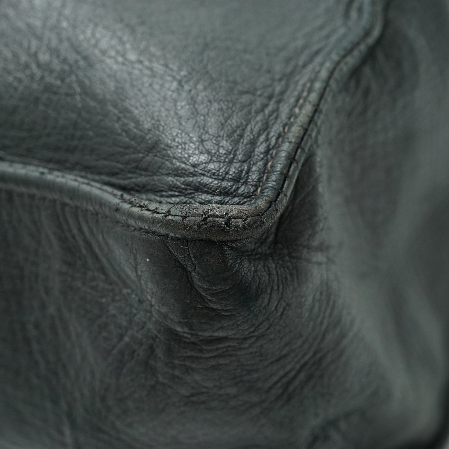 Discoloration: Some hardware tarnish, some leather discoloration throughout the inside