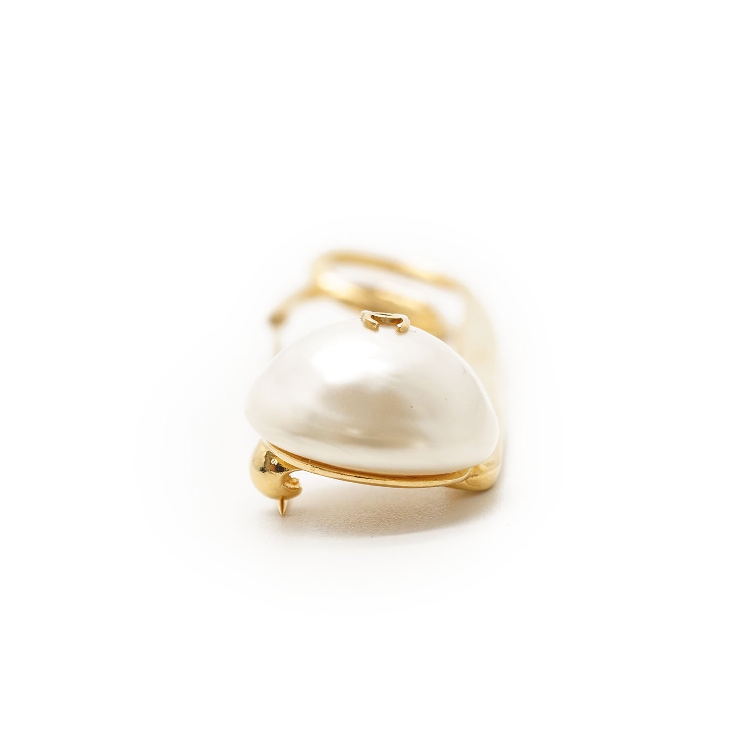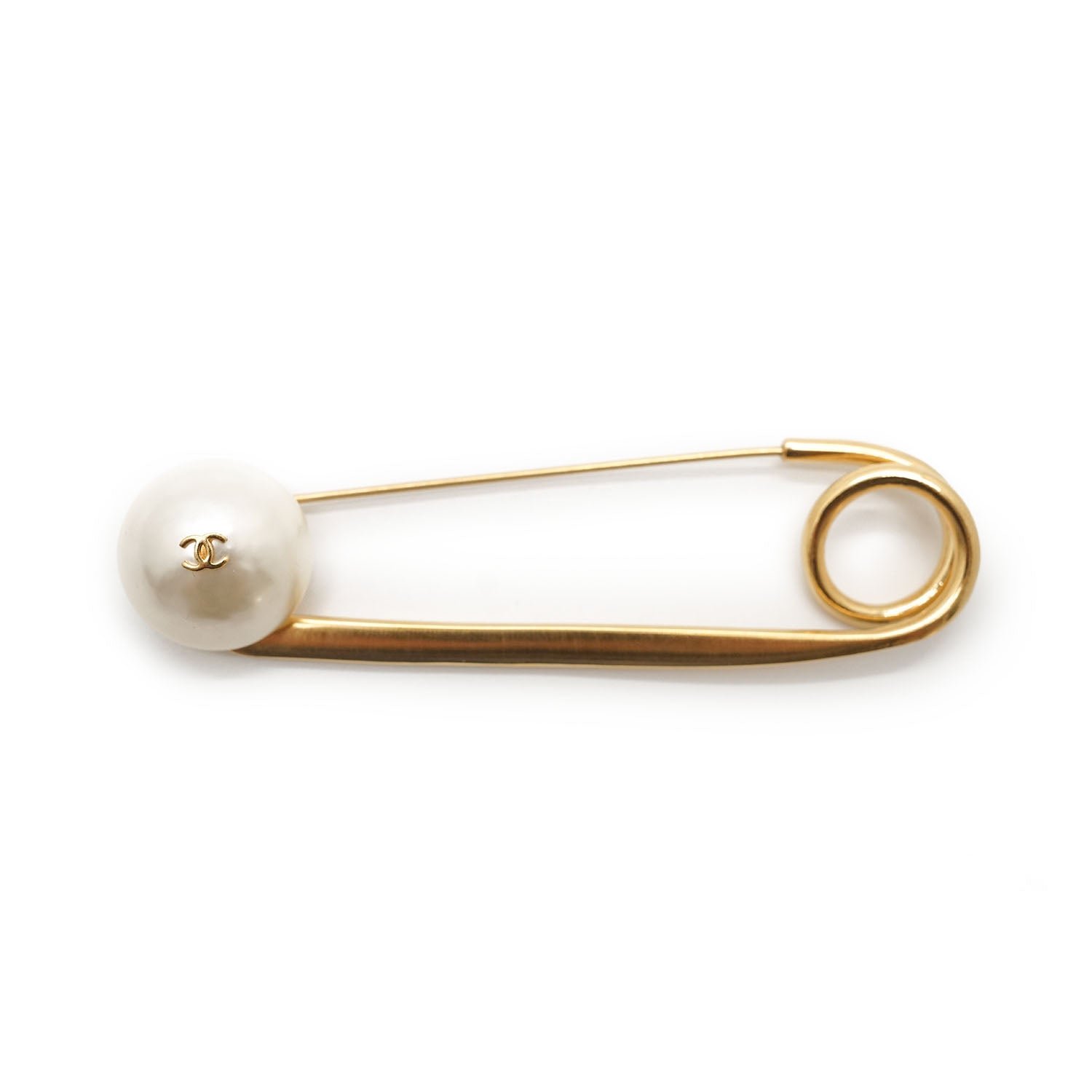 CC Logo Artificial Pearl Safety Pin Brooch GP Gold Brass