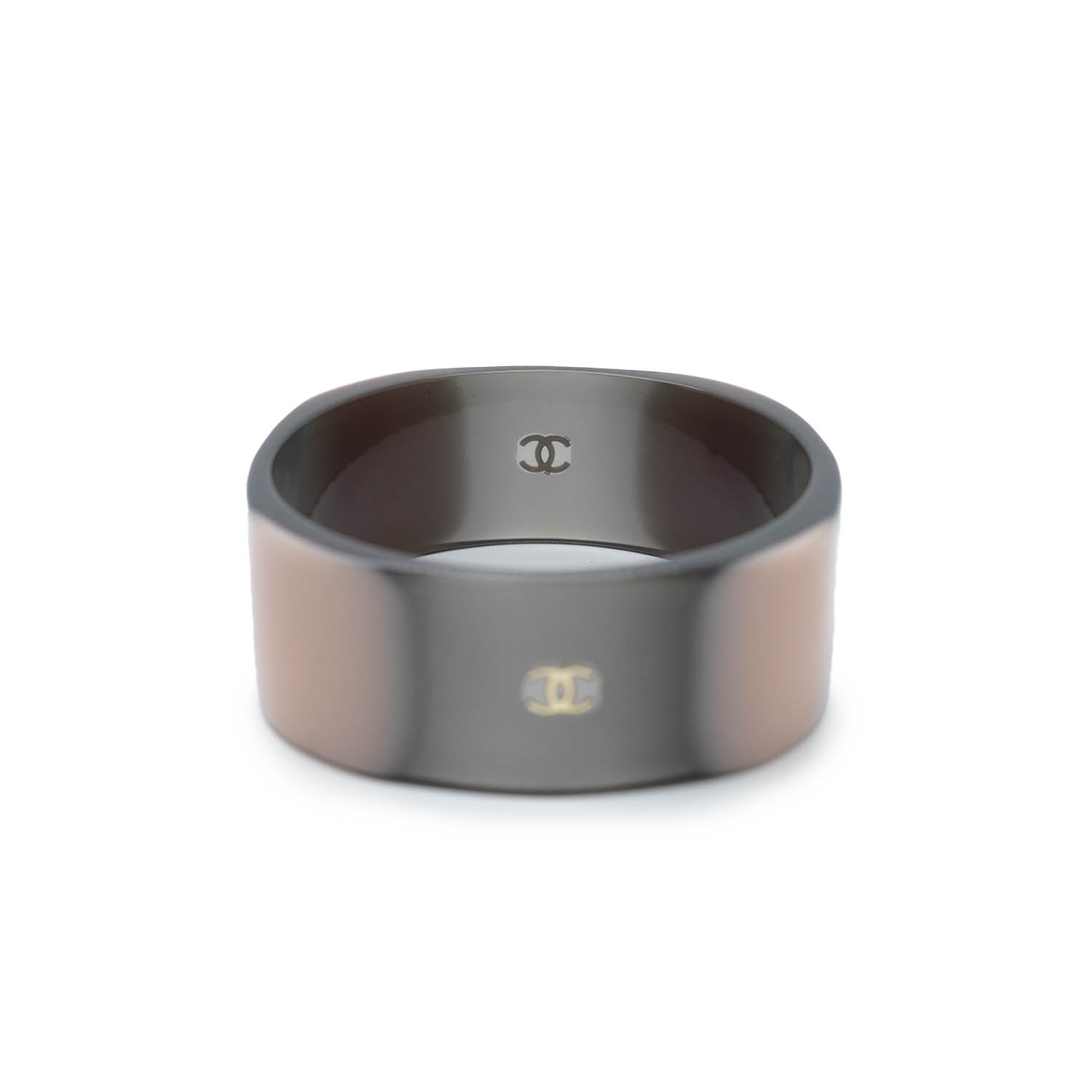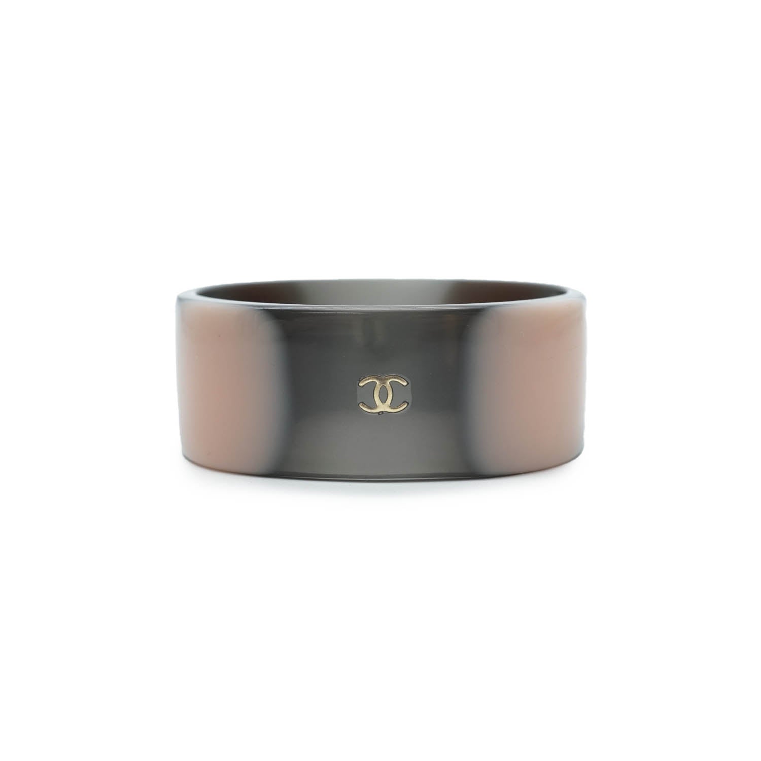CC Logo Bicolor Bangle Bracelet Smoky Black Resin