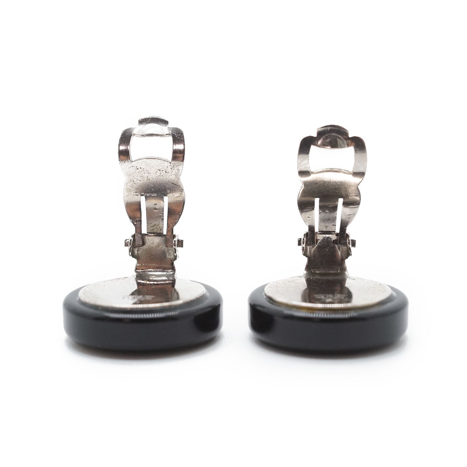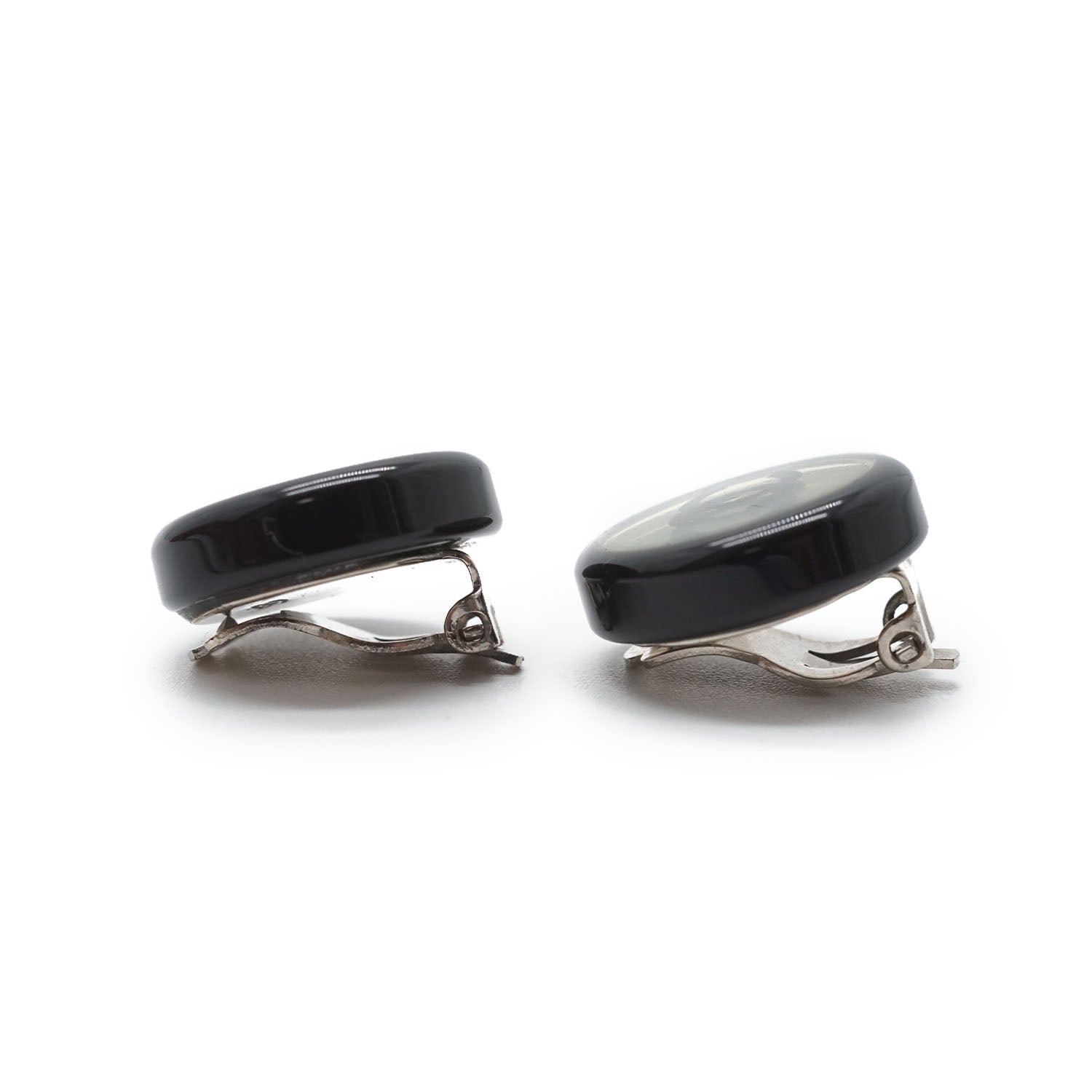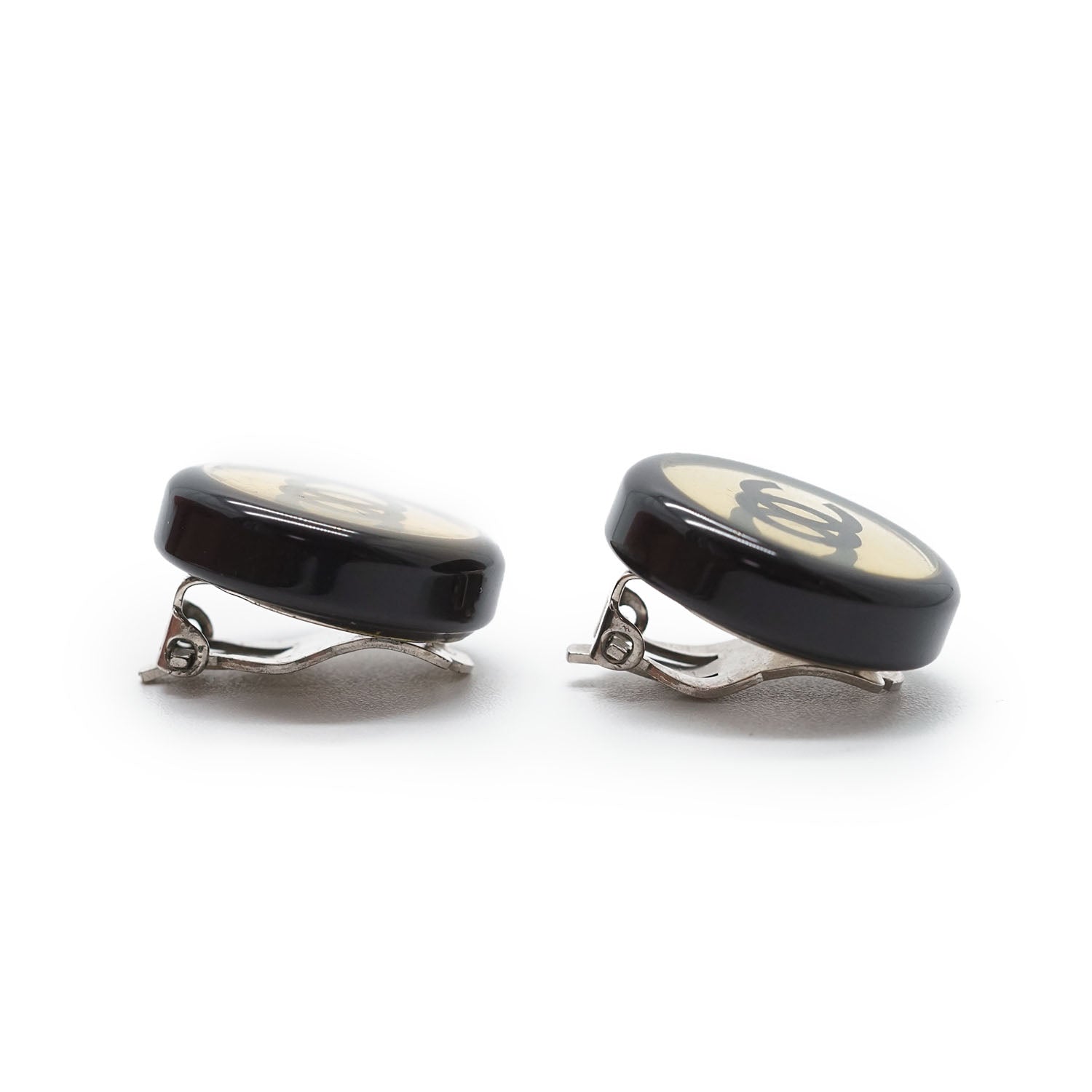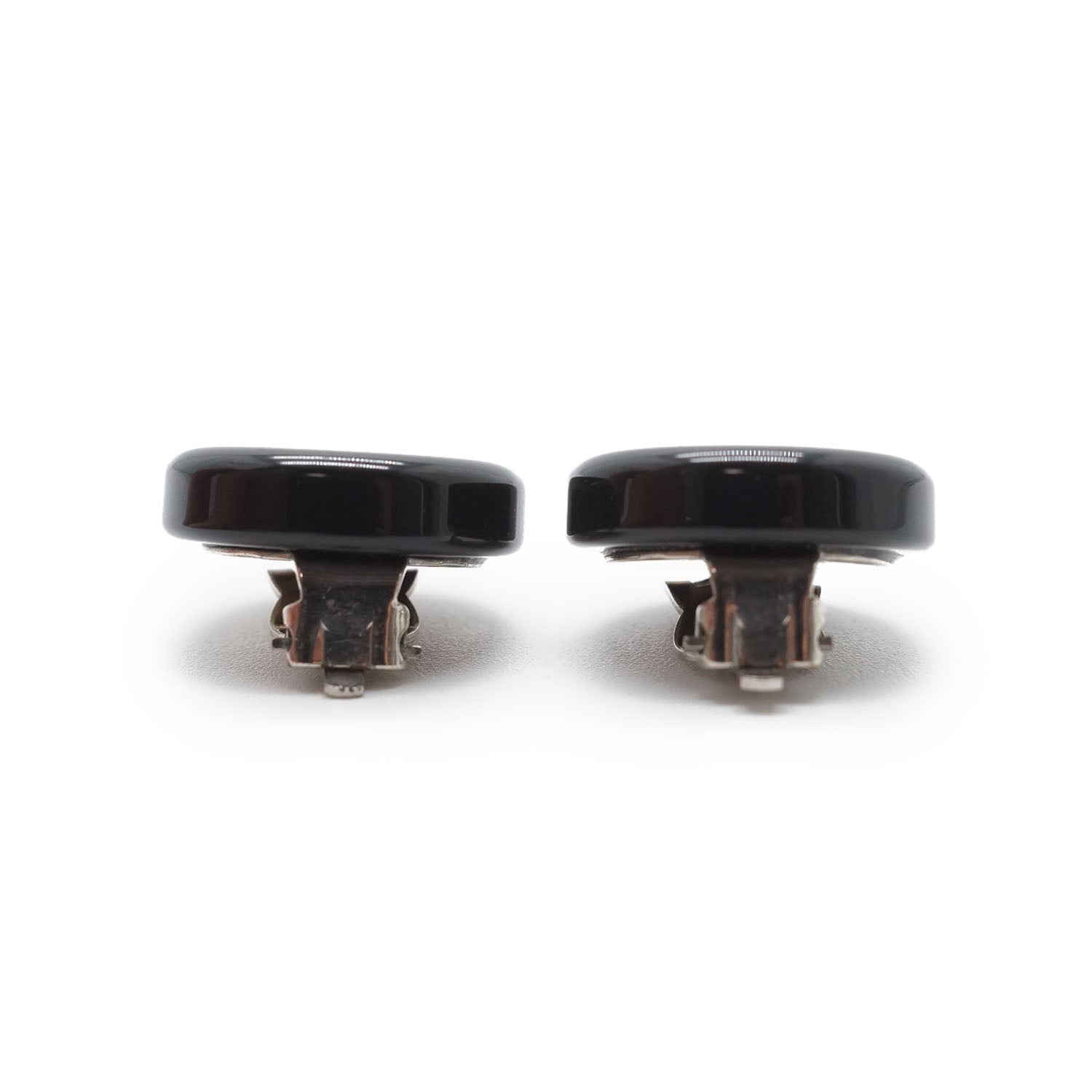 CC Logo Bicolor Button Clip-On Earrings Black Brass, Resin