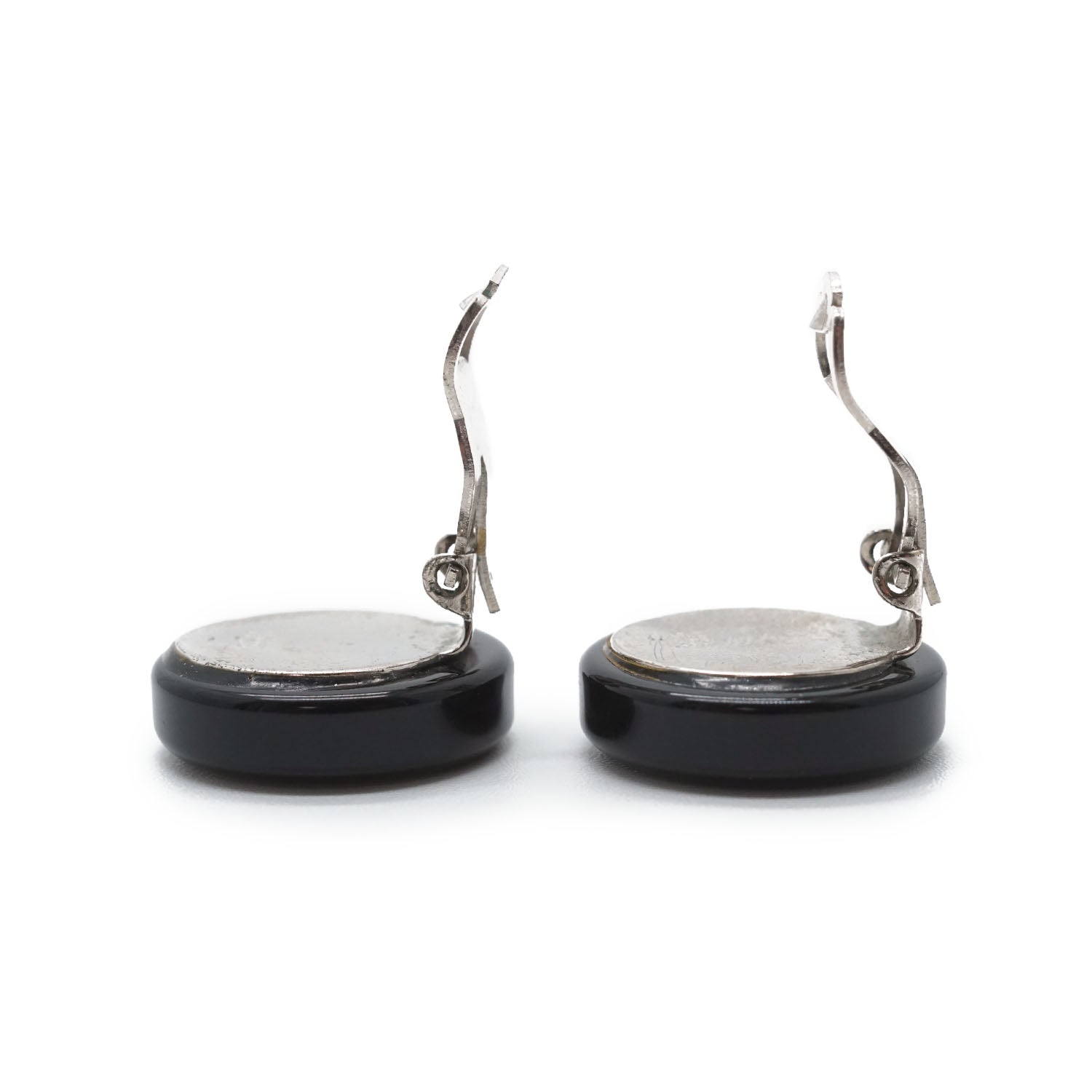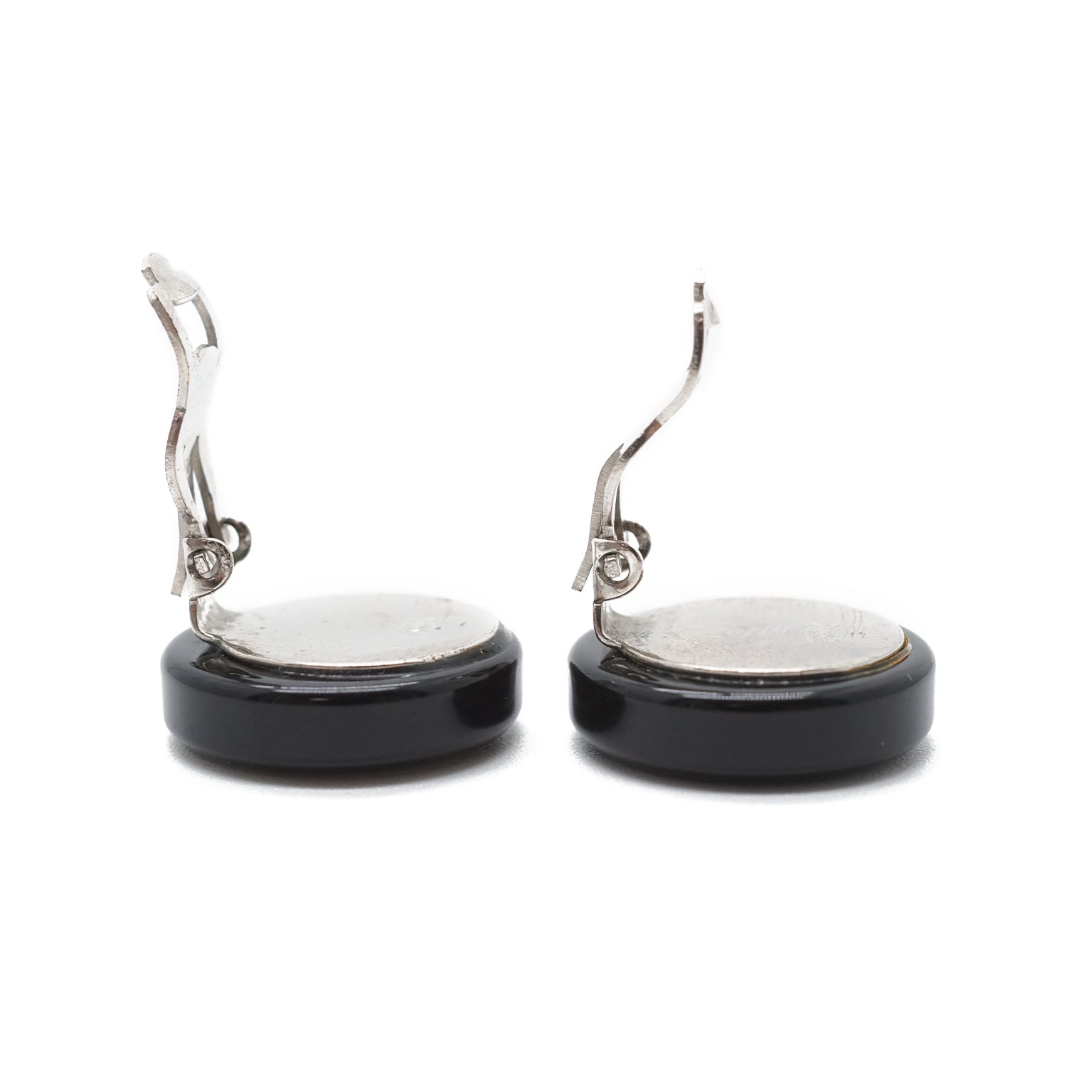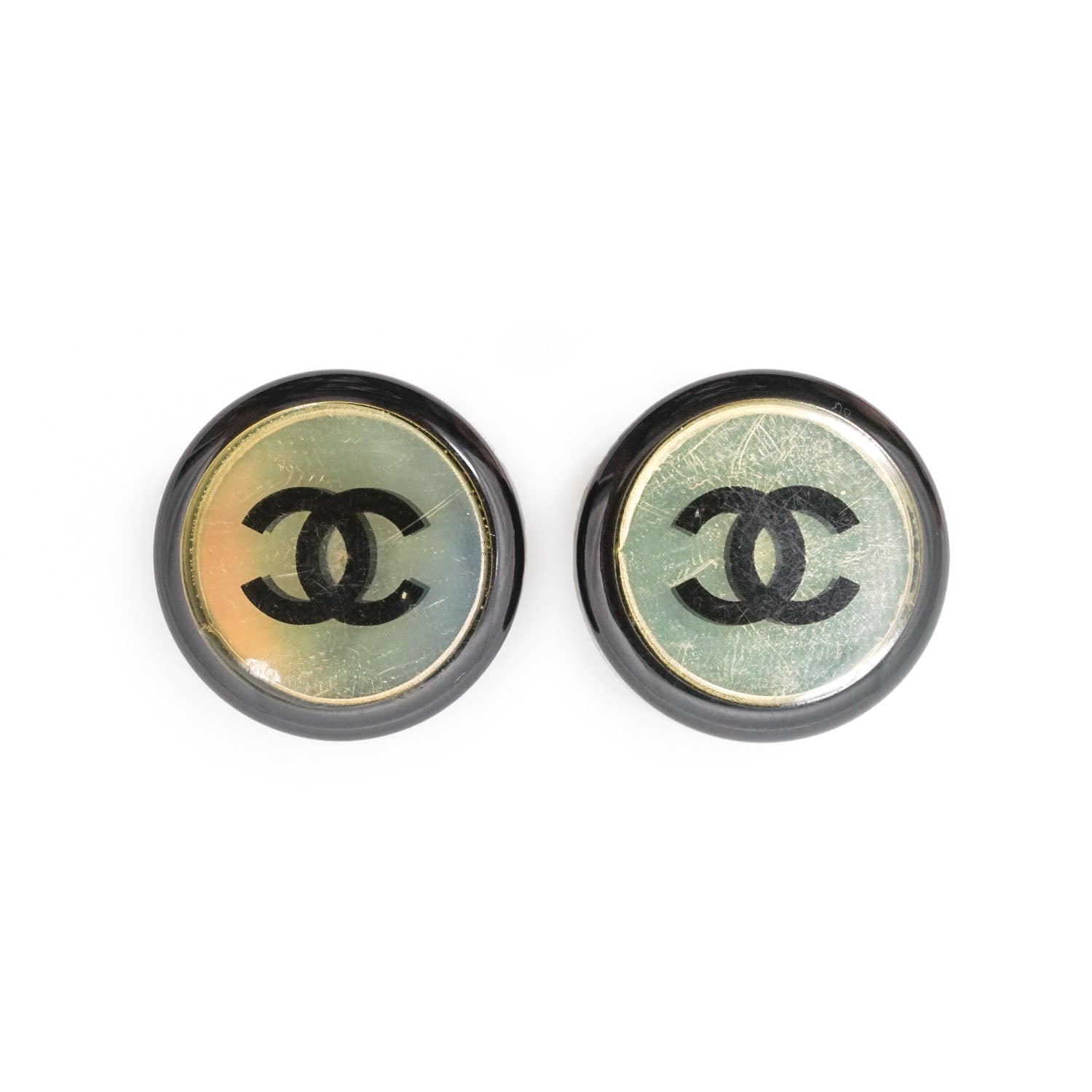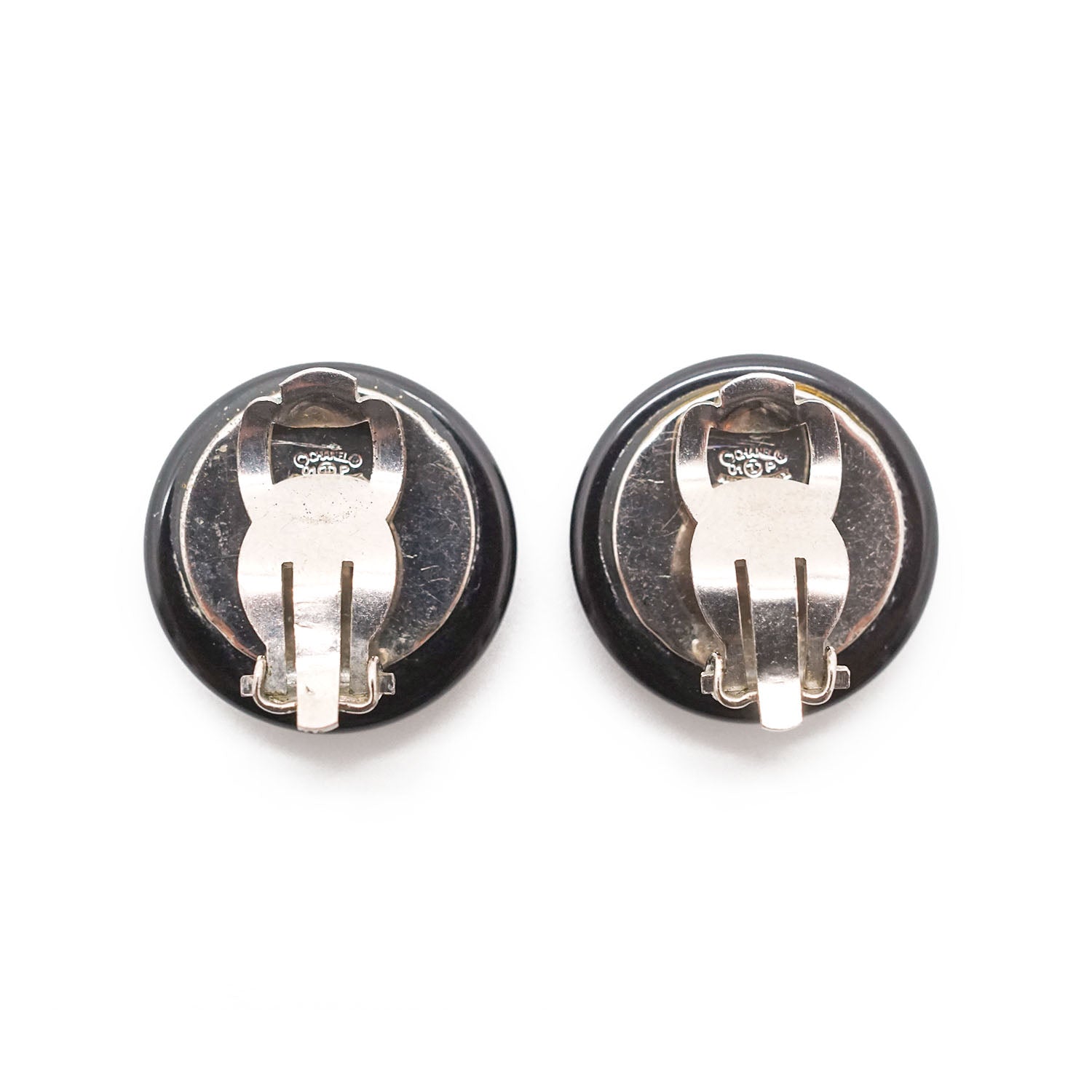 CC Logo Bicolor Button Clip-On Earrings Black Brass, Resin