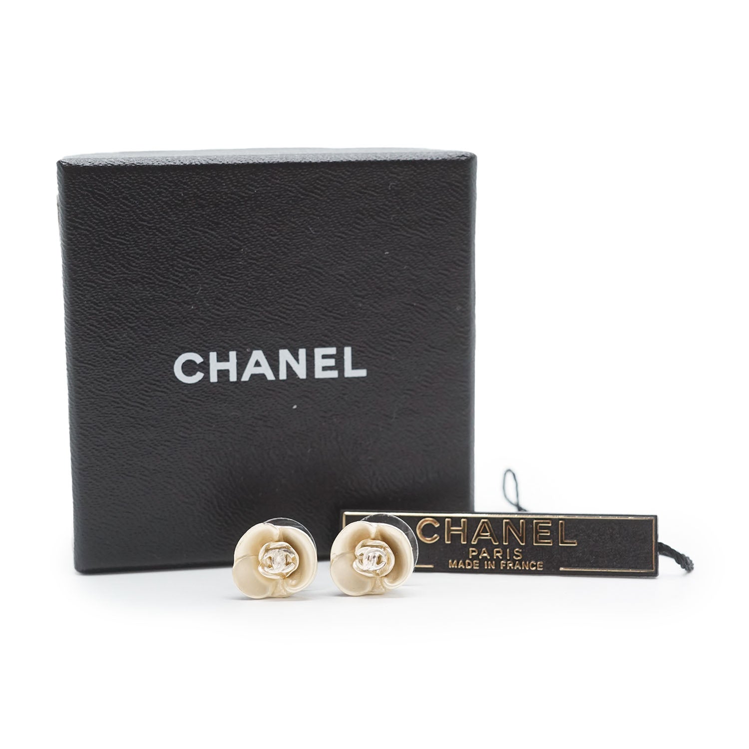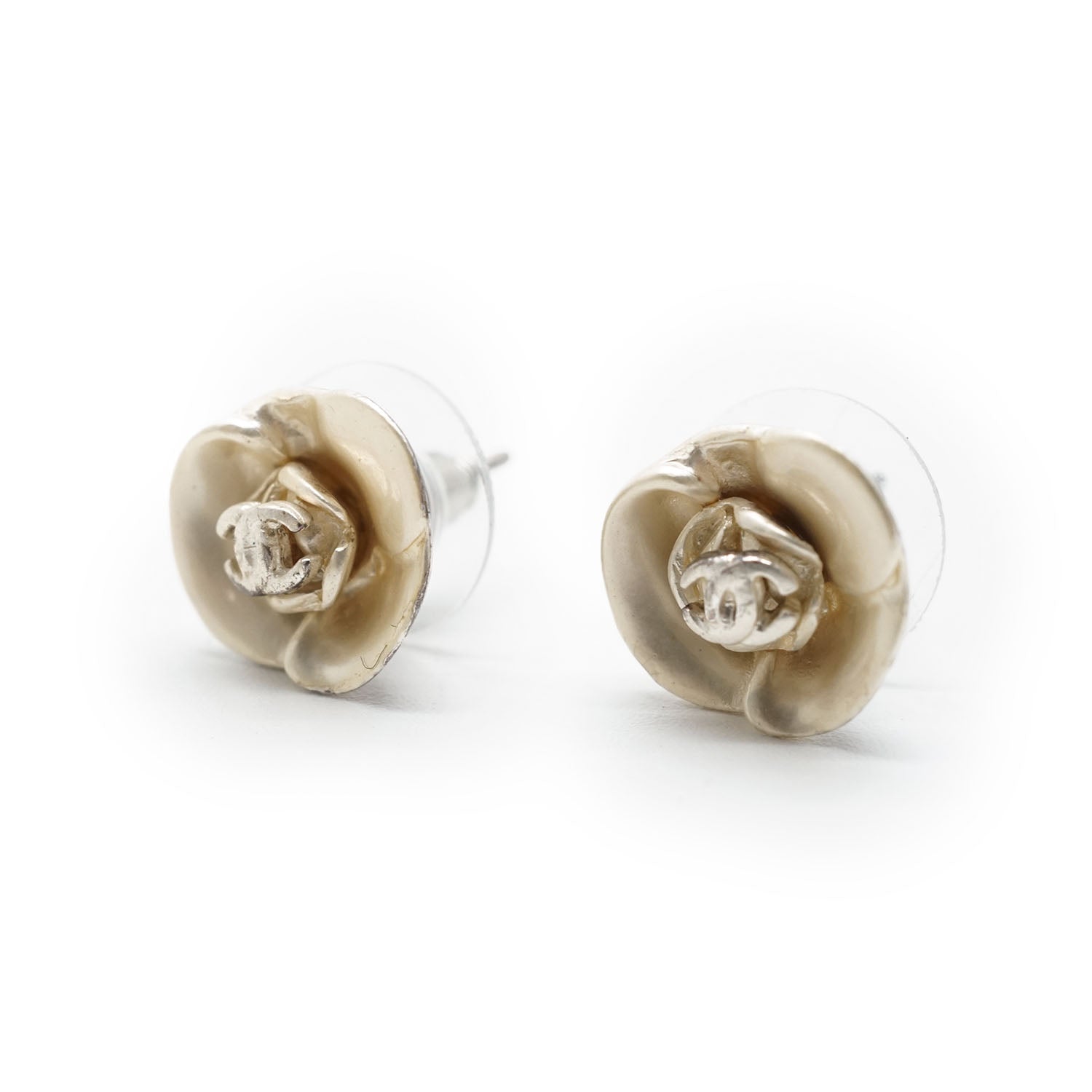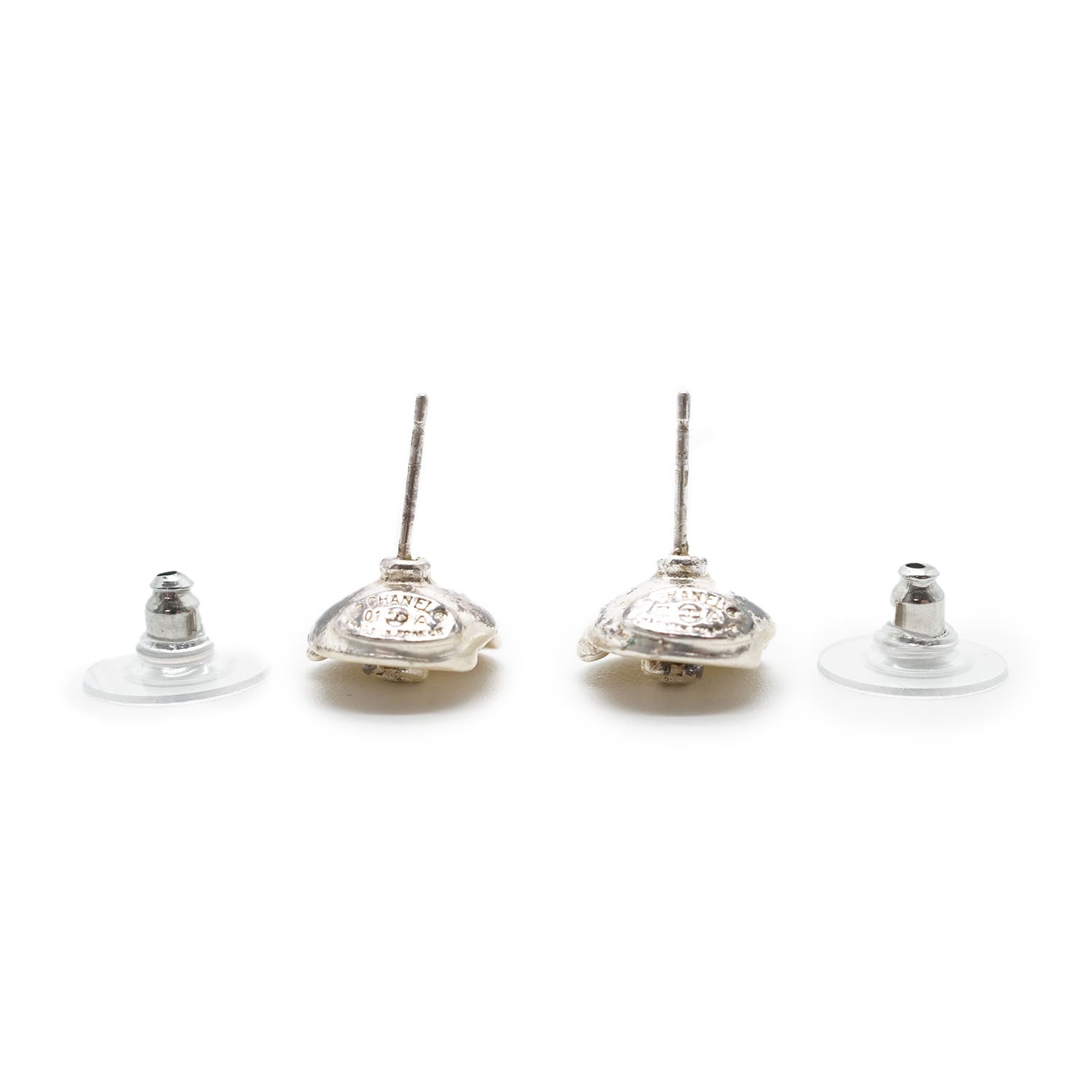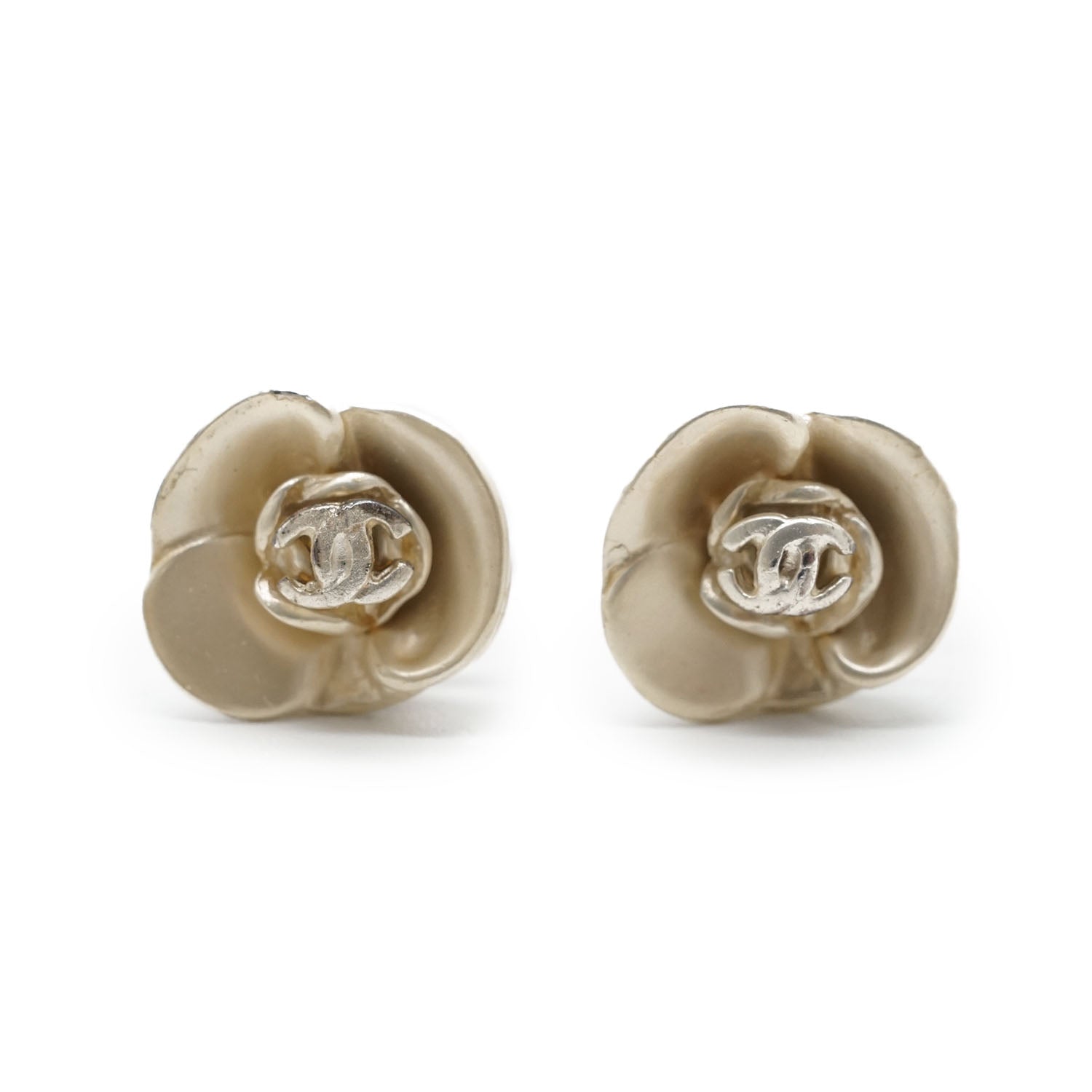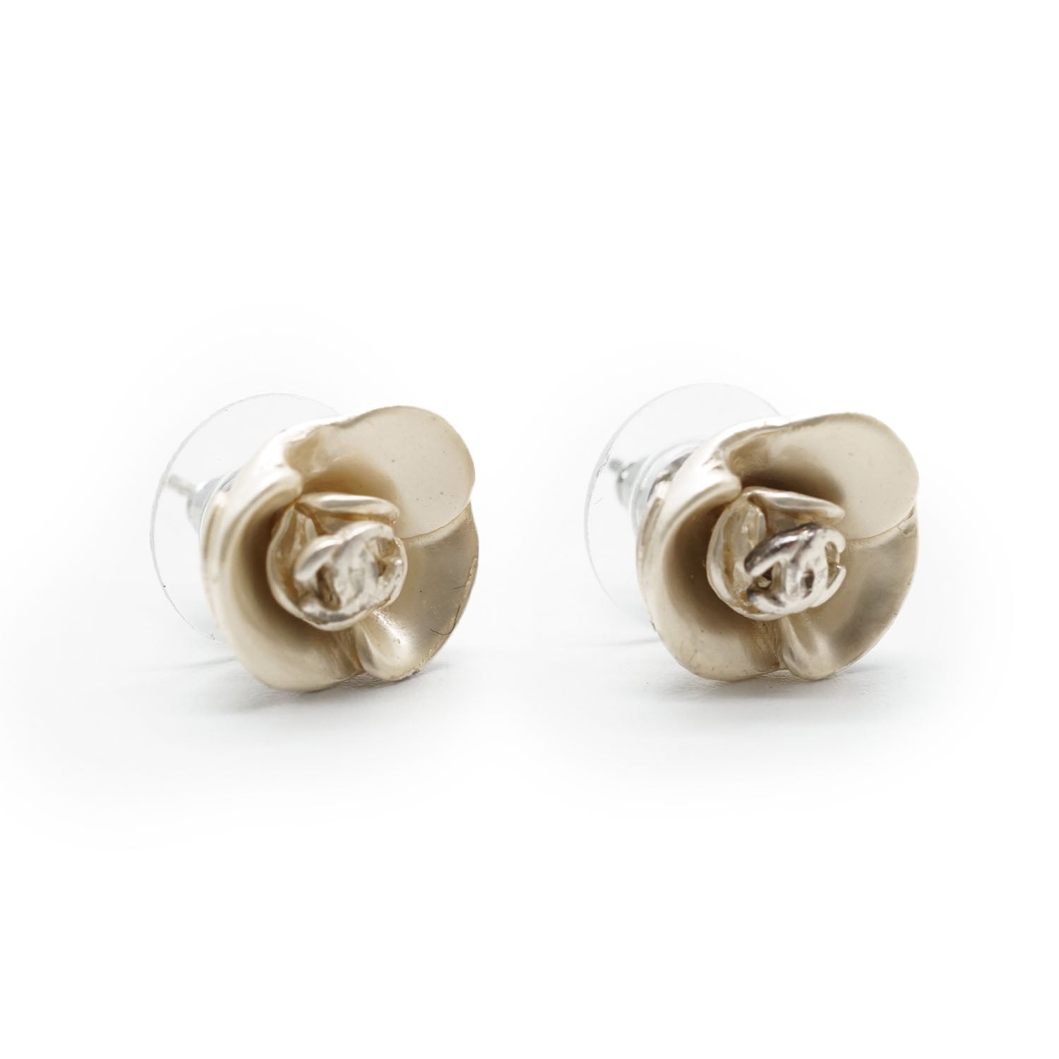 Discoloration: Visible tarnish on the logo and on the back of both earrings