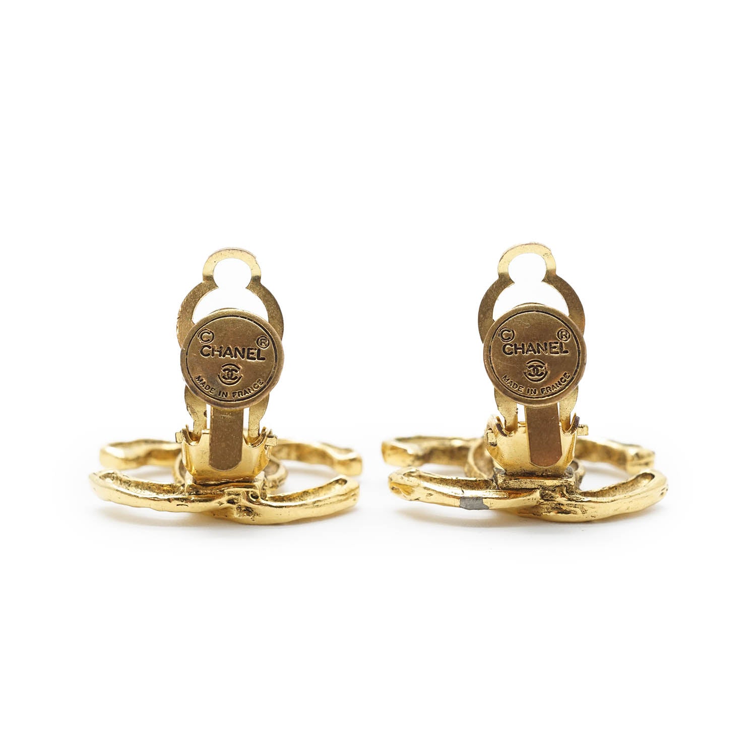 CC Logo Clip Earrings Gold Brass