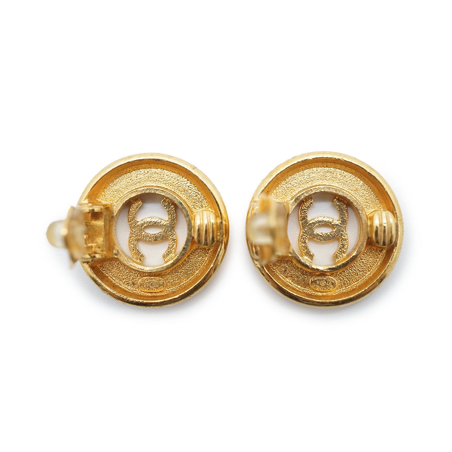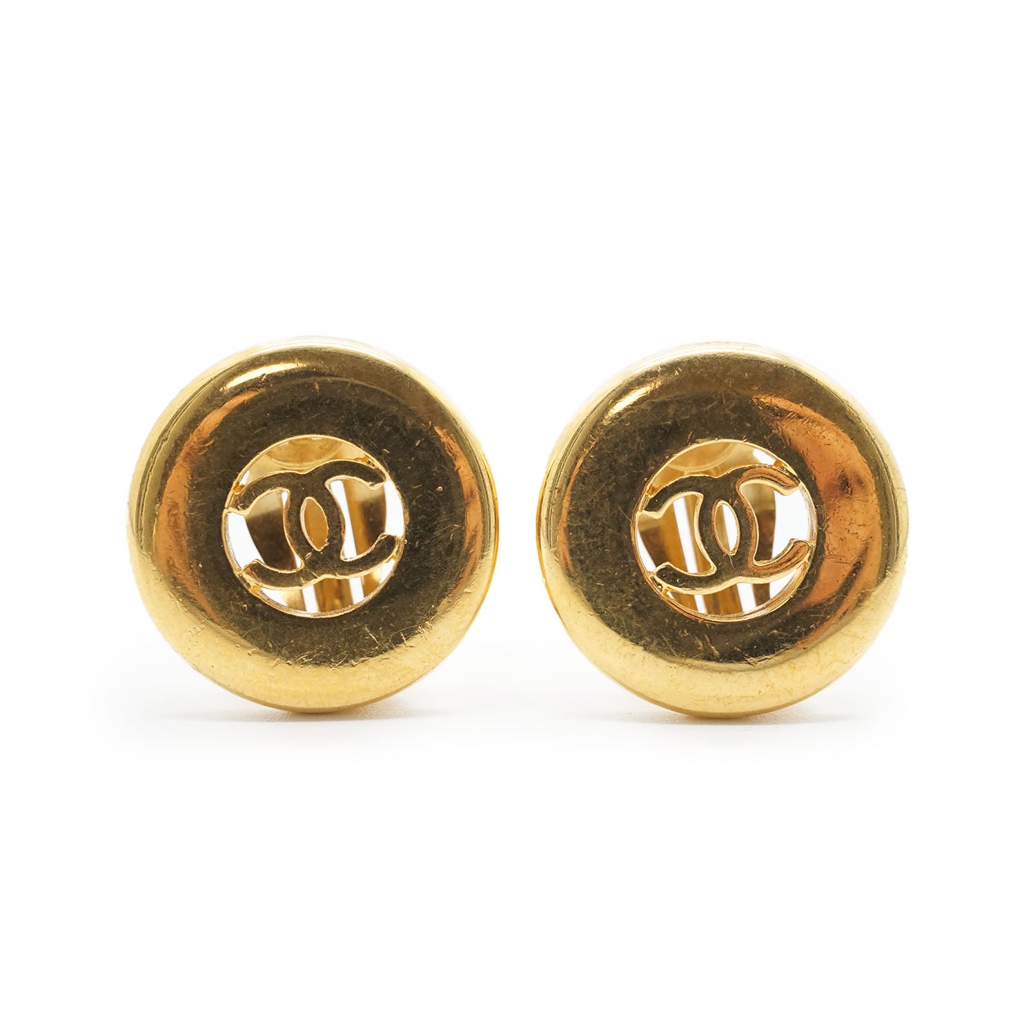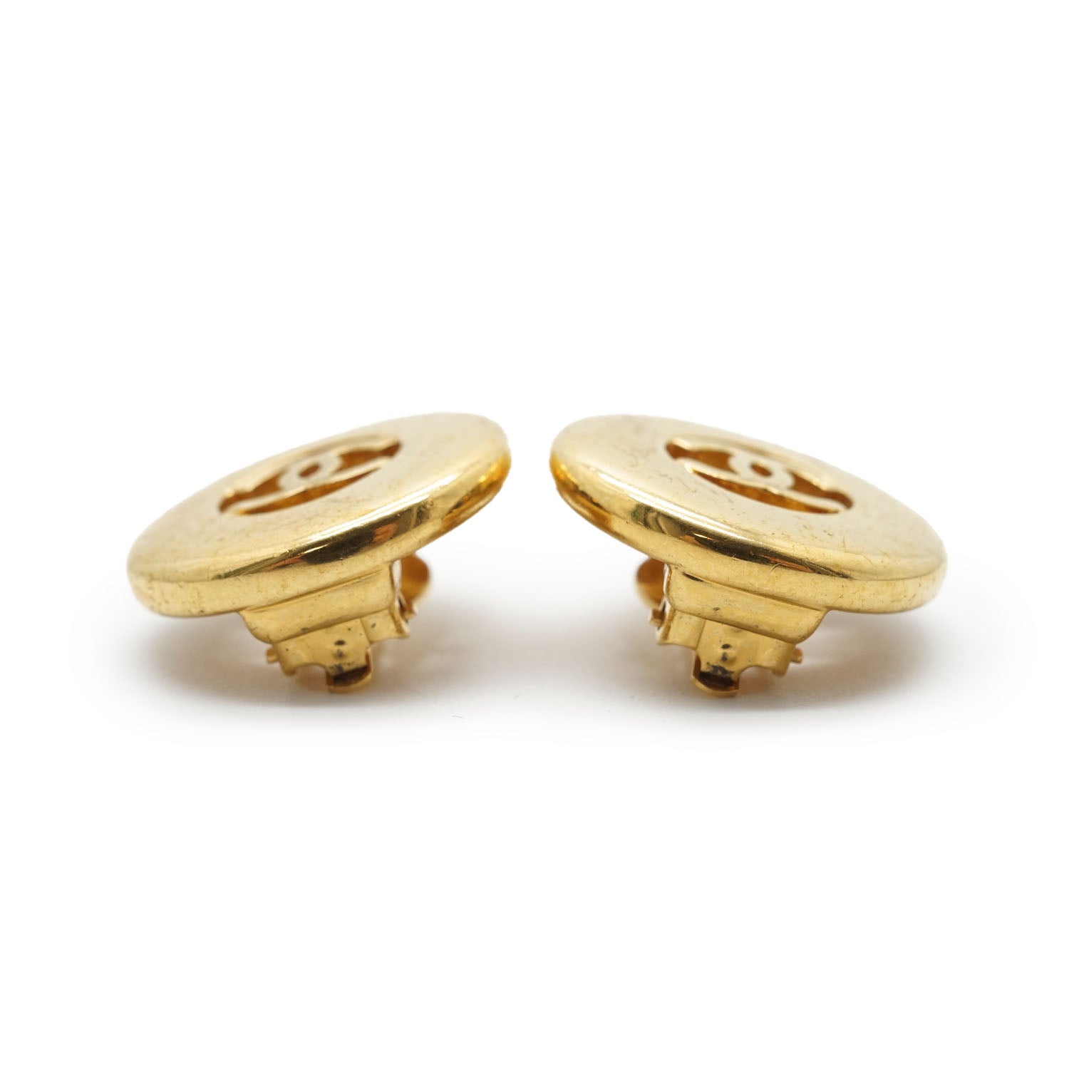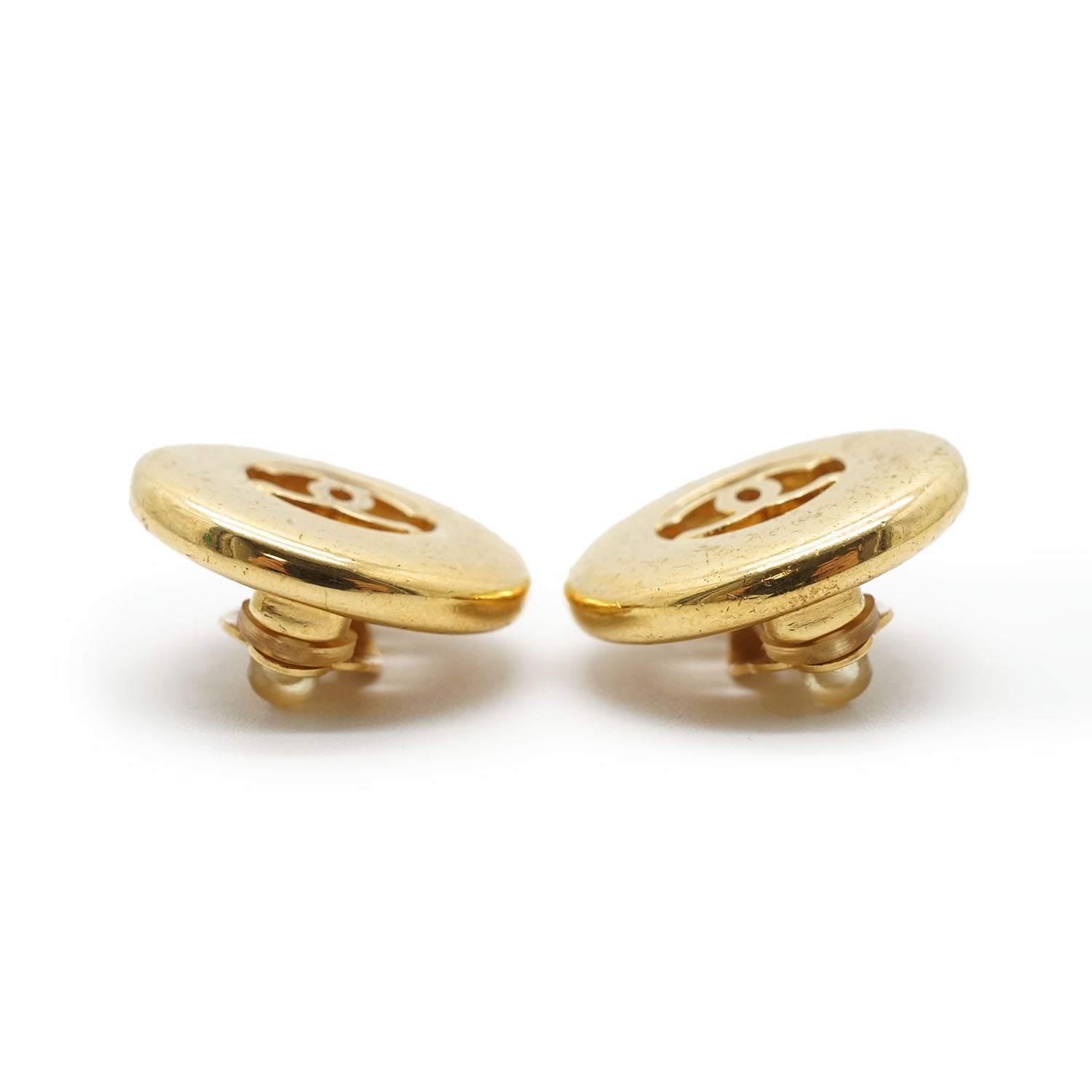 CC Logo Cut-out Round Clip Earrings GP Gold Brass