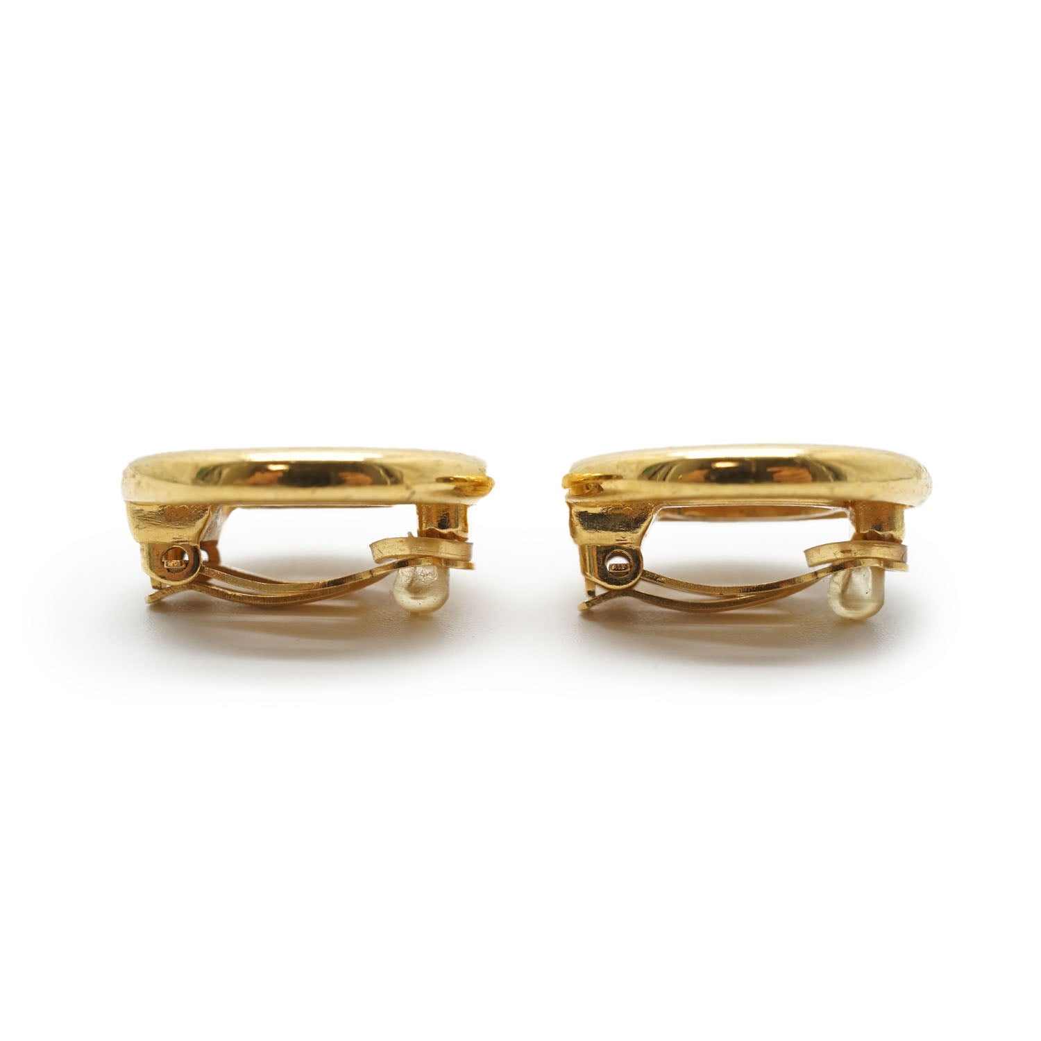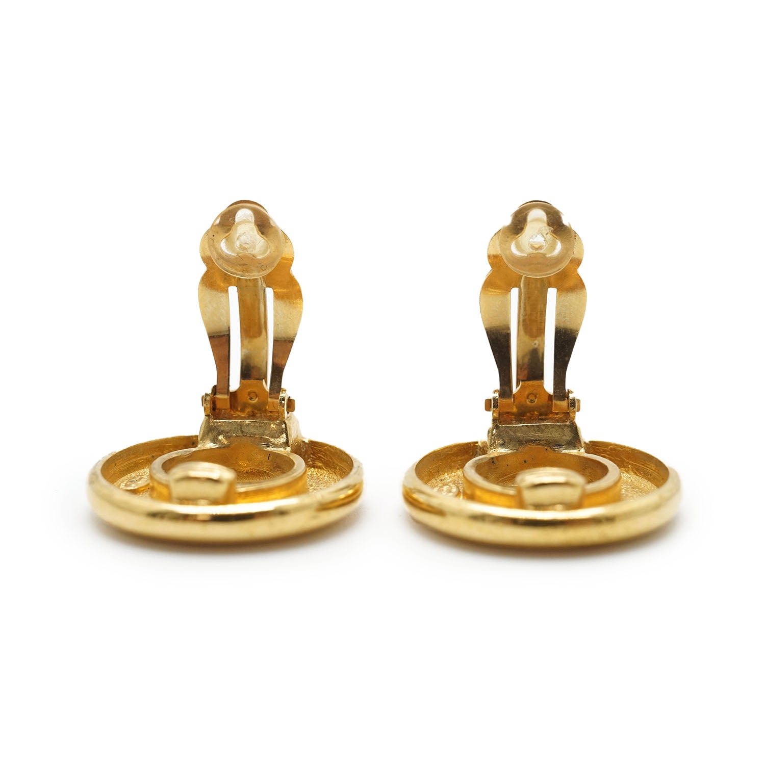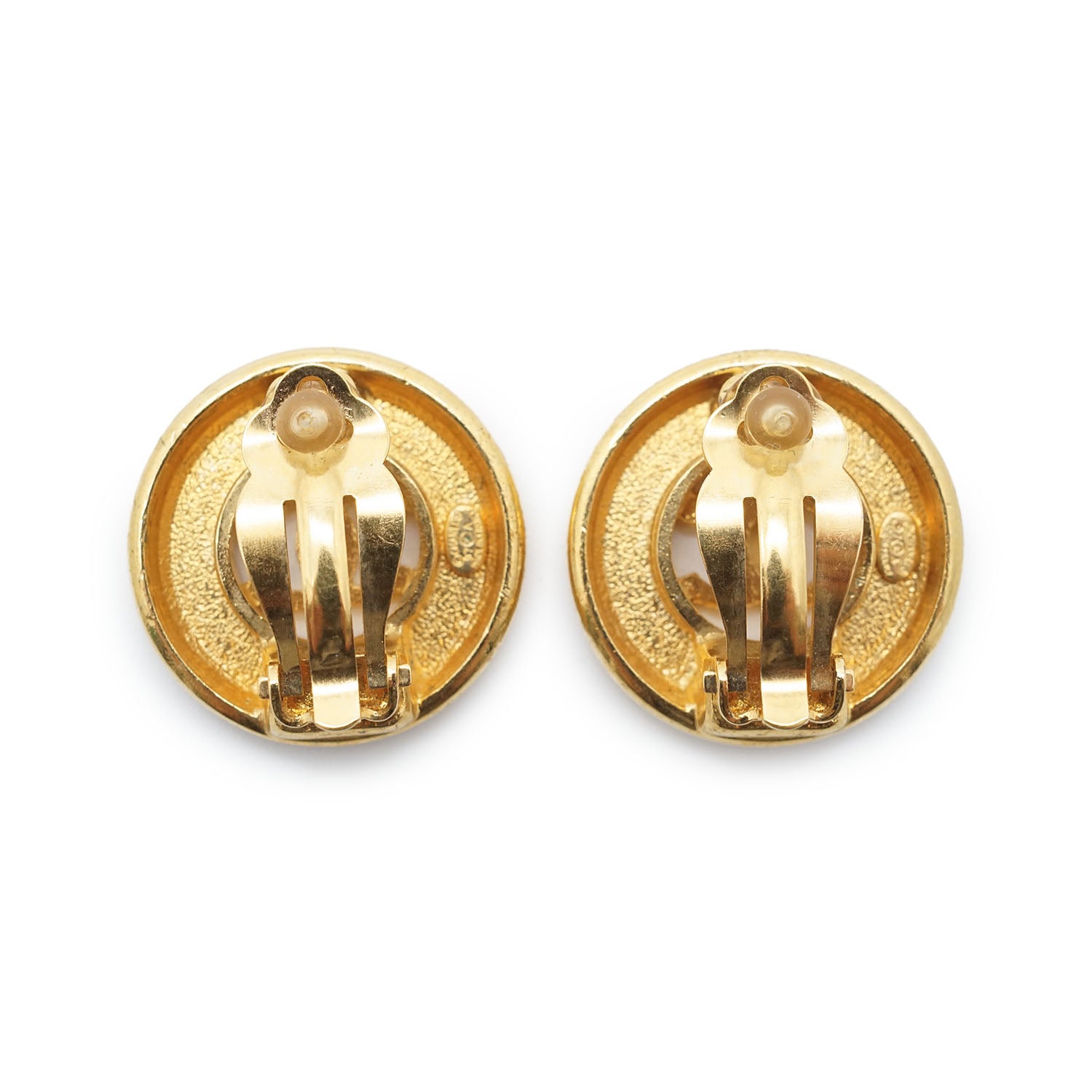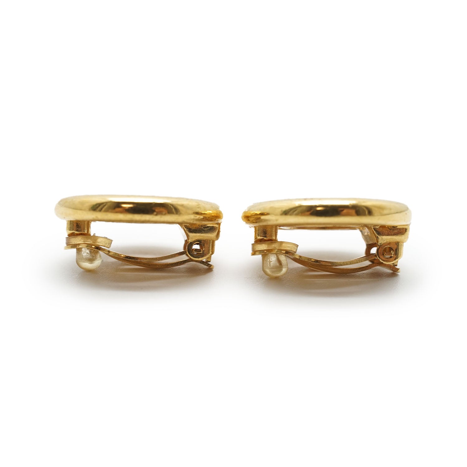 CC Logo Cut-out Round Clip Earrings GP Gold Brass