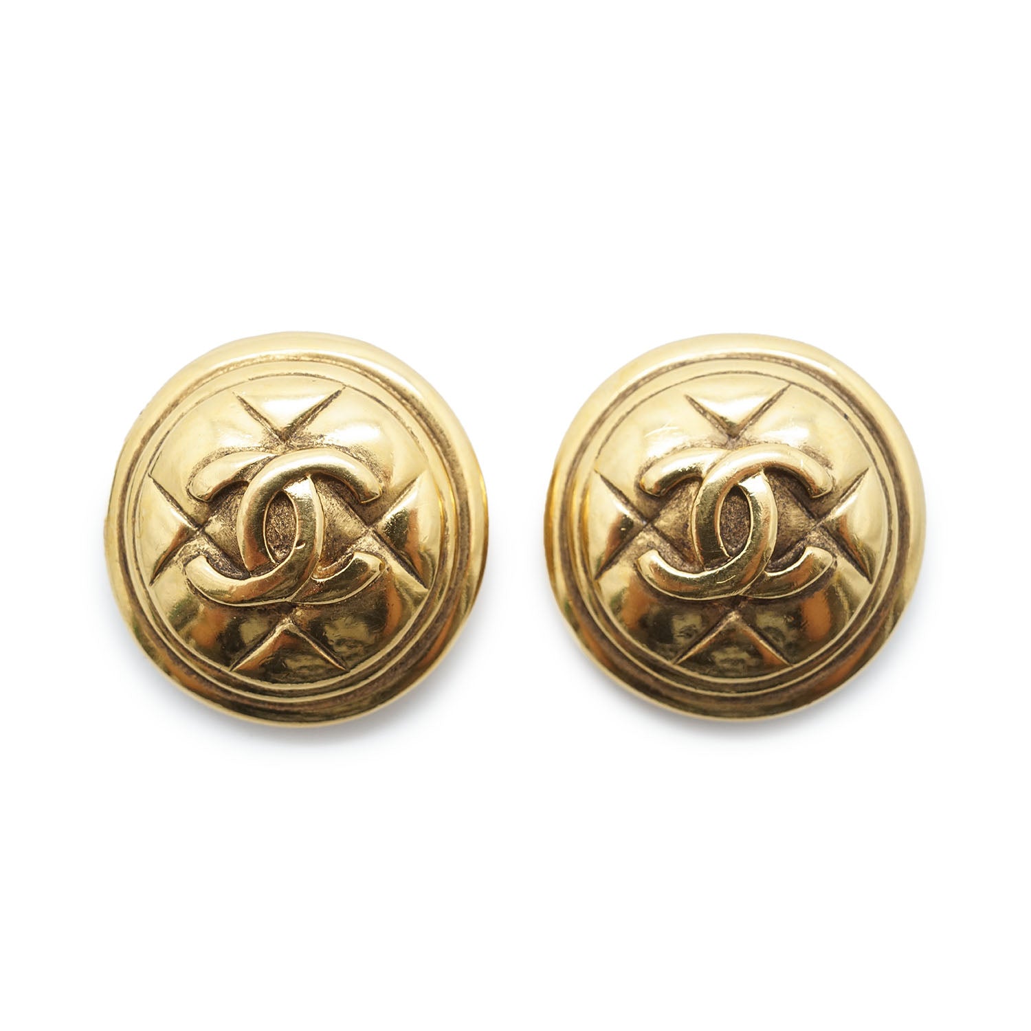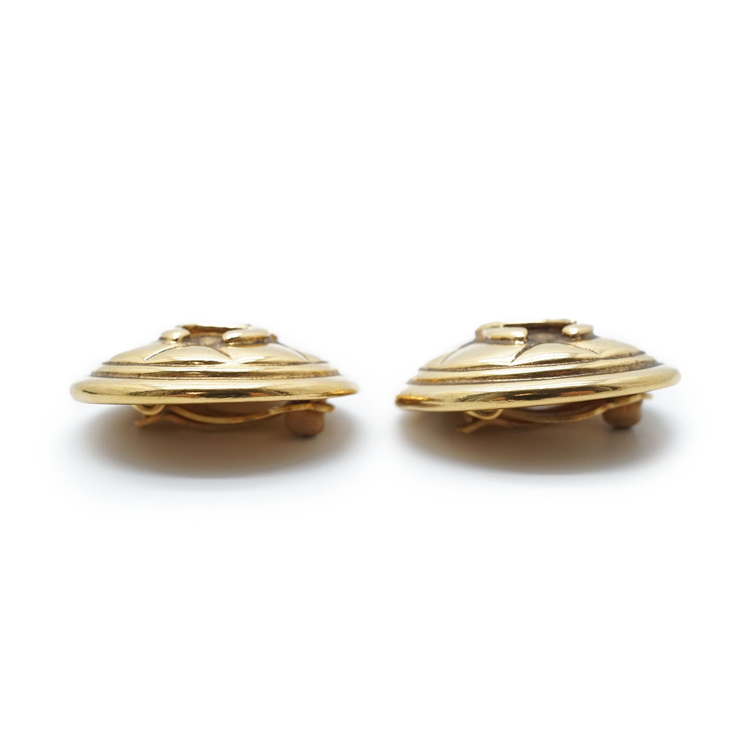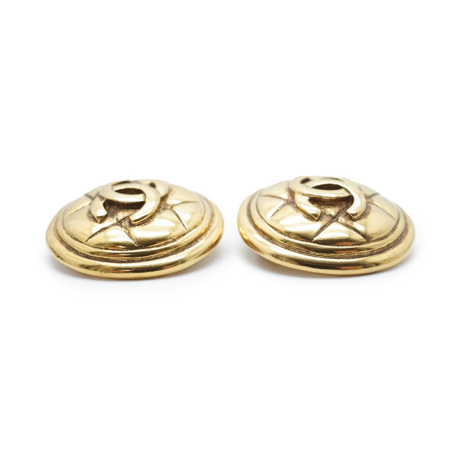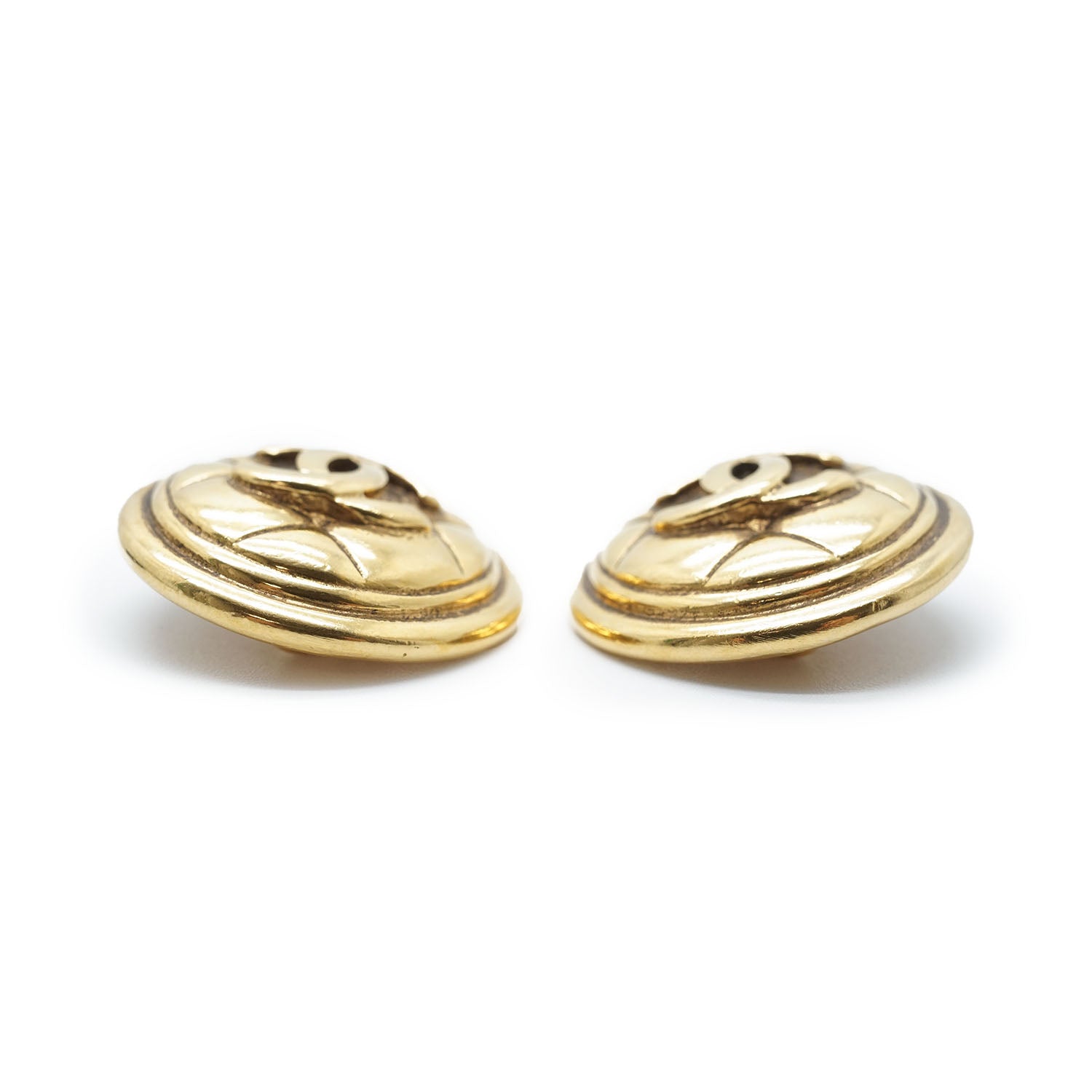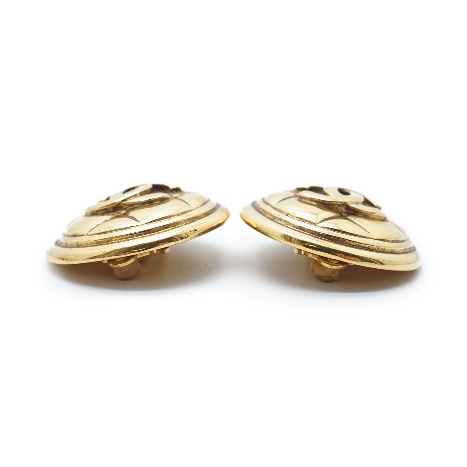 CC Logo Matelasse Button Clip Earrings GP Gold Brass