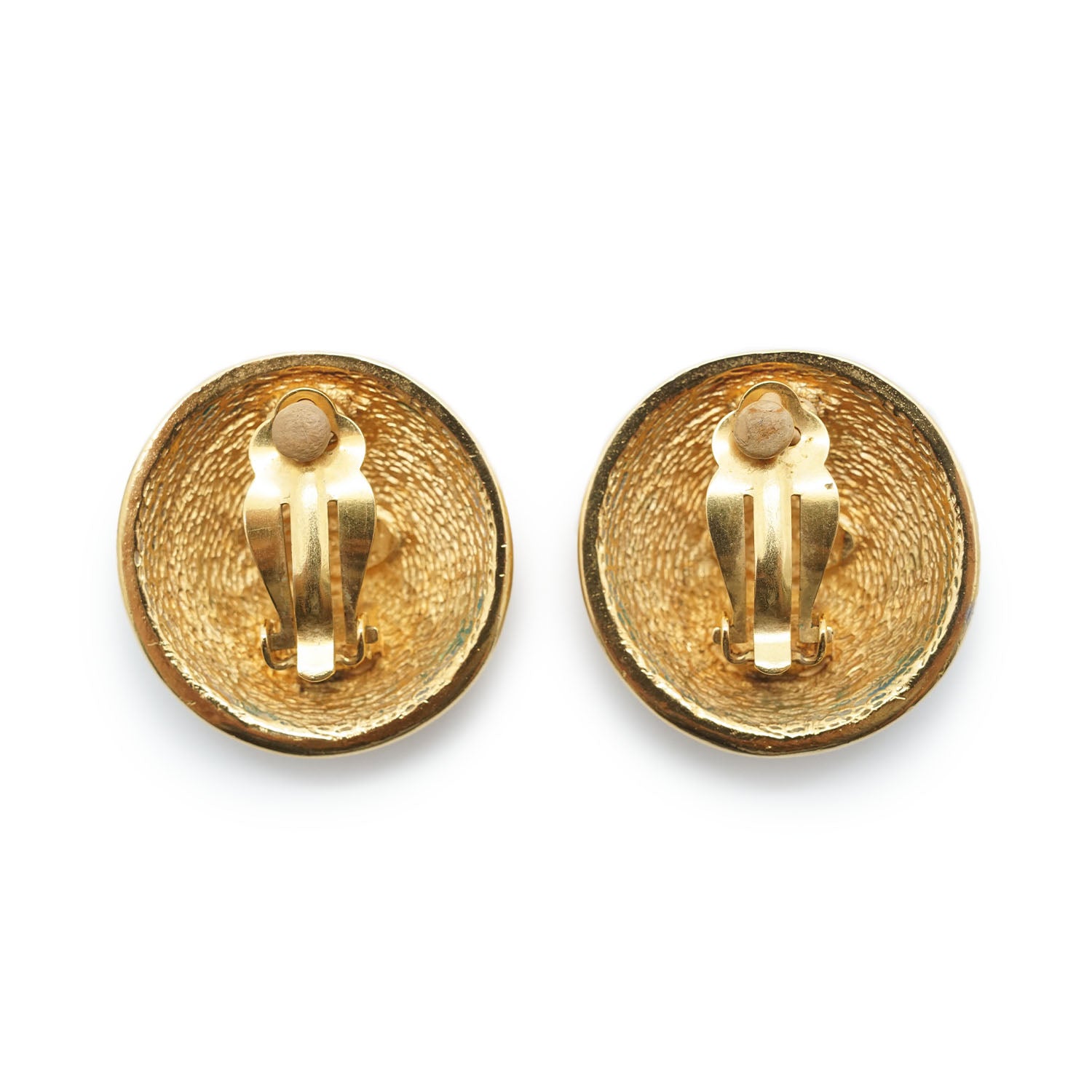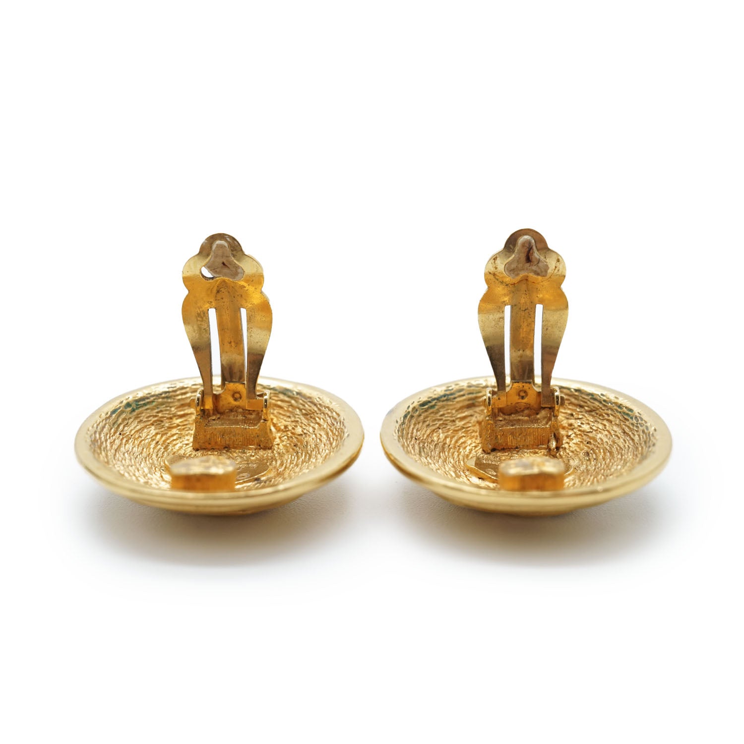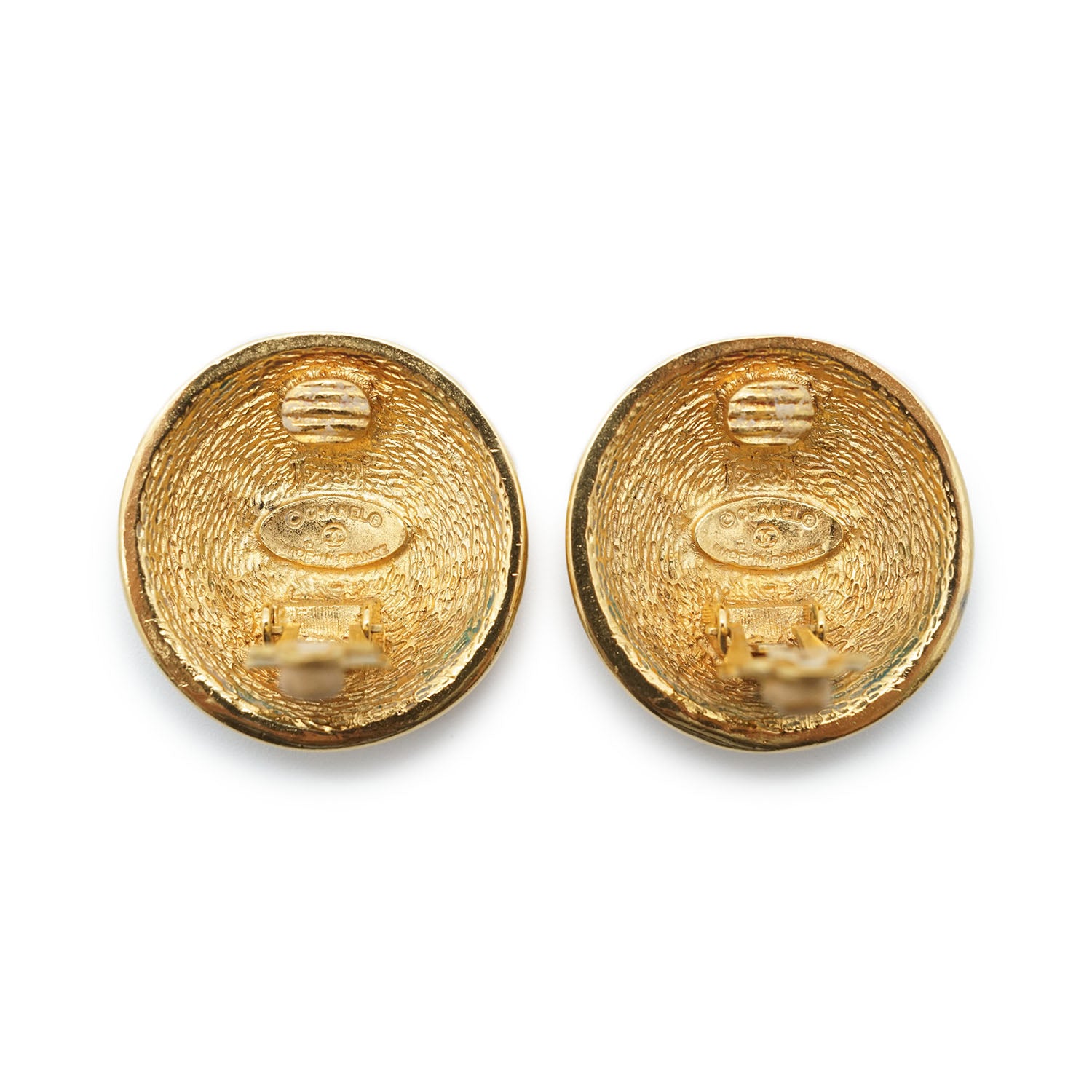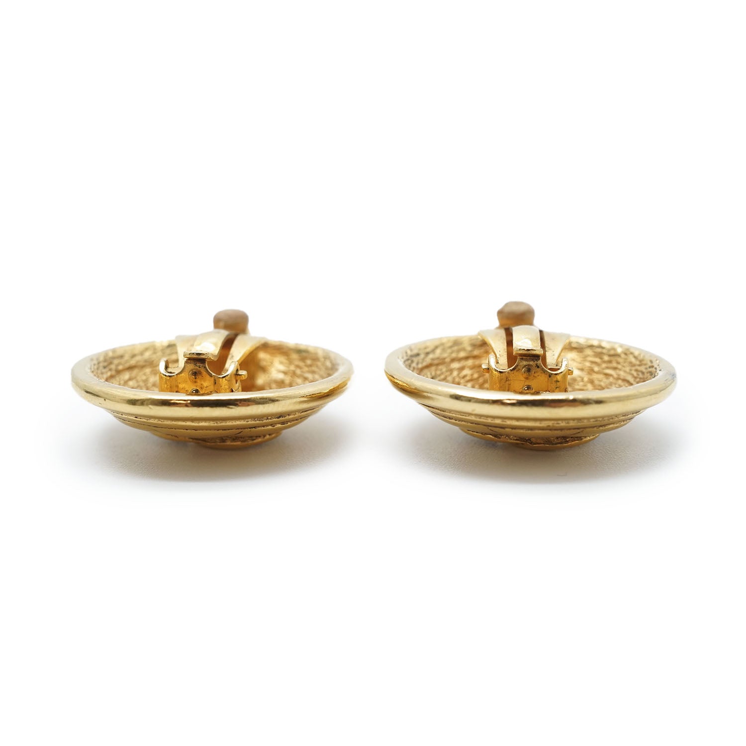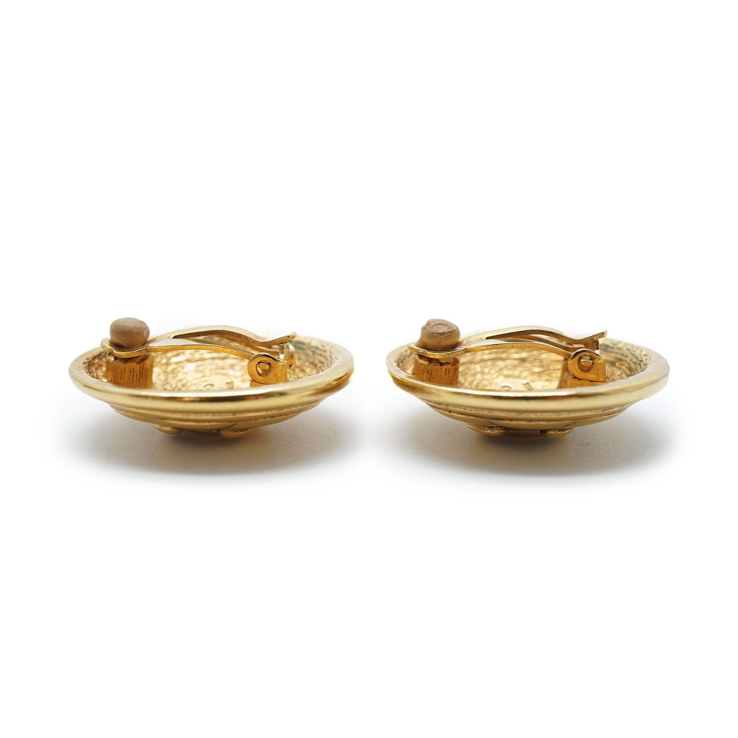 CC Logo Matelasse Button Clip Earrings GP Gold Brass
