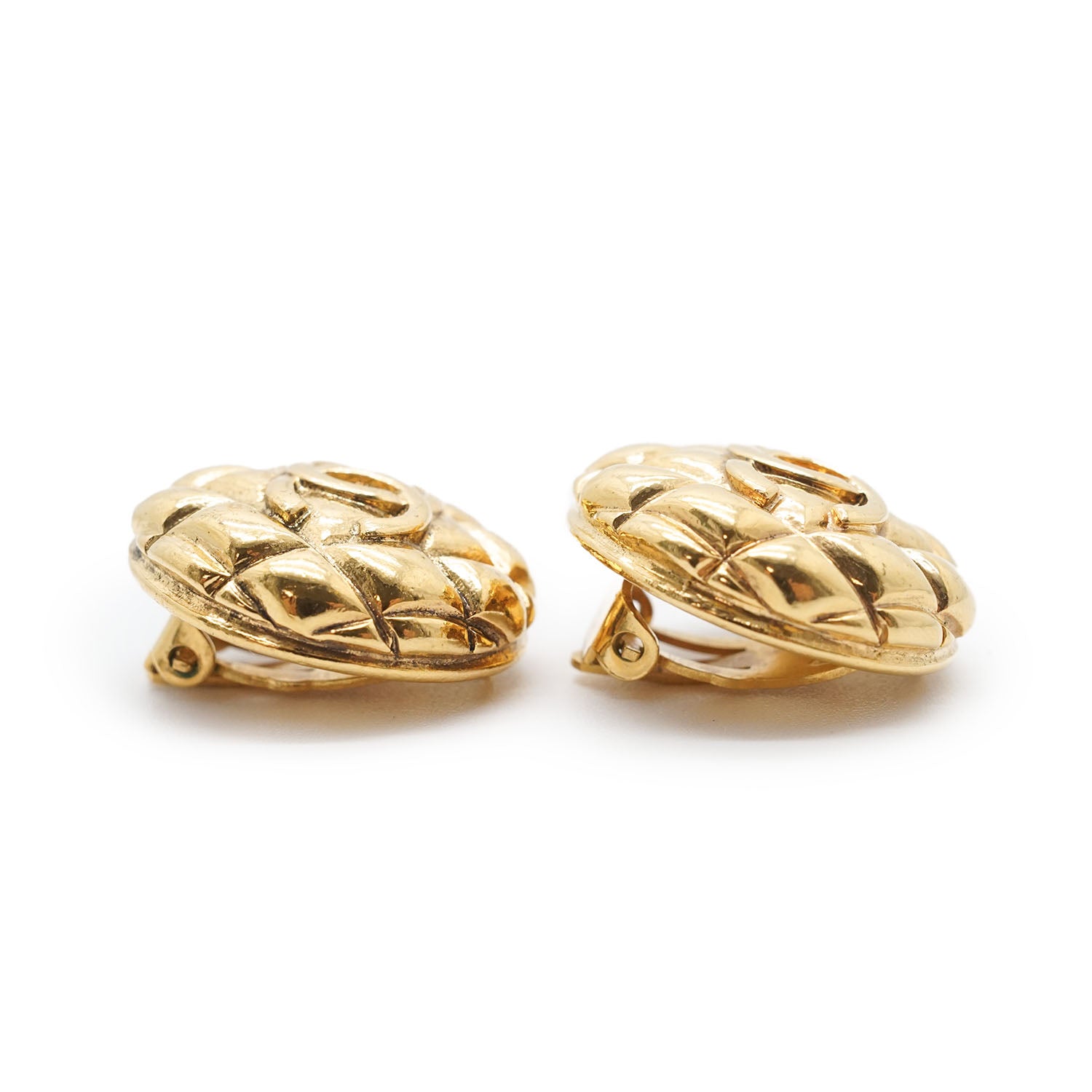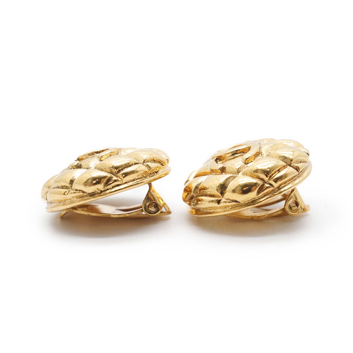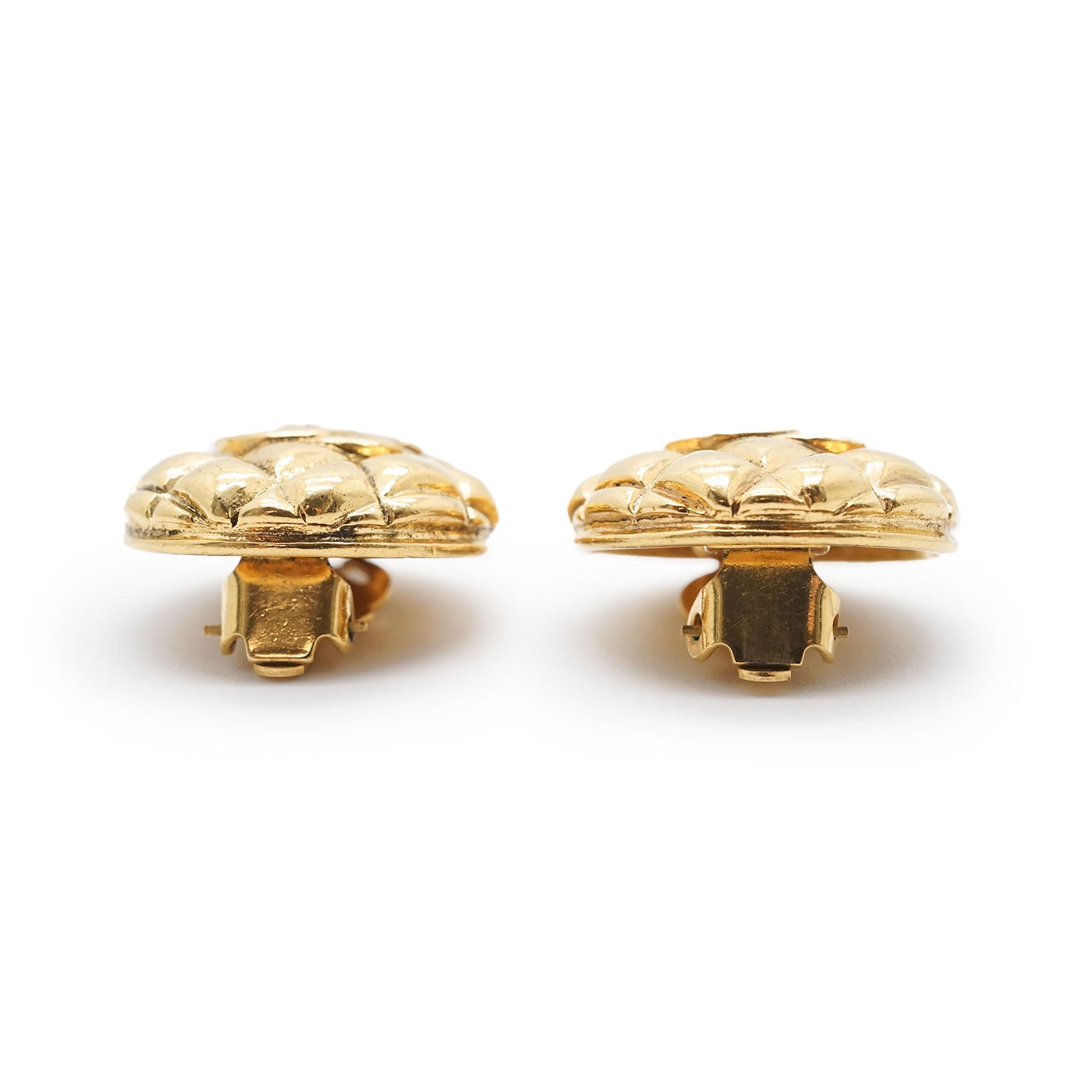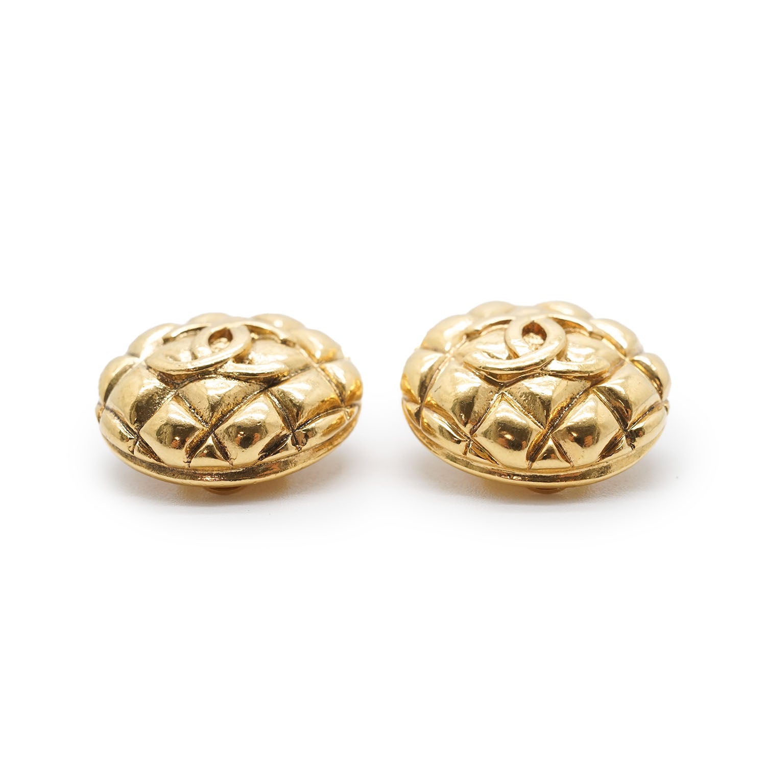 CC Logo Matelasse Button Clip Earrings GP Gold Brass