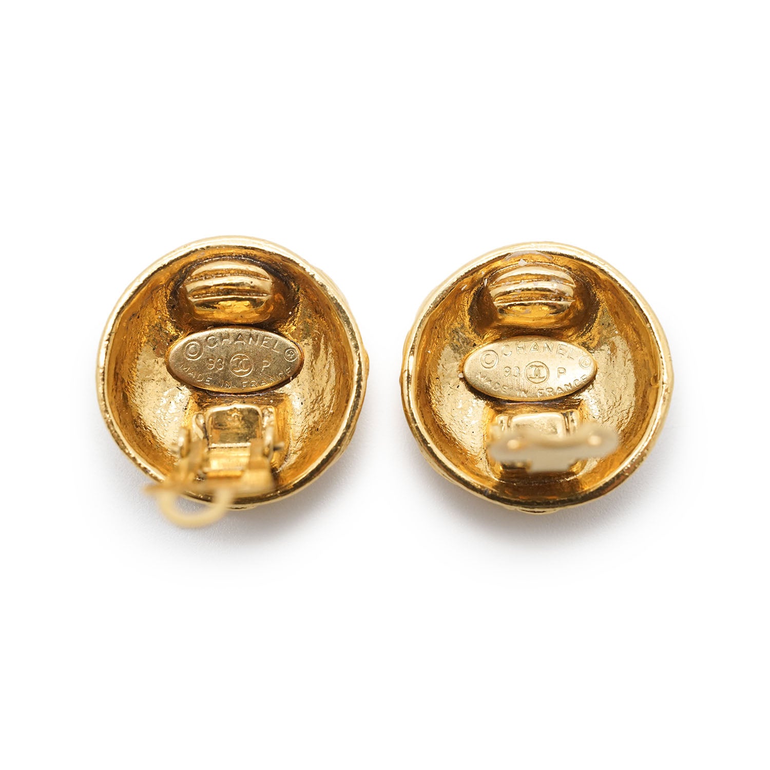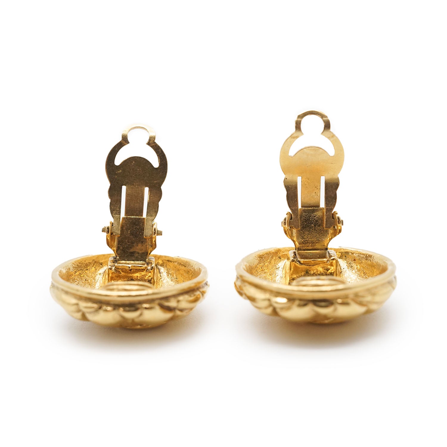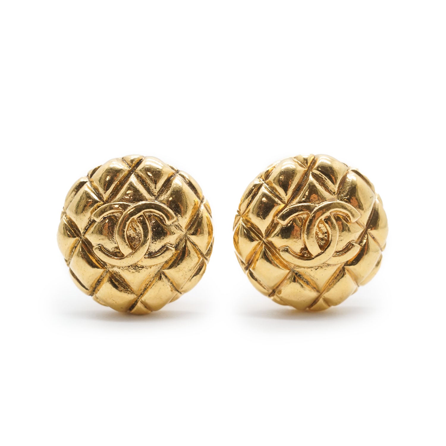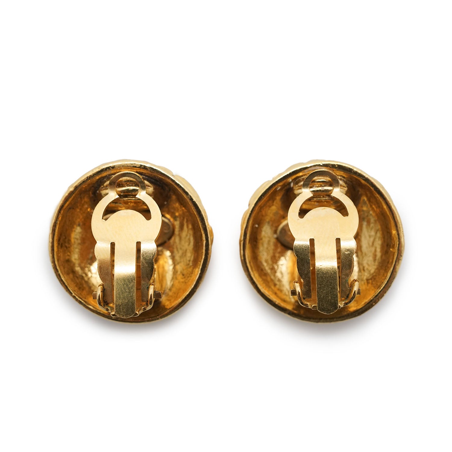 CC Logo Matelasse Button Clip Earrings GP Gold Brass