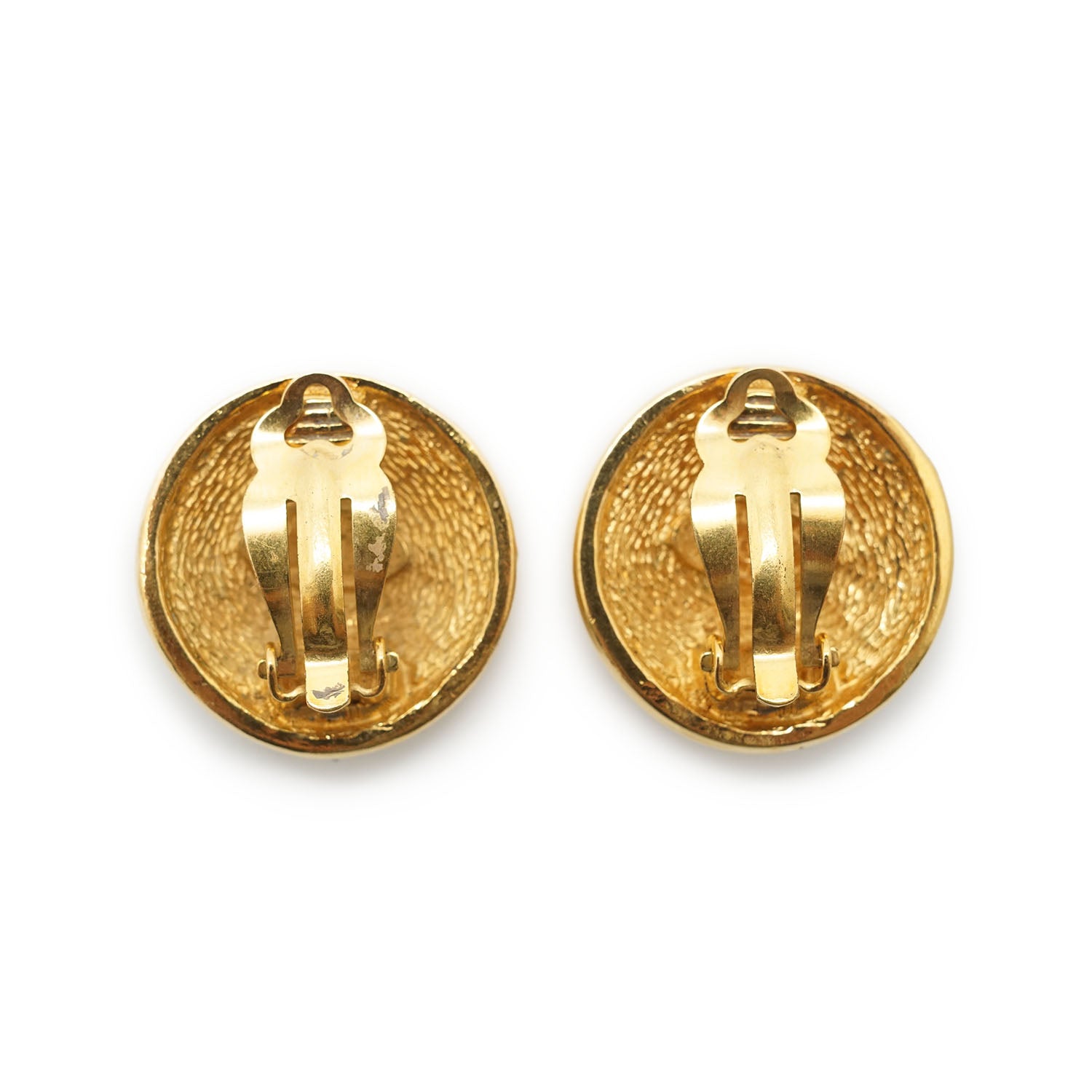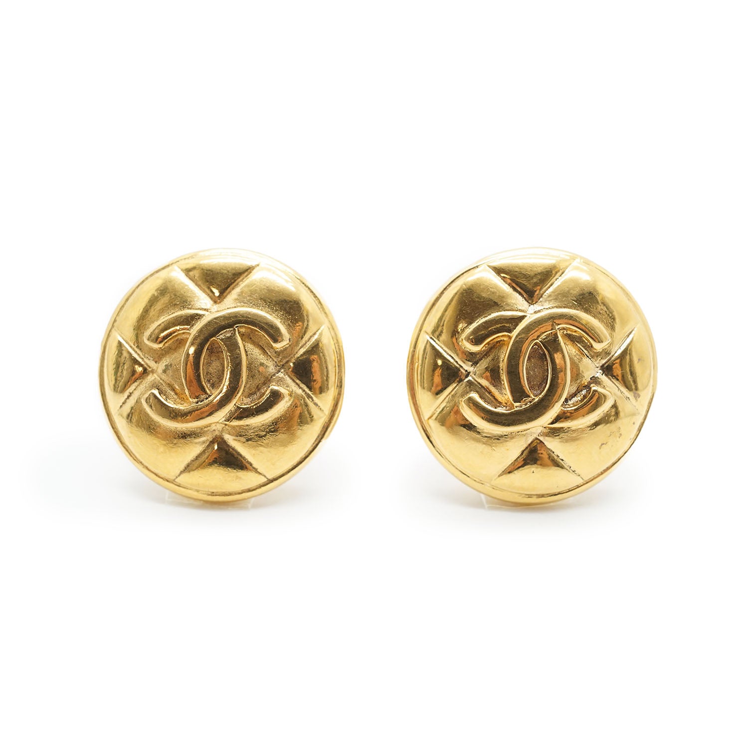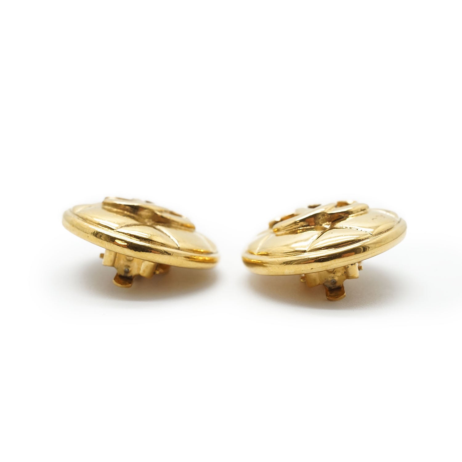 CC Logo Matelasse Button Clip Earrings GP Gold Brass