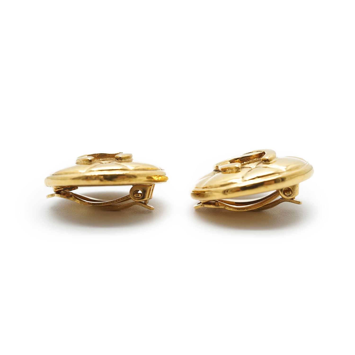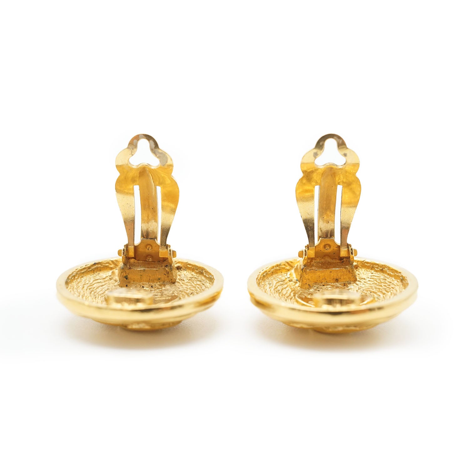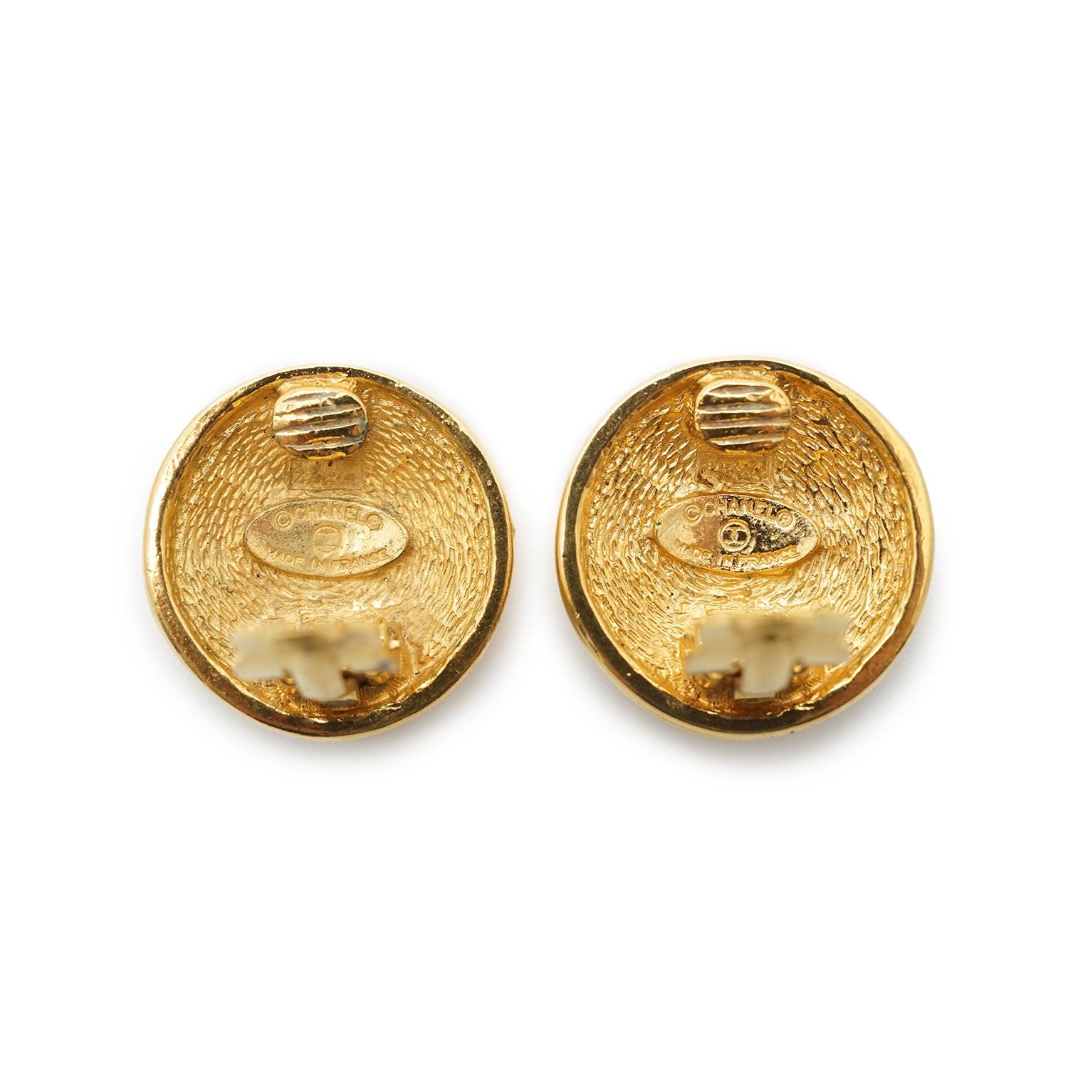 CC Logo Matelasse Button Clip Earrings GP Gold Brass