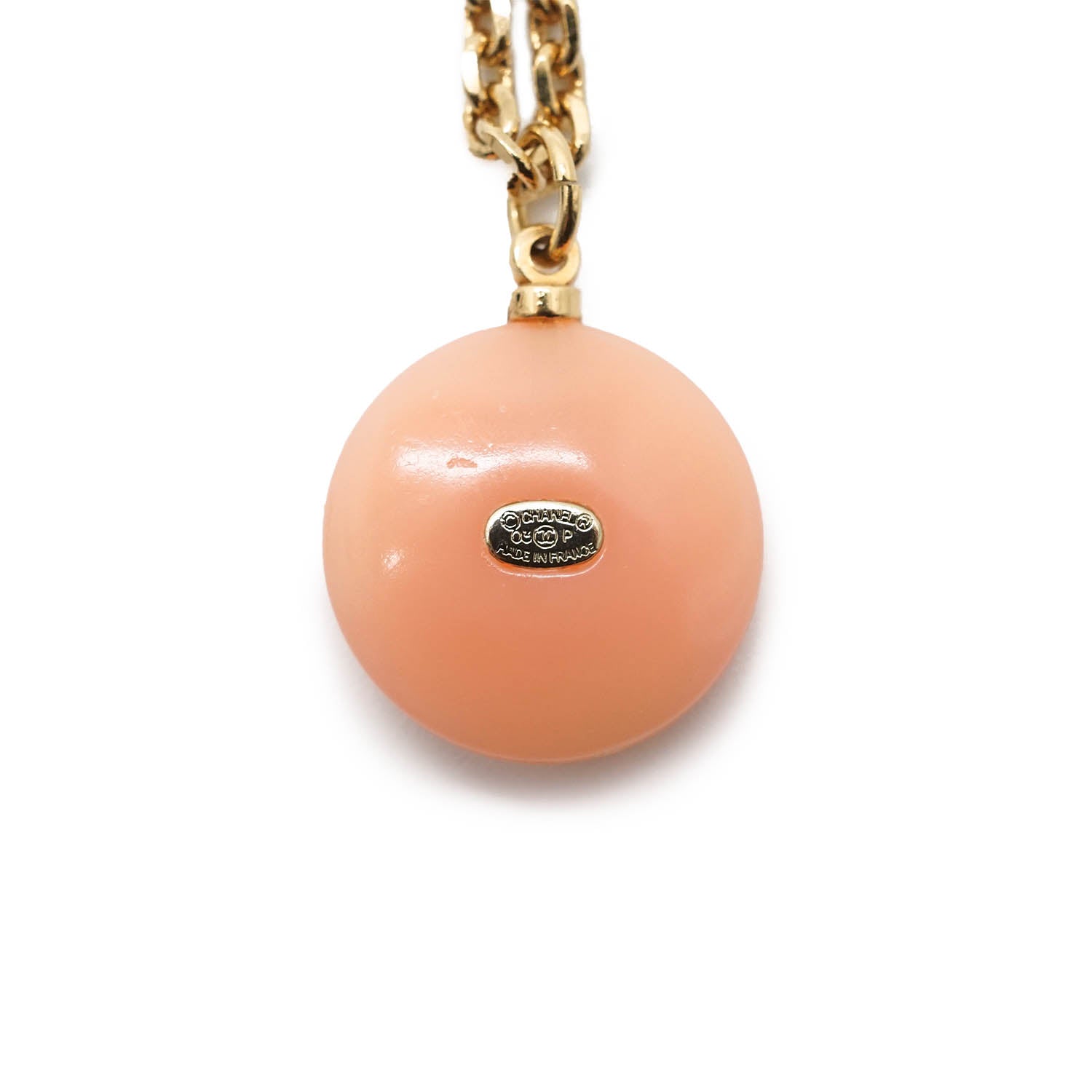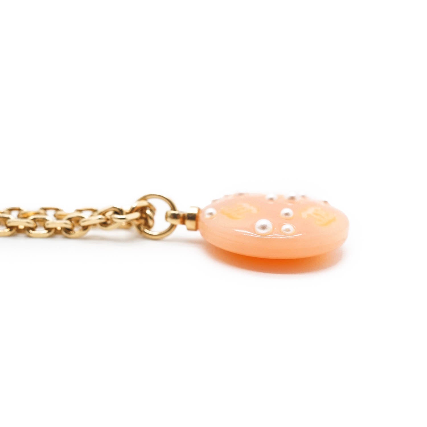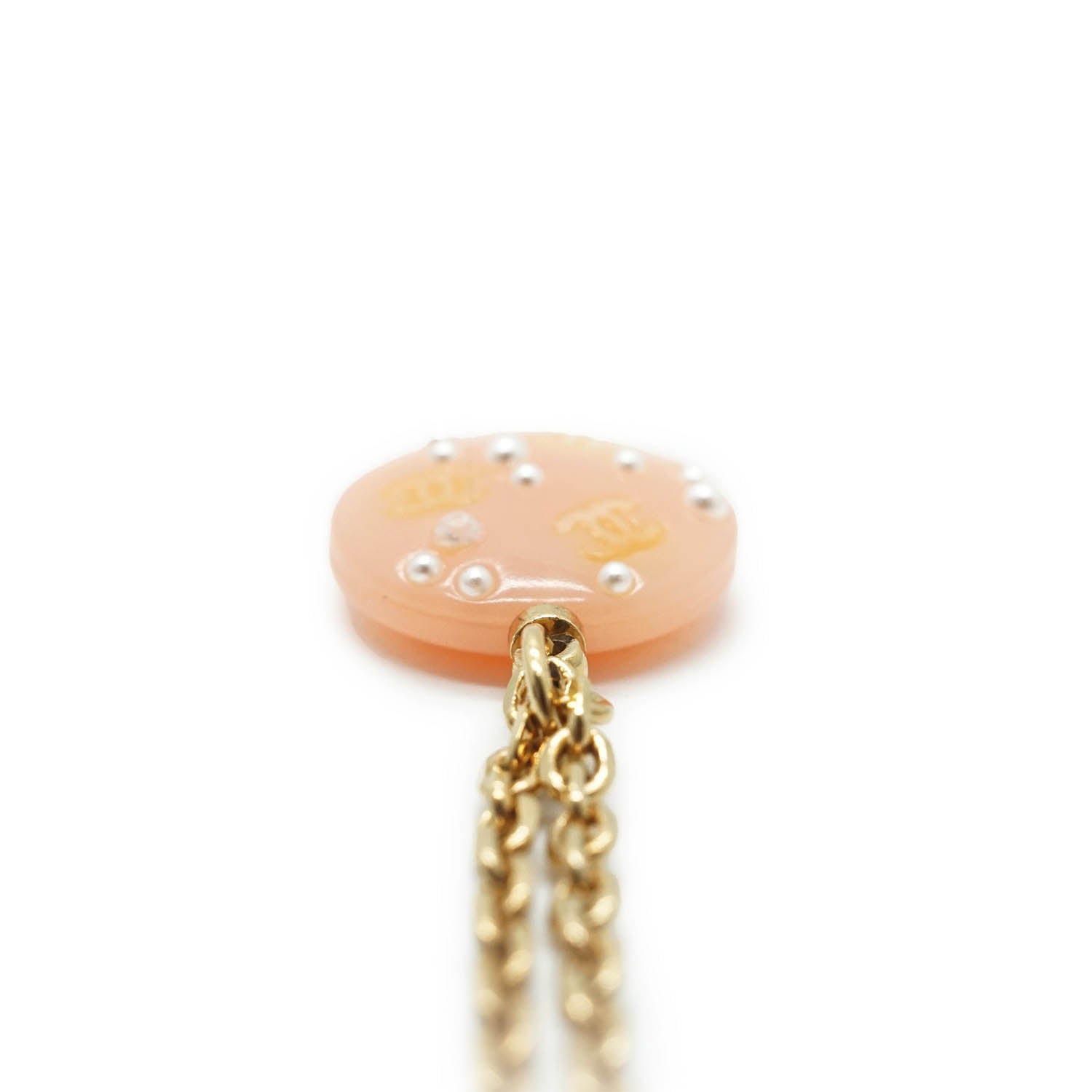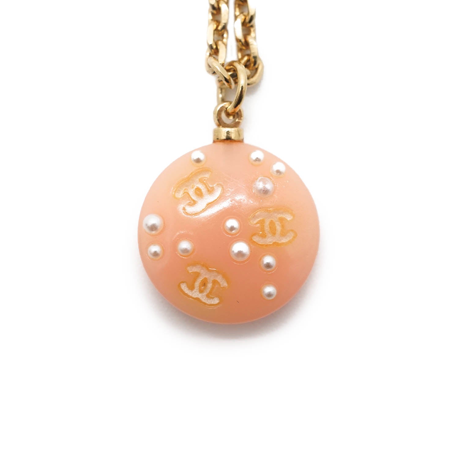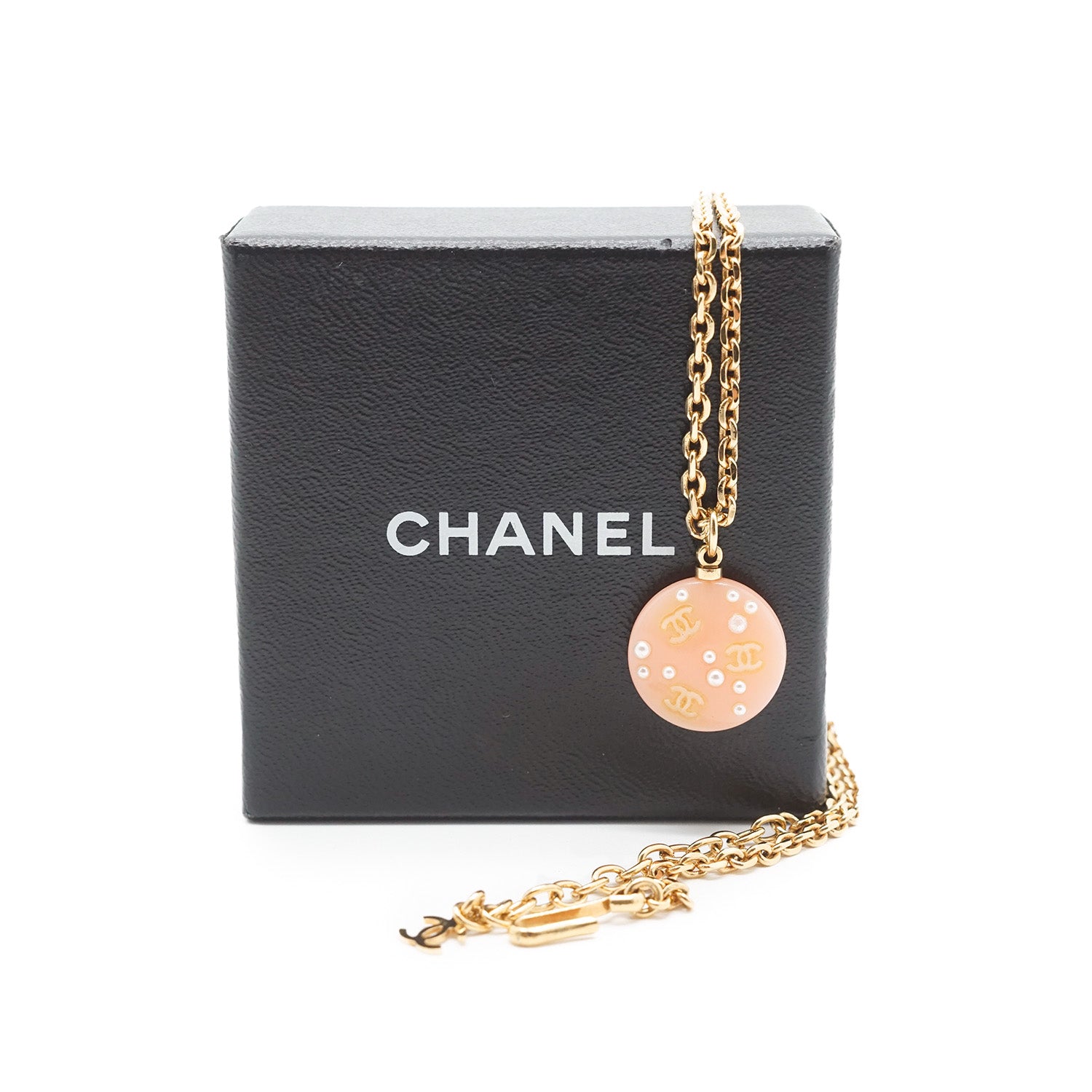CC Logo Pearl Round Pendant Chain Necklace Gold Brass