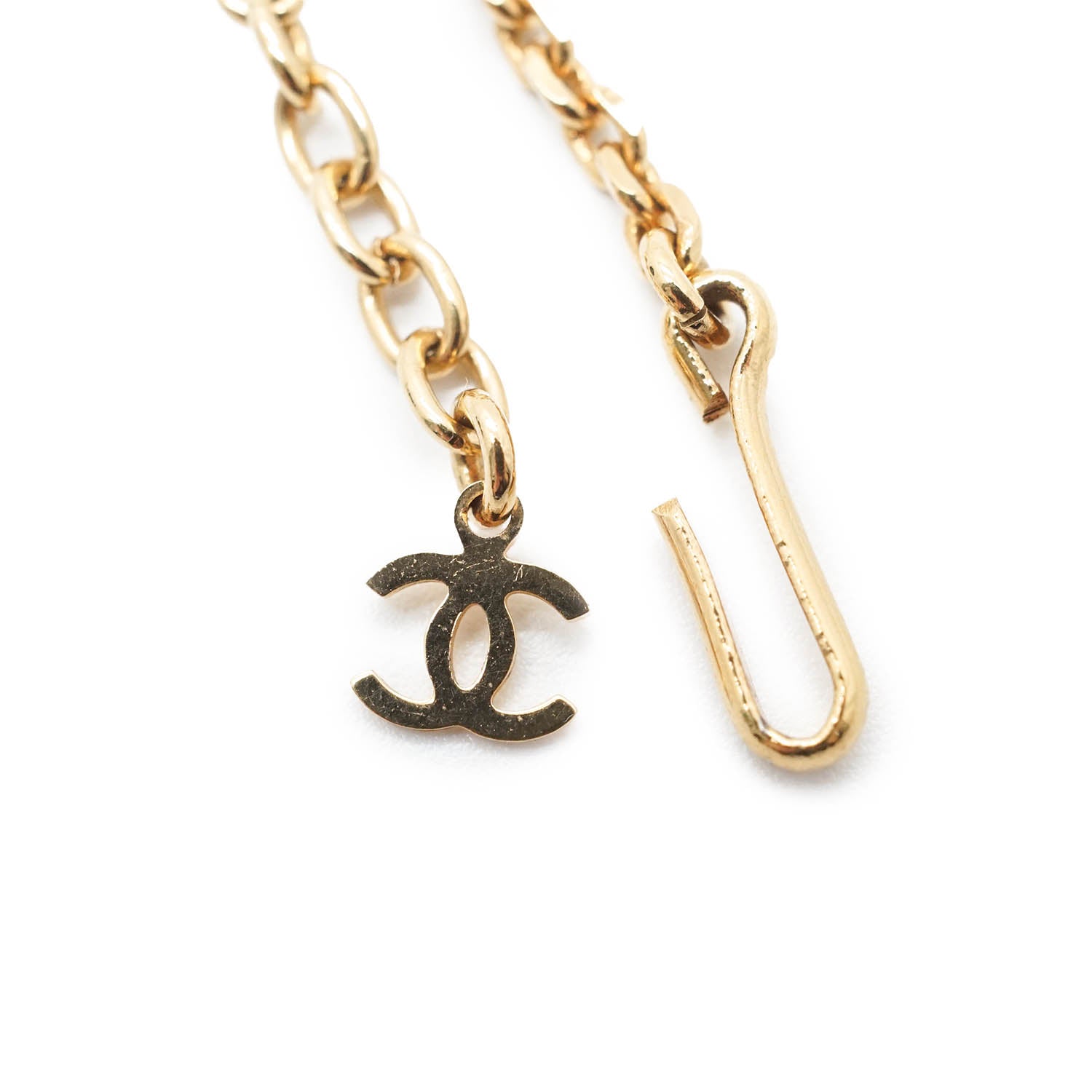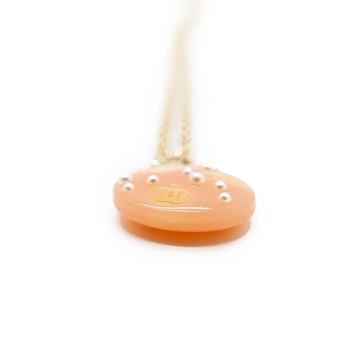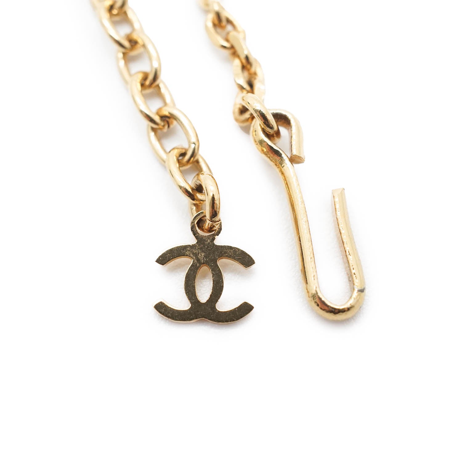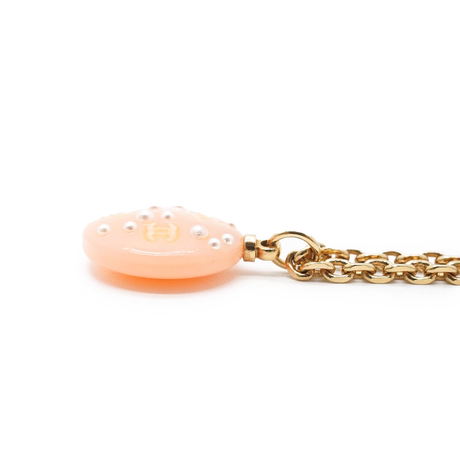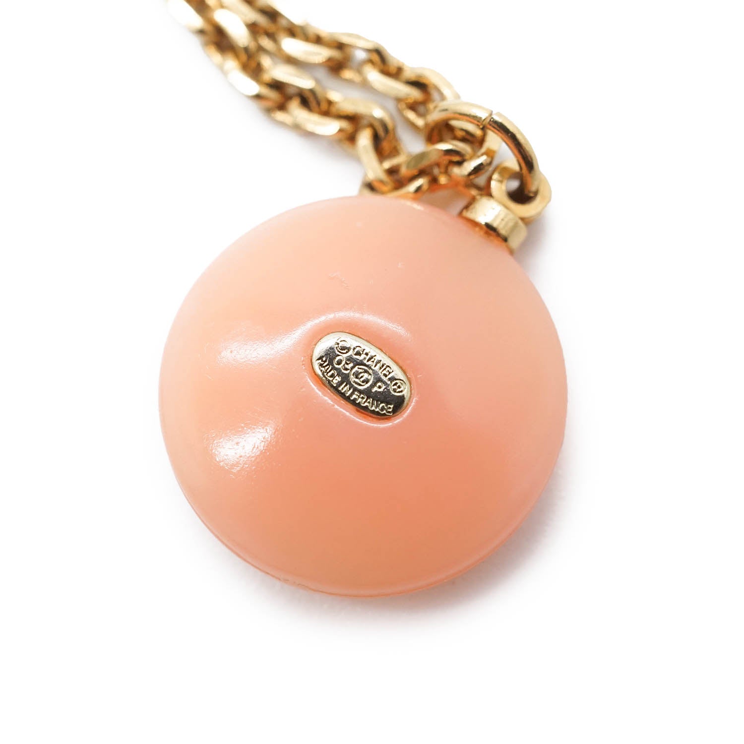 CC Logo Pearl Round Pendant Chain Necklace Gold Brass