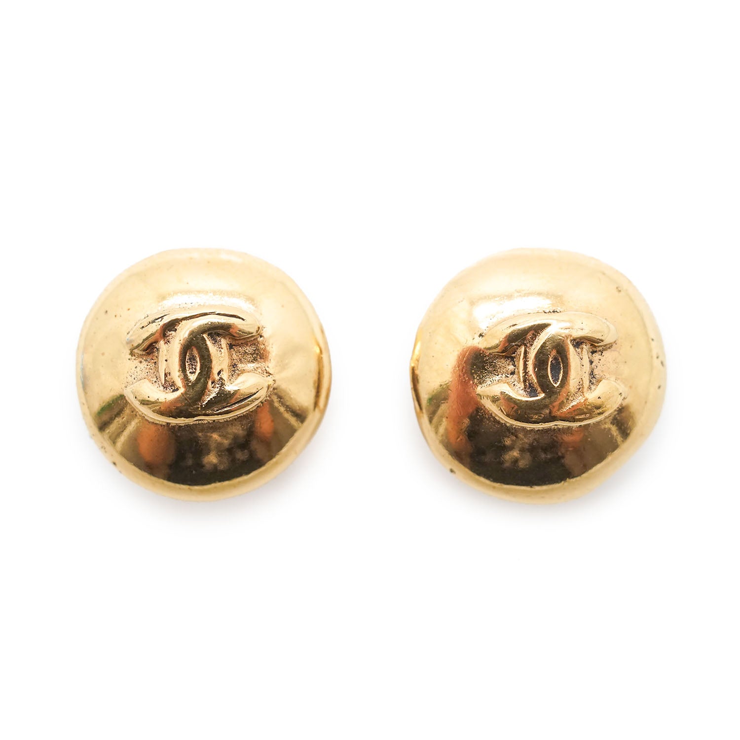 CC Logo Round Clip-On Earrings GP Gold Brass