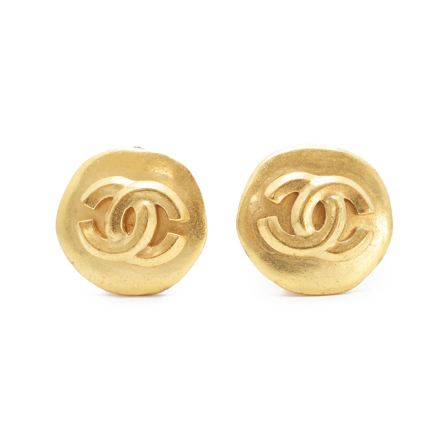 CC Logo Round Clip-On Earrings GP Gold Brass