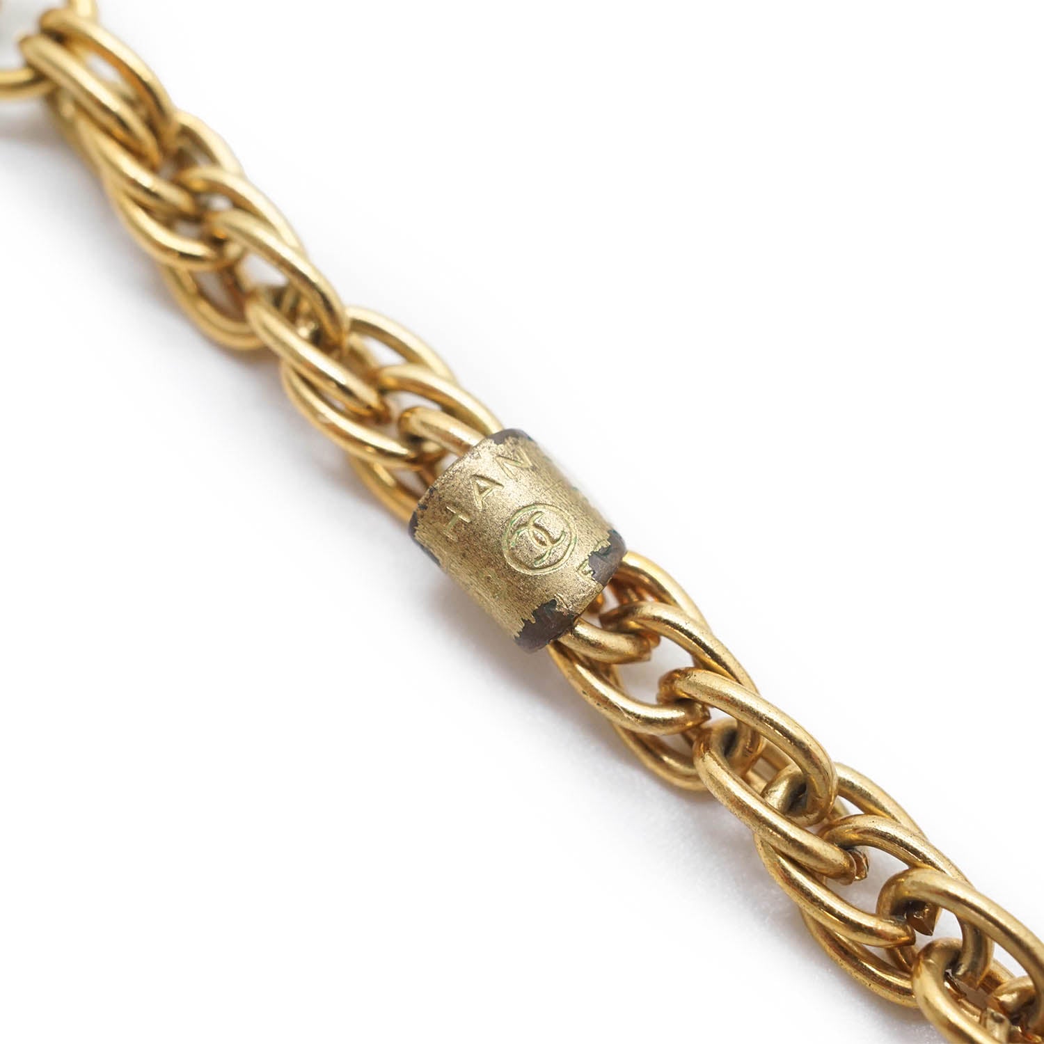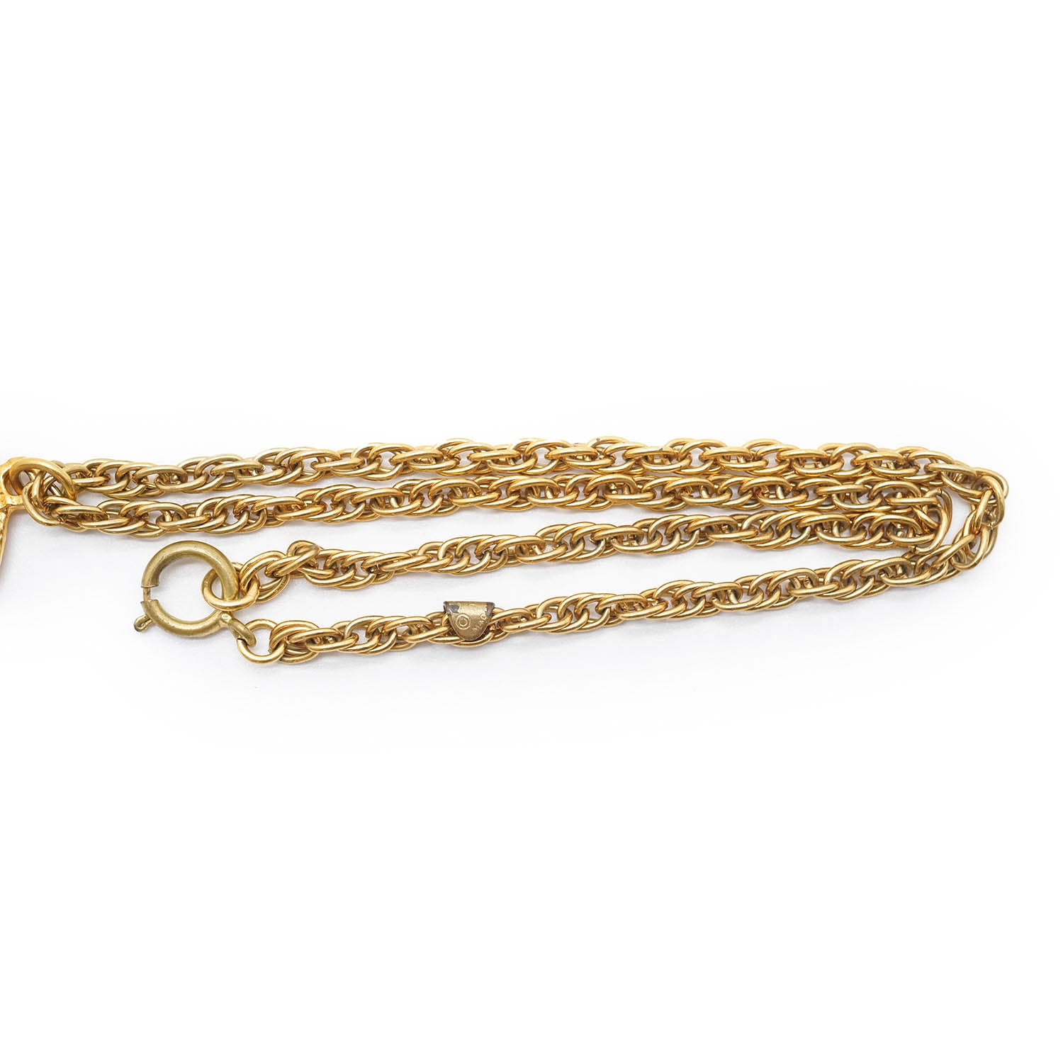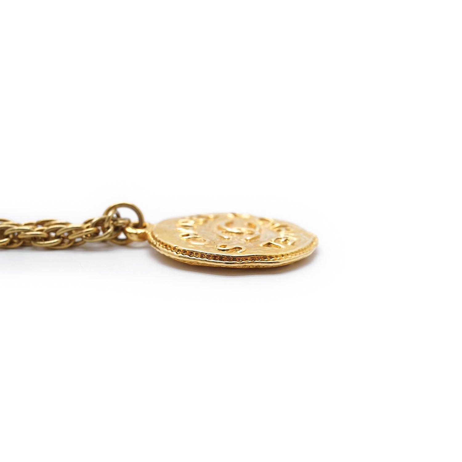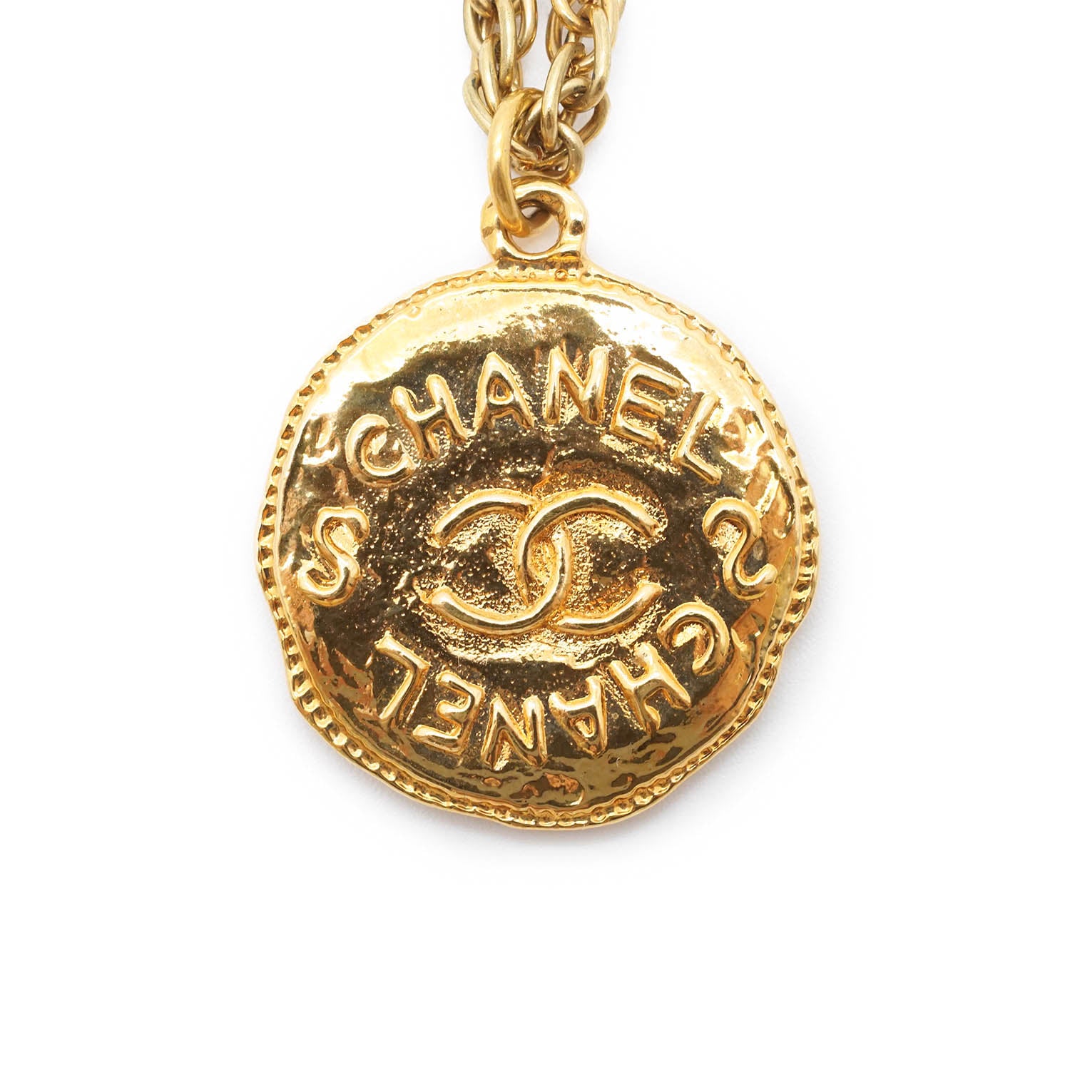 CC Logo Round Pendant Chain Necklace Gold Brass