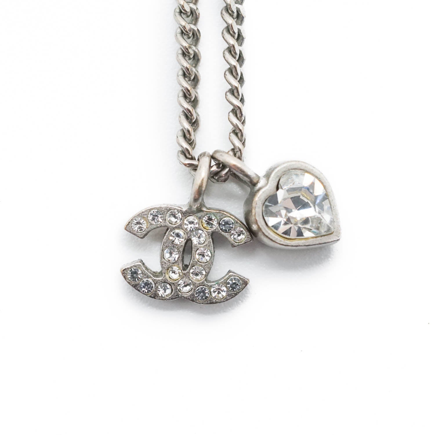 CC Rhinestone Silver Heart Charm Necklace Silver Silver