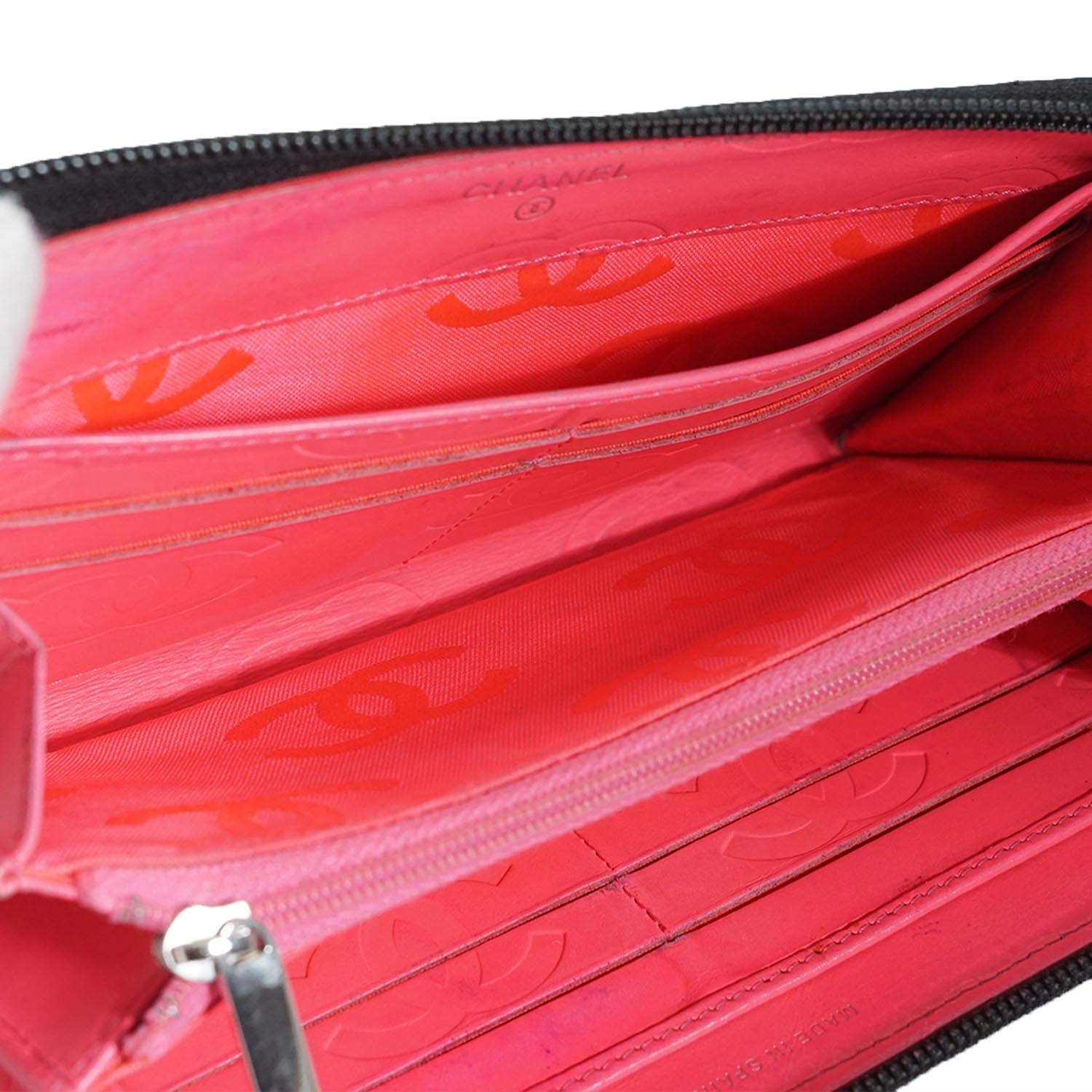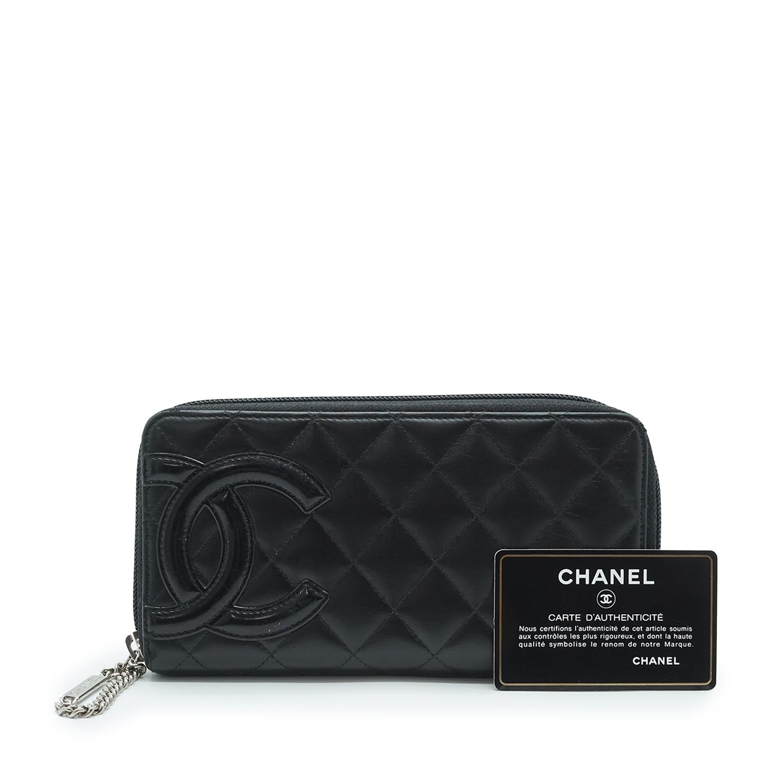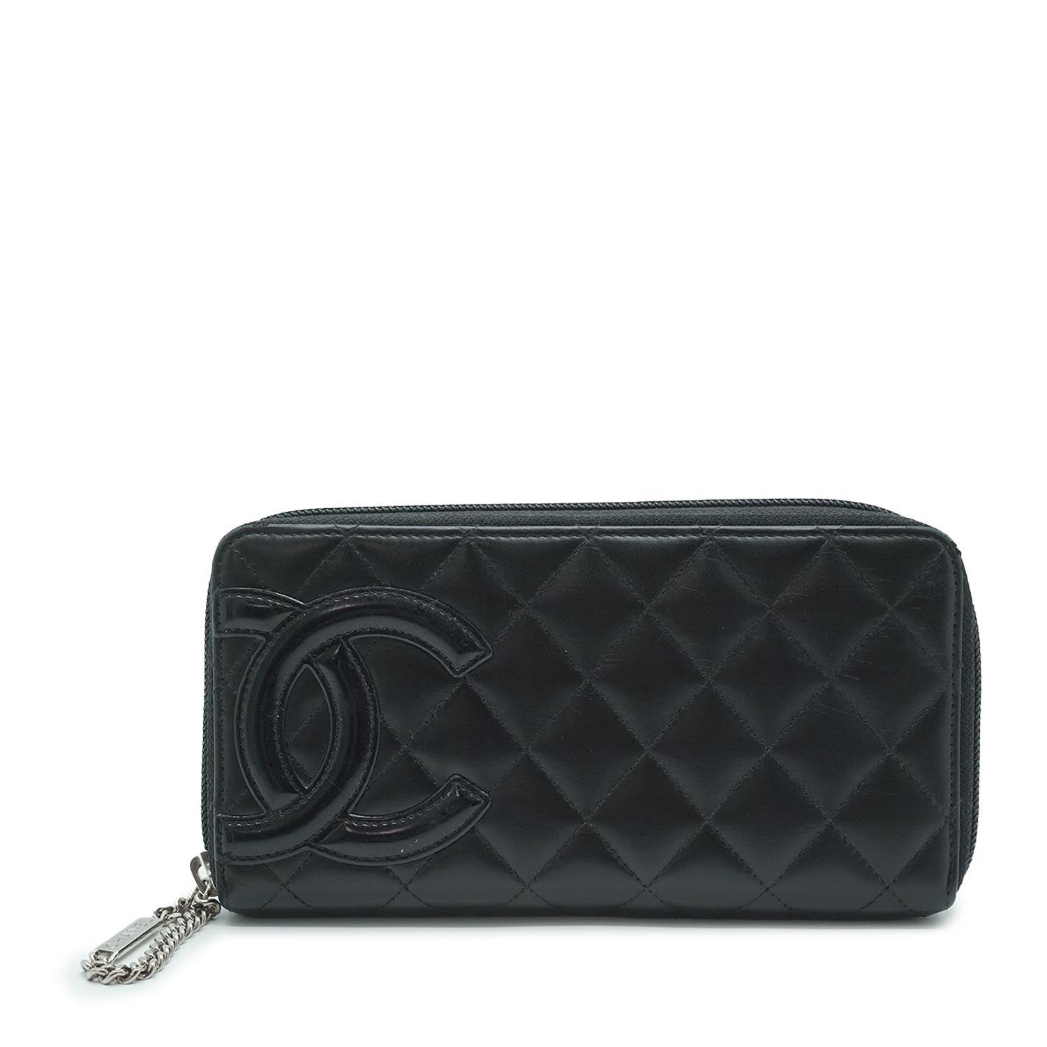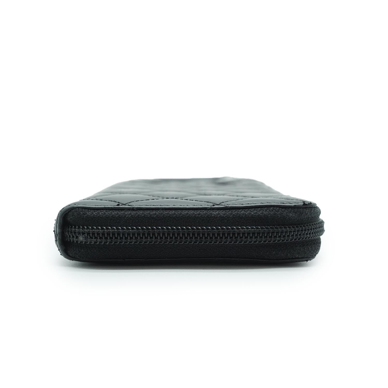 CC Round Zip Leather Long Wallet Black Leather