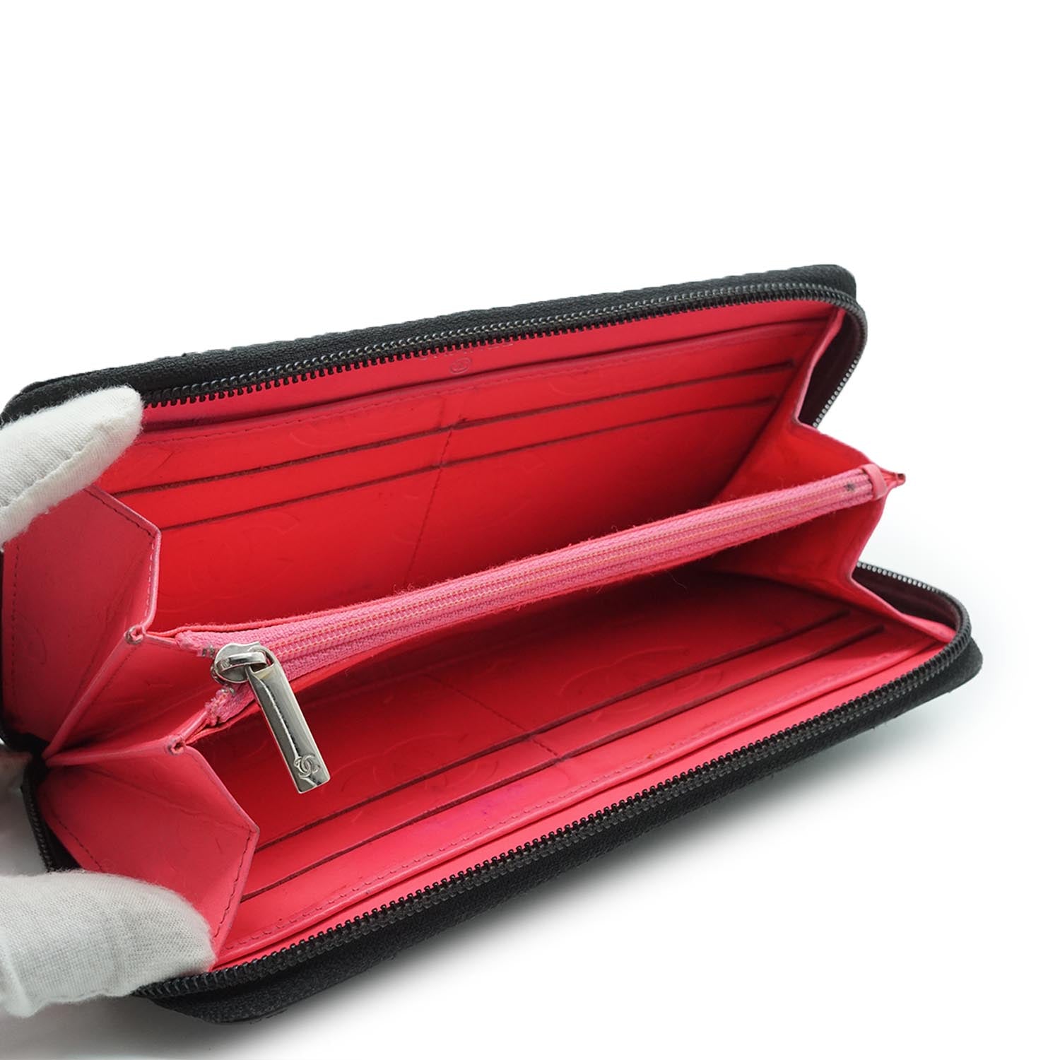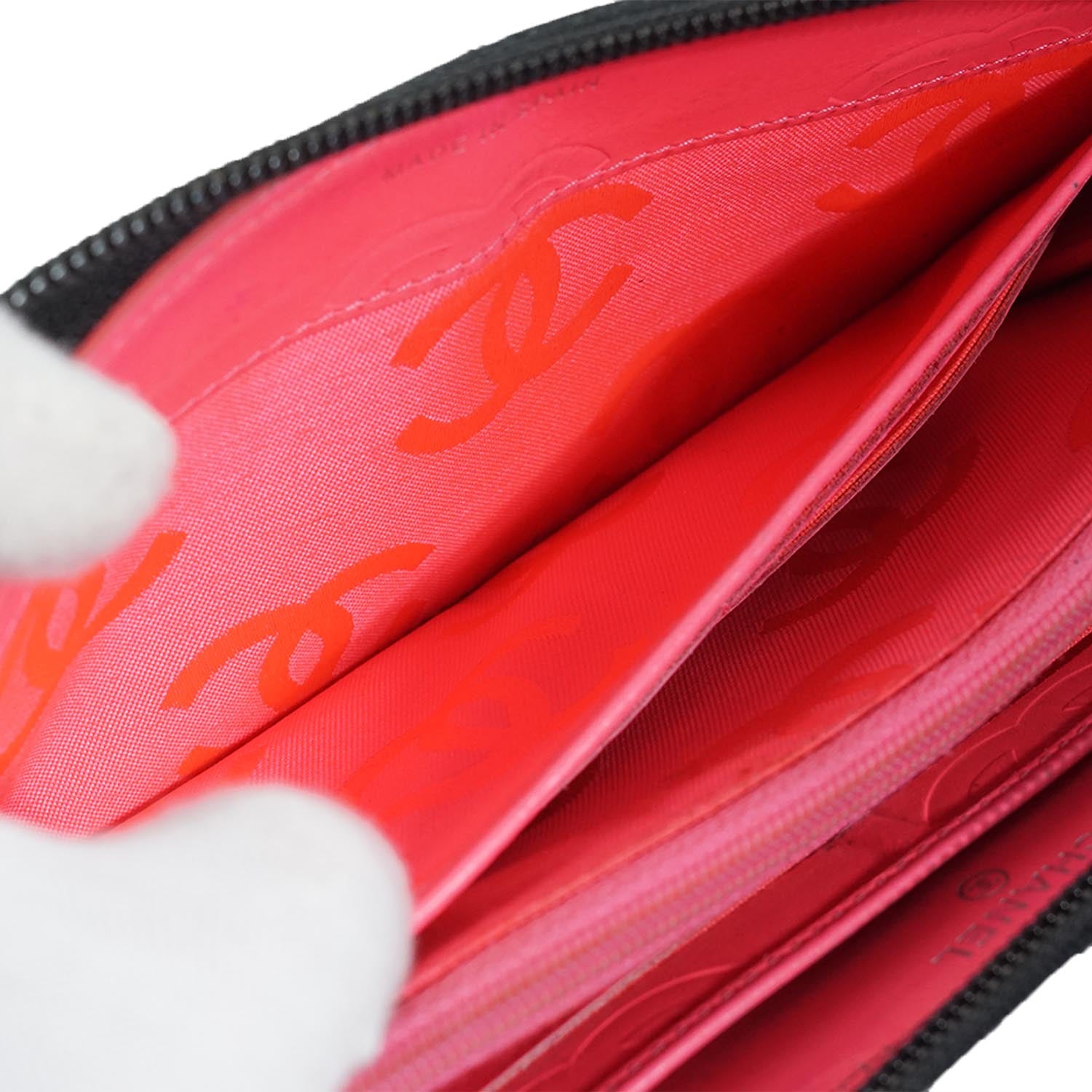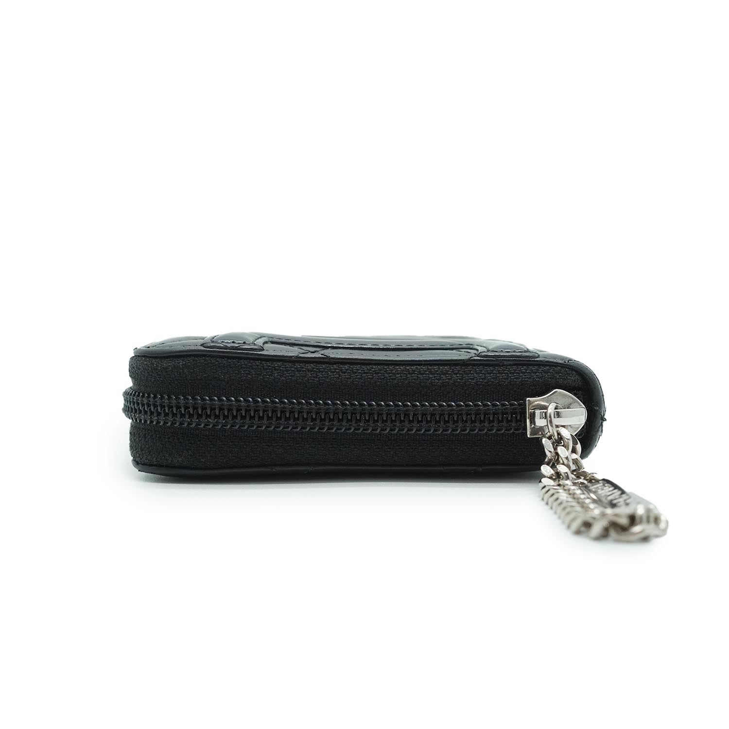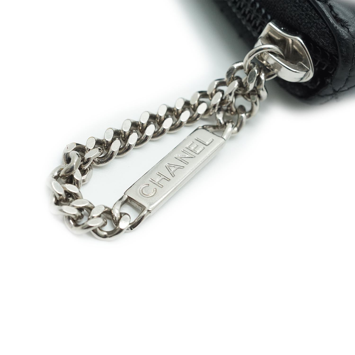 CC Round Zip Leather Long Wallet Black Leather