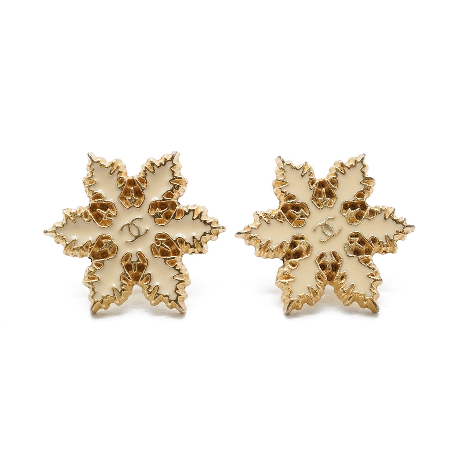 CC Snowflake Earrings White/Gold Brass