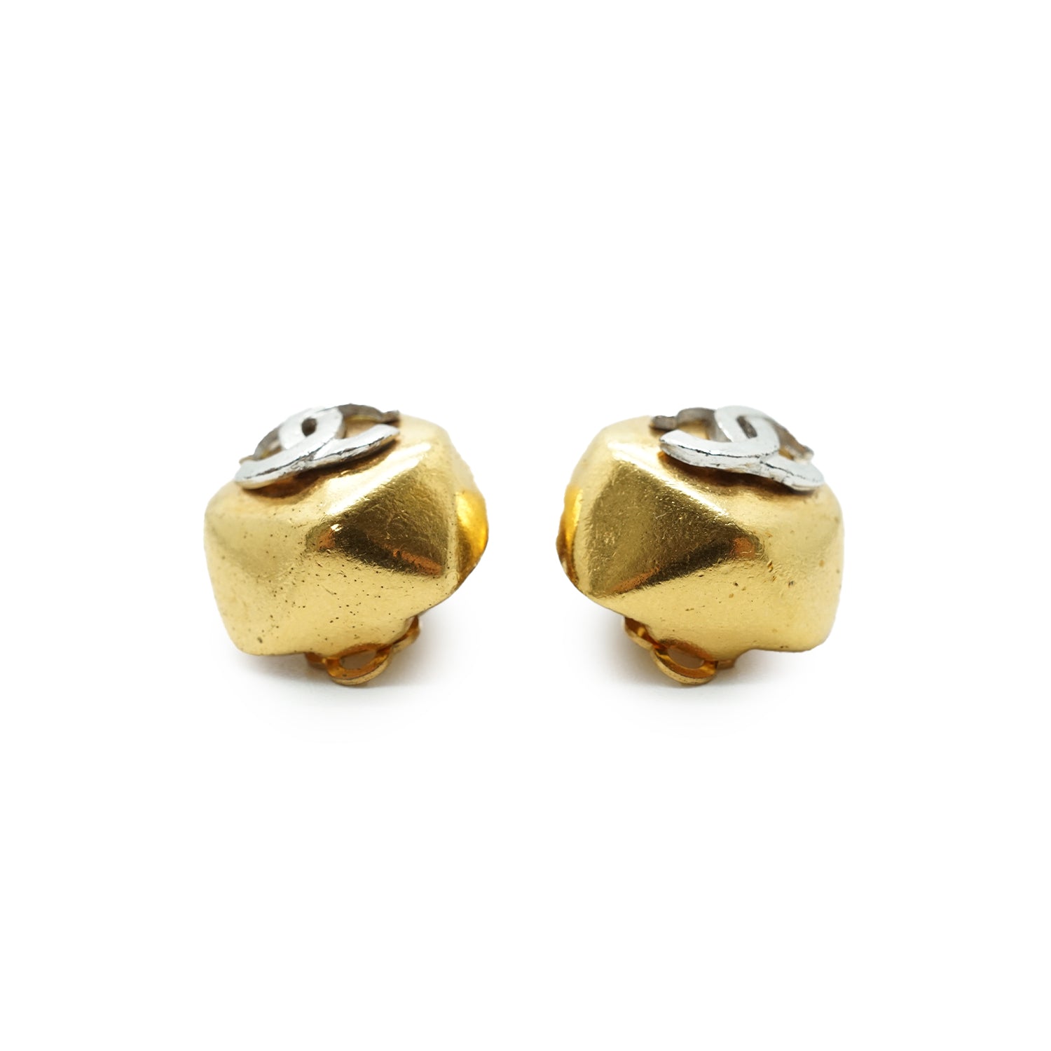 CC Square-shaped Clip-on Earrings Gold/Silver Brass