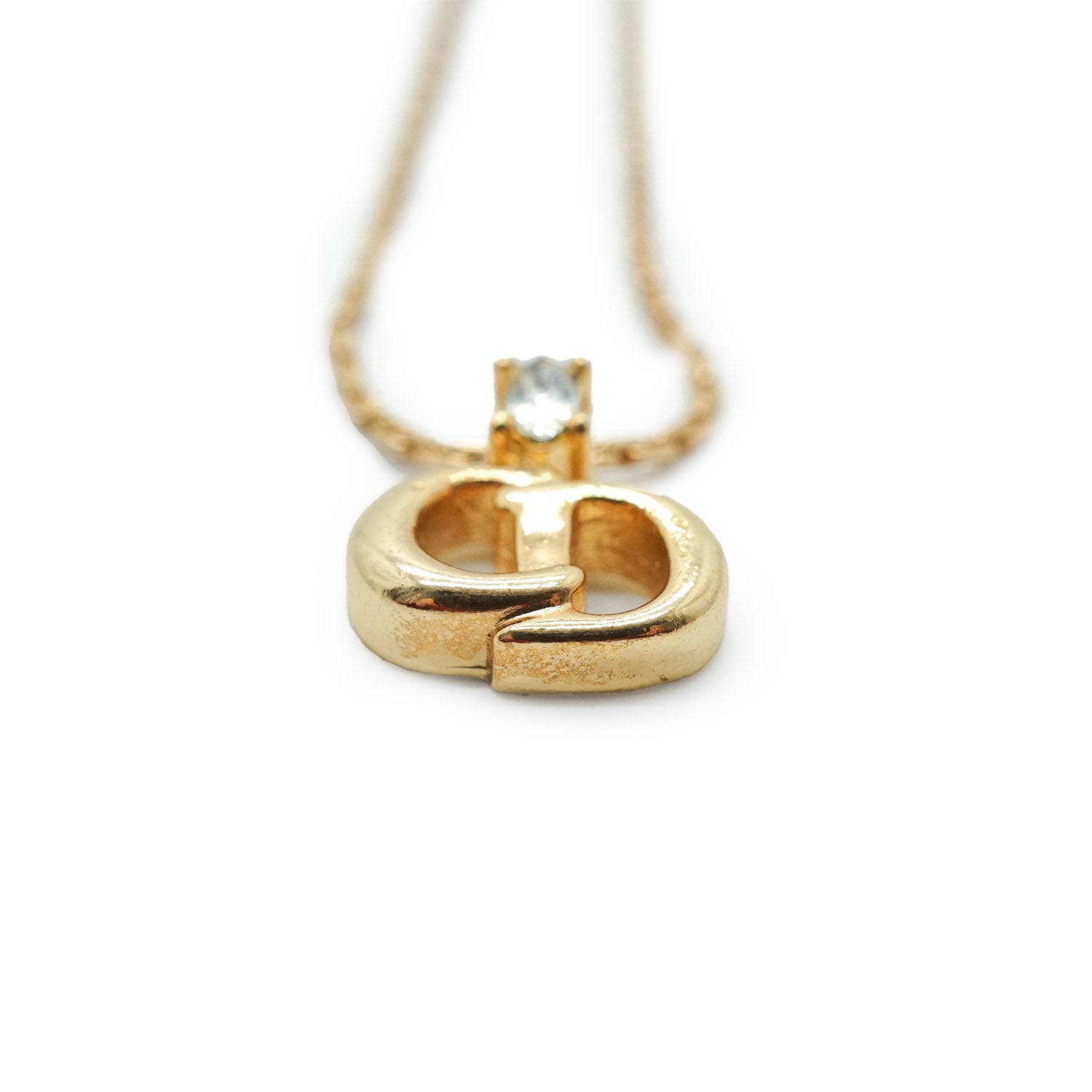 CD Logo Rhinestone Gold Necklace