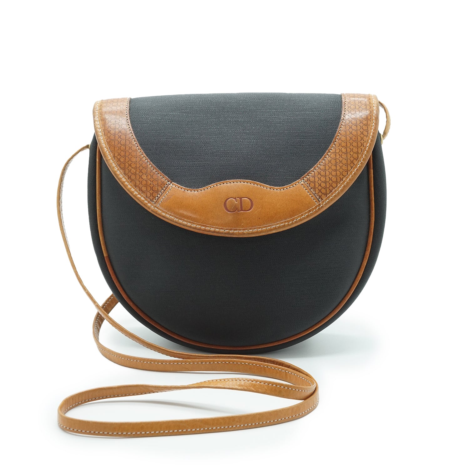 CD Logo Rounded Crossbody Bag Black Canvas, Leather