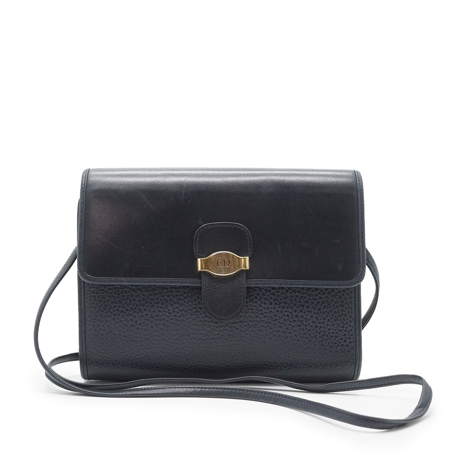 CD Logo Vintage Crossbody Bag Navy Leather