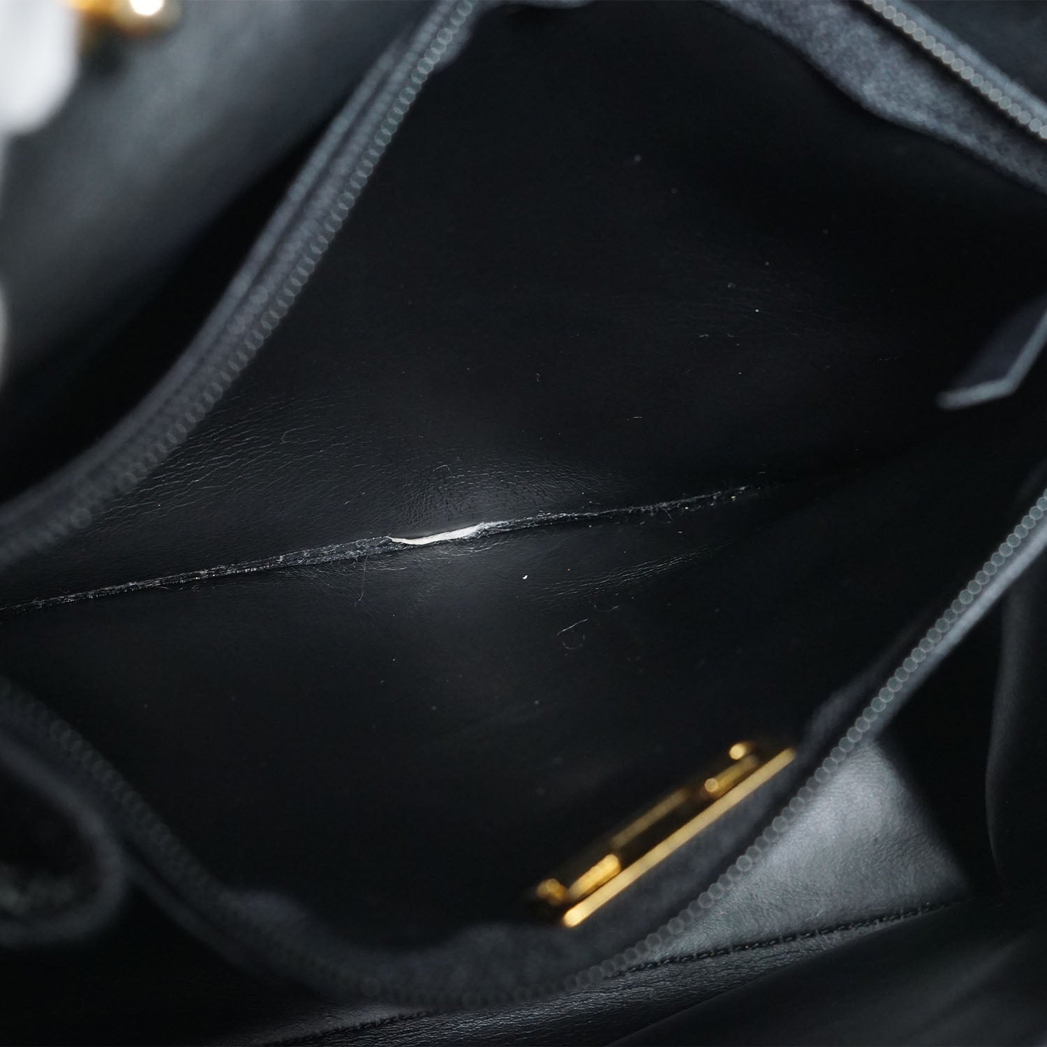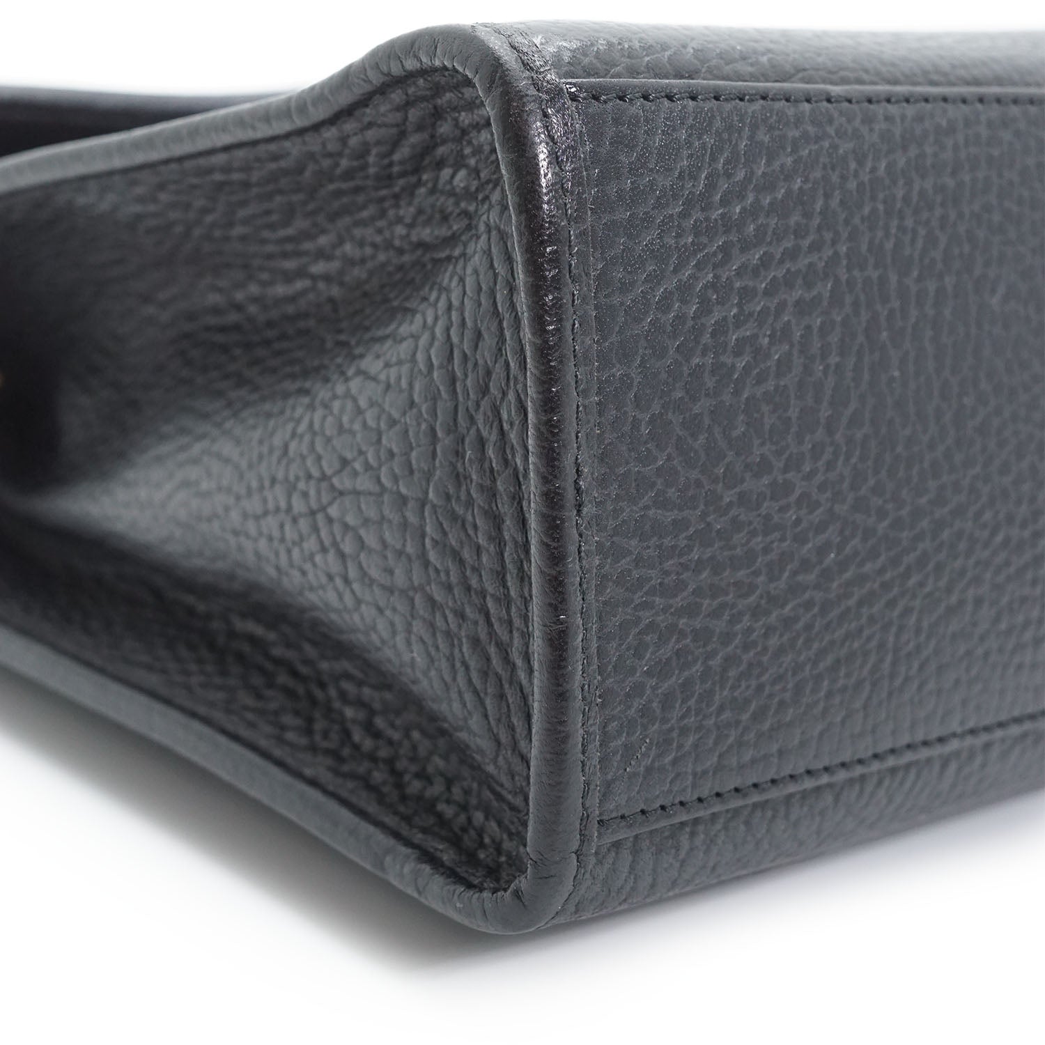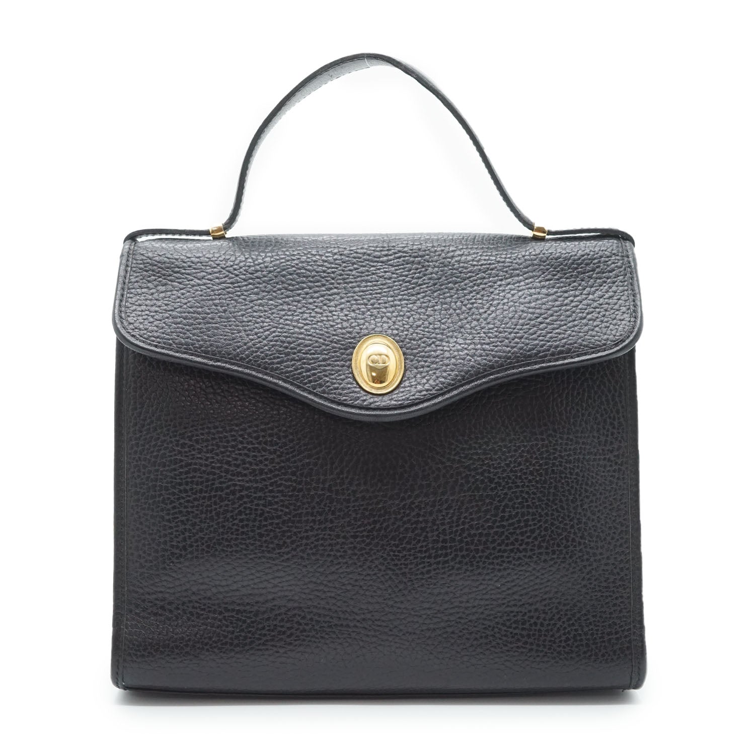 CD Logo Vintage Square Box Top Handle Bag Black Leather