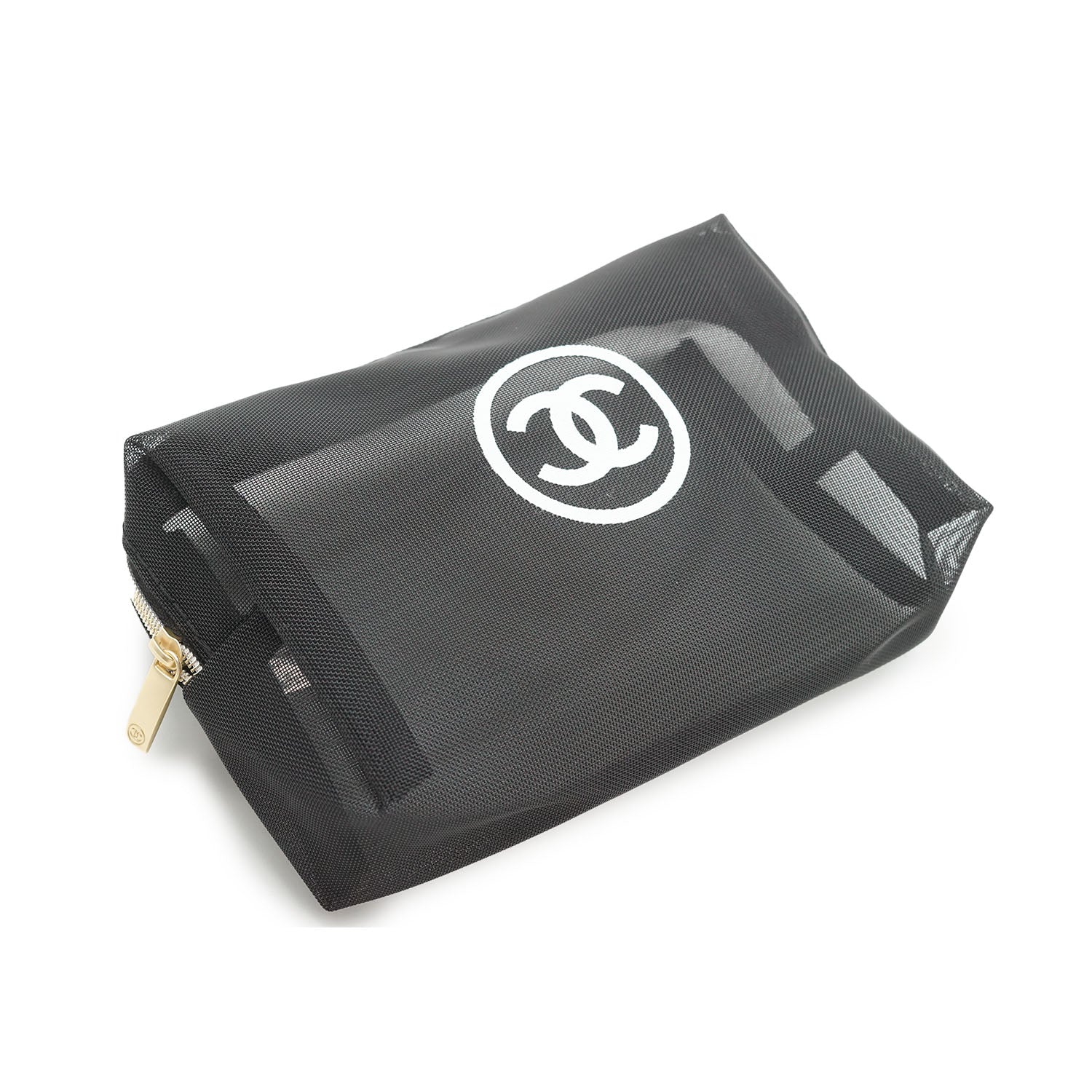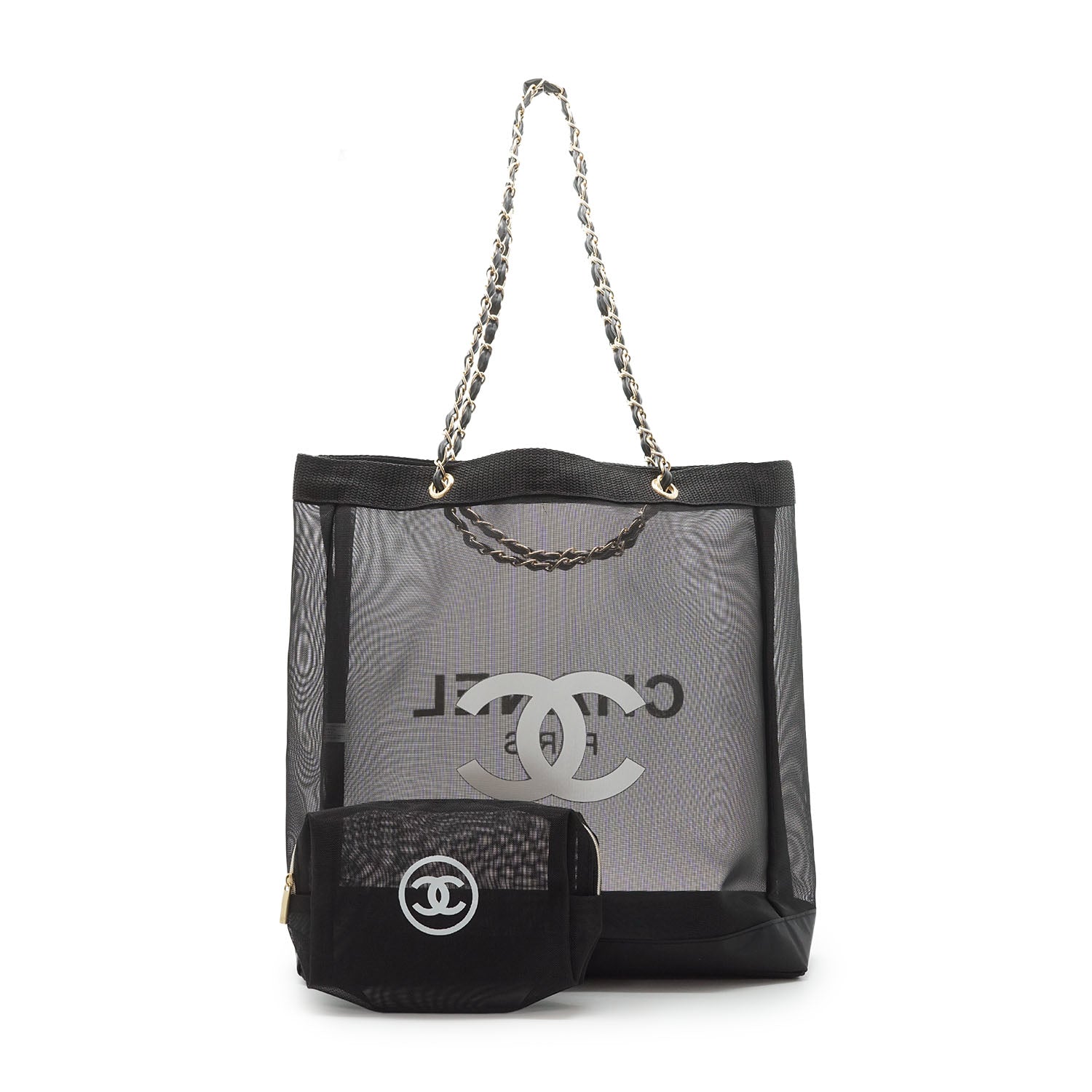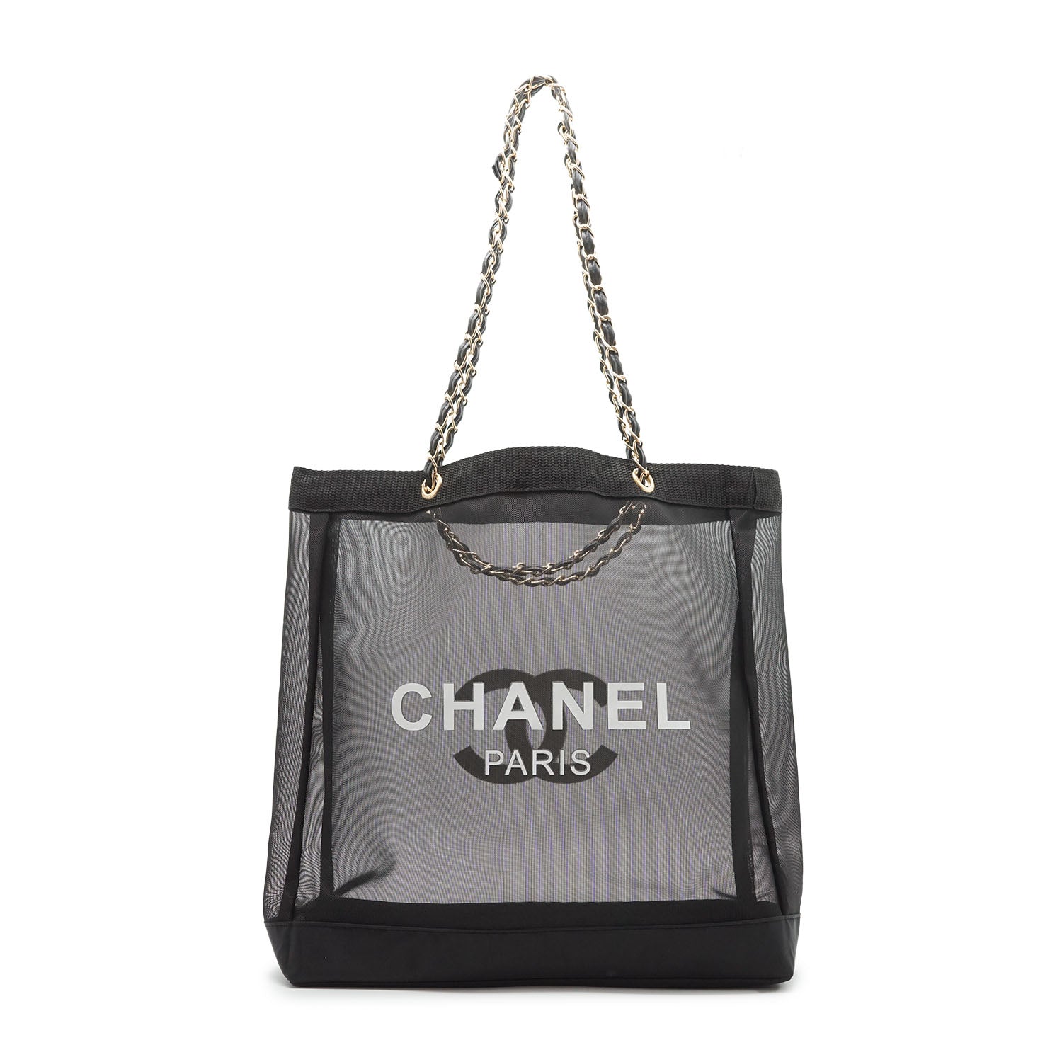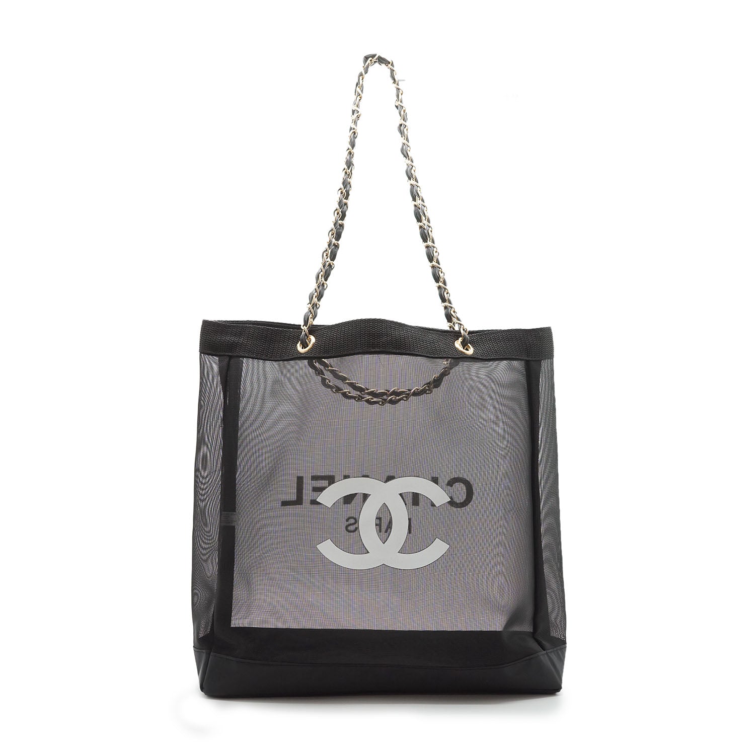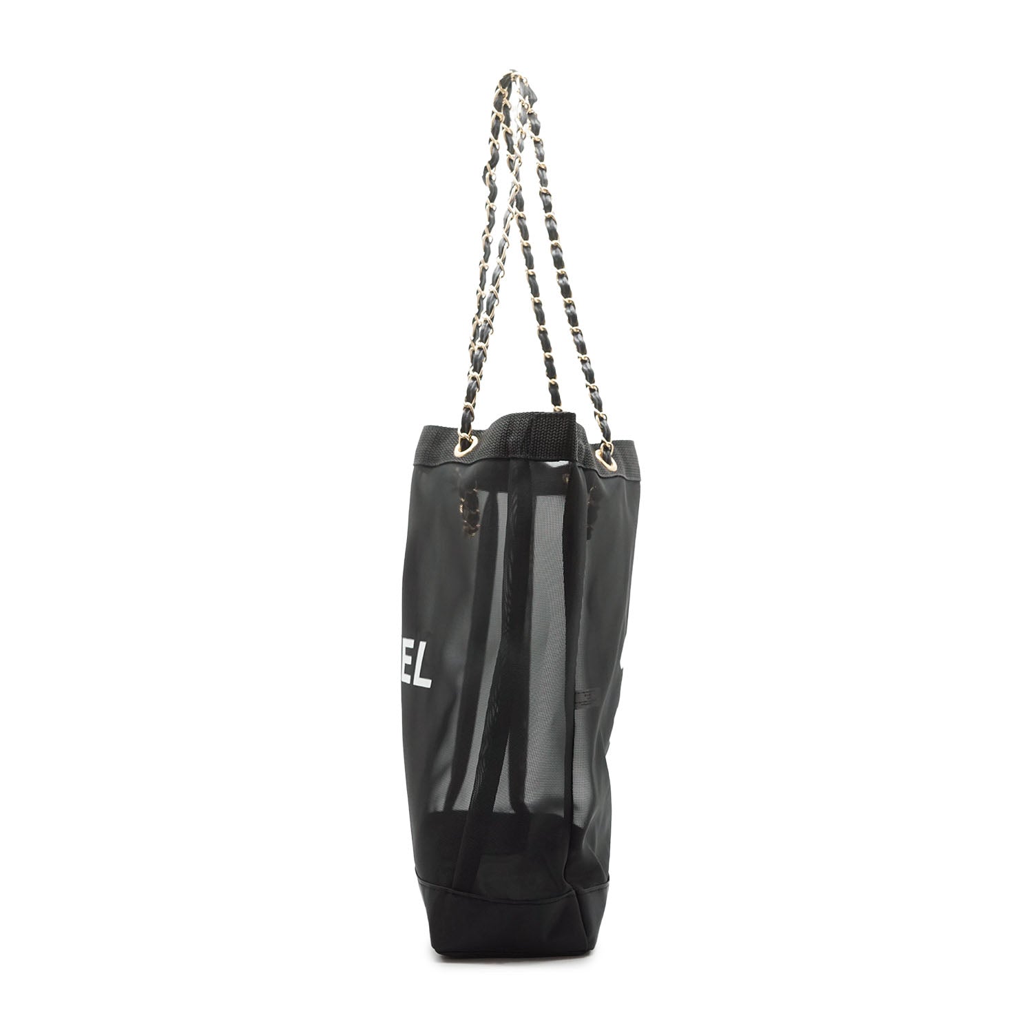 Chanel Beaute Novelty A la Plage Edition Mesh Chain Tote with Pouch Black Mesh, PVC
